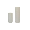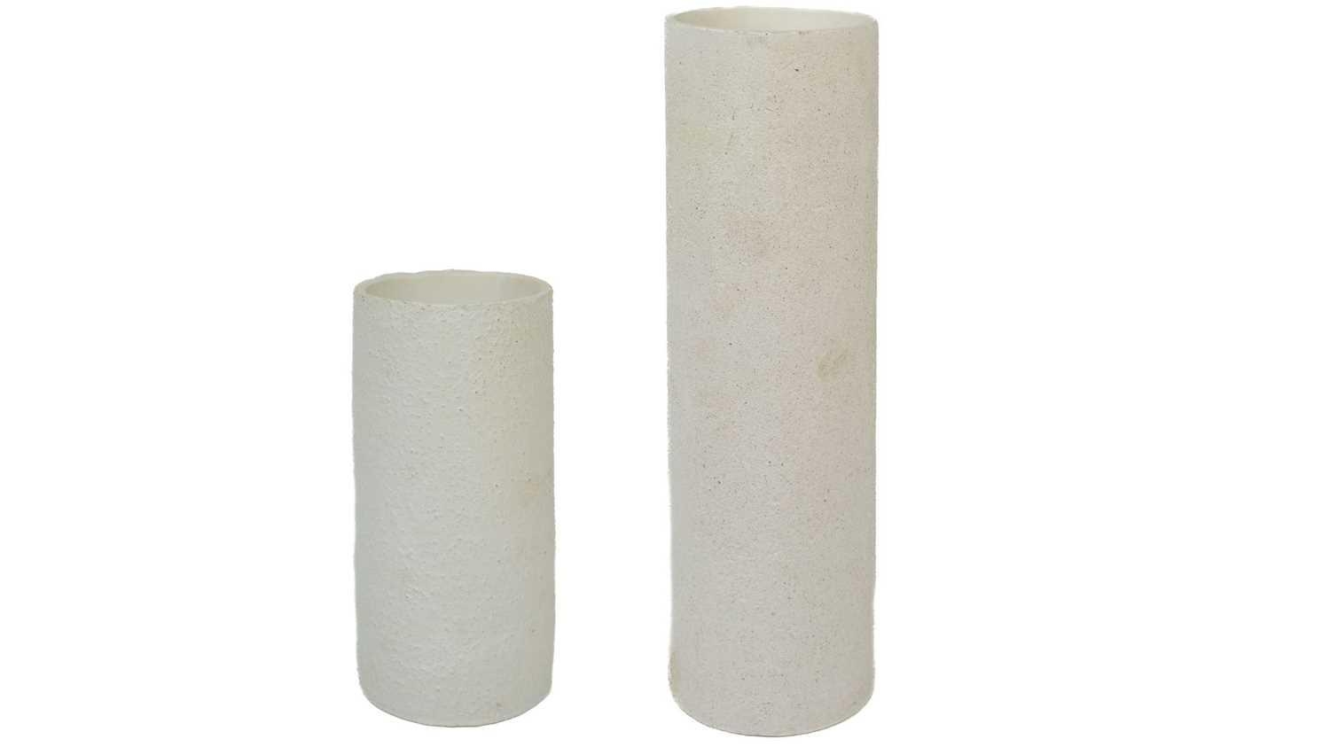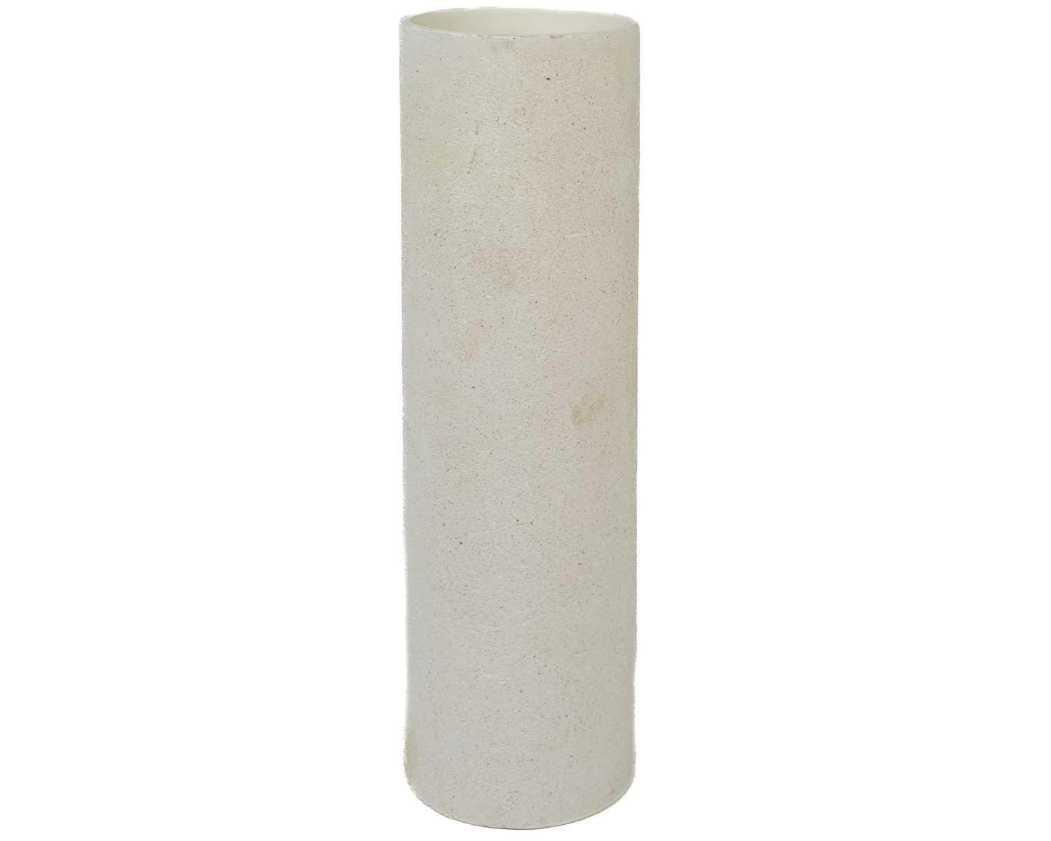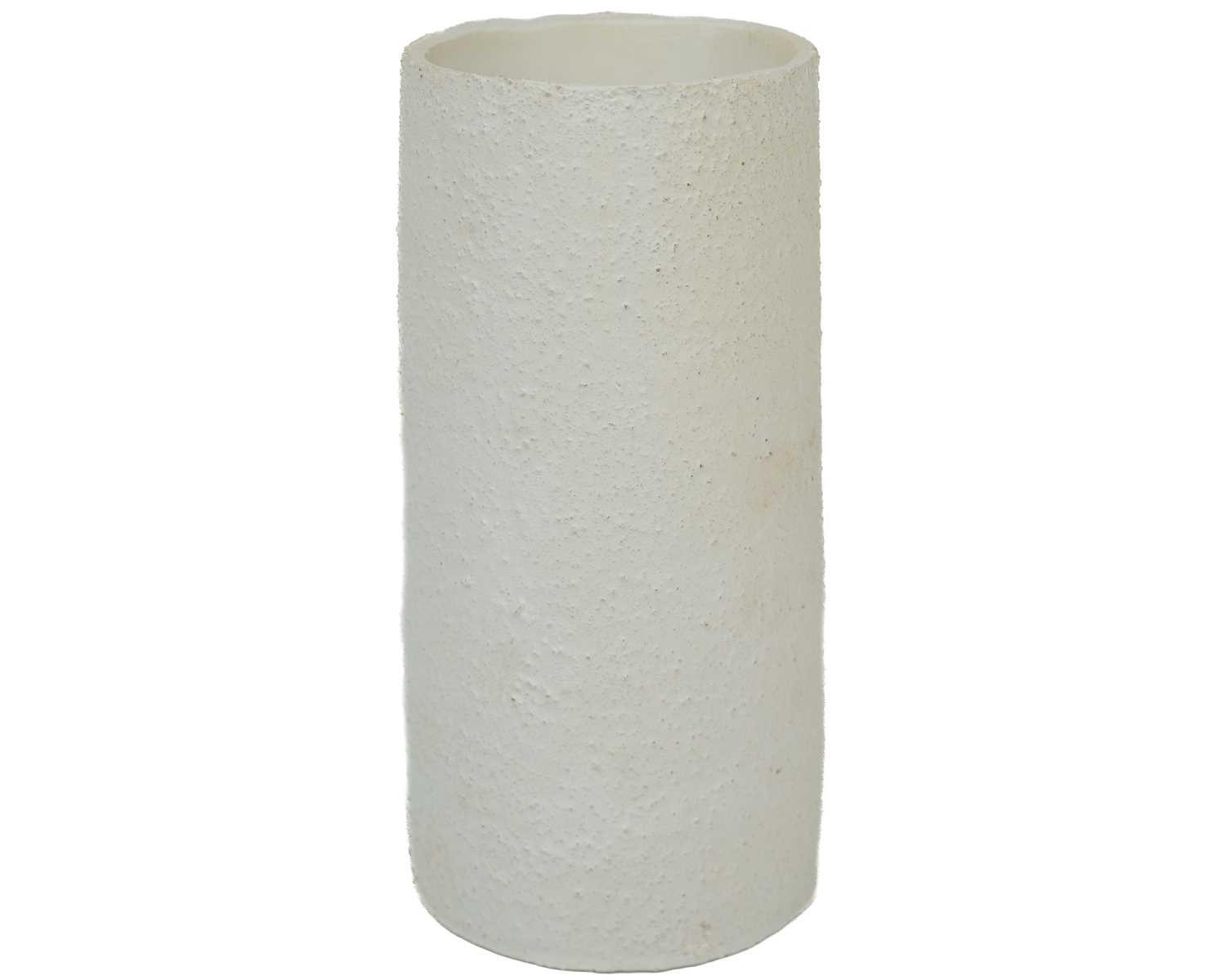 A Troika biscuit pottery cylinder vase. Height 38.5cm together with a smaller Troika biscuit pottery cylinder vase. (2) Bought from a storage barn in Carnyorth in the '80s by Peter Swanson. The following is taken from Ben Harris's and Lawrence Illsey's book 'troika 63-83' page 162. "Leslie was desperate for money and also sold all the unglazed biscuit ware that was left" "Some were put into storage in a barn at Carnyorth but disappeared when a mineshaft opened, swallowing half the barn and moulds."