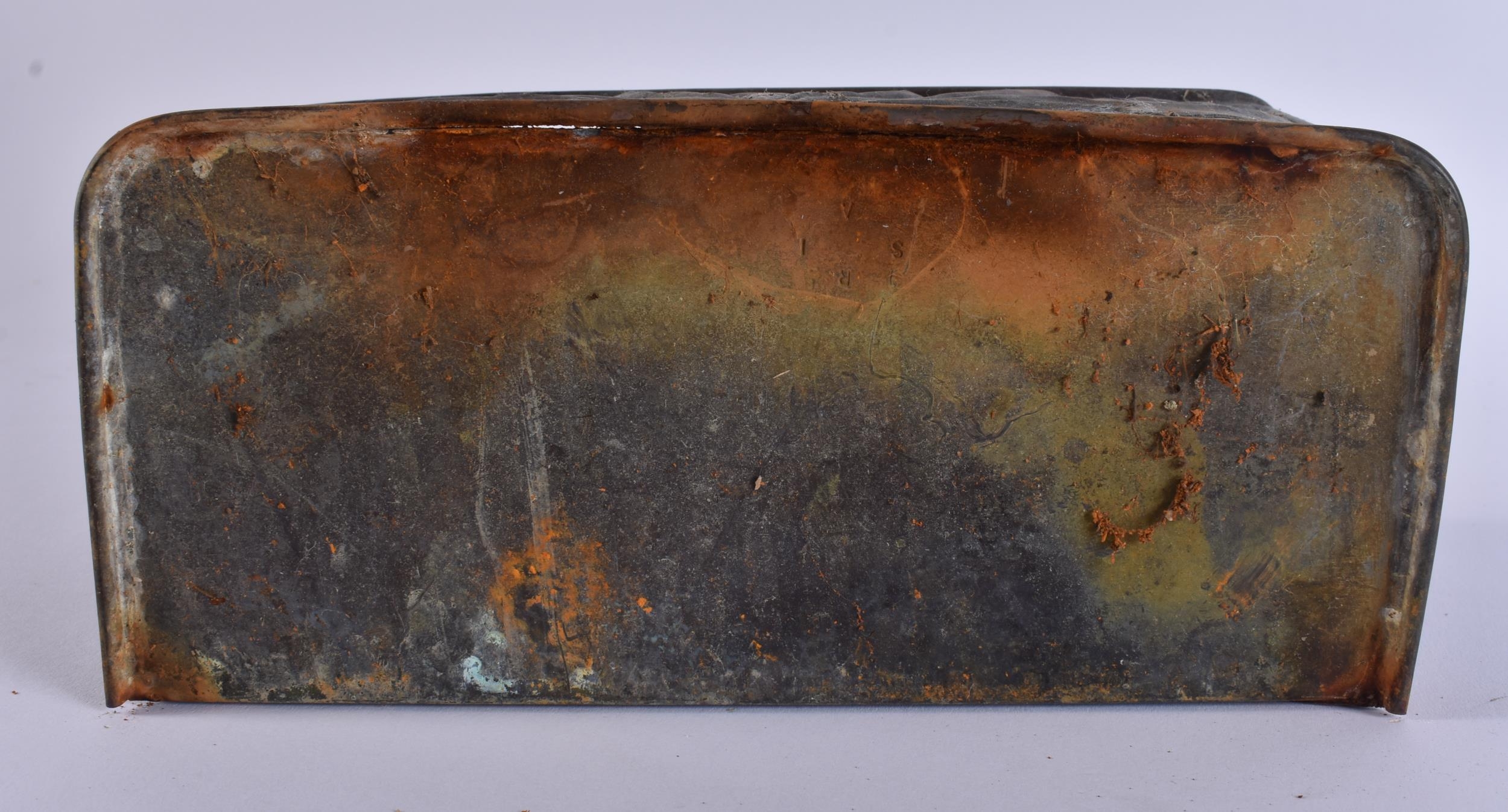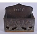 AN ART NOUVEAU ENGLISH COPPER POST TRAY. 23 cm x 23 cm.