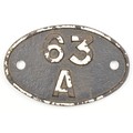 Shed plate cast iron, 63A PERTH, older paint. 7 7/16 x 4 3/4 inches. Shipping band - B.