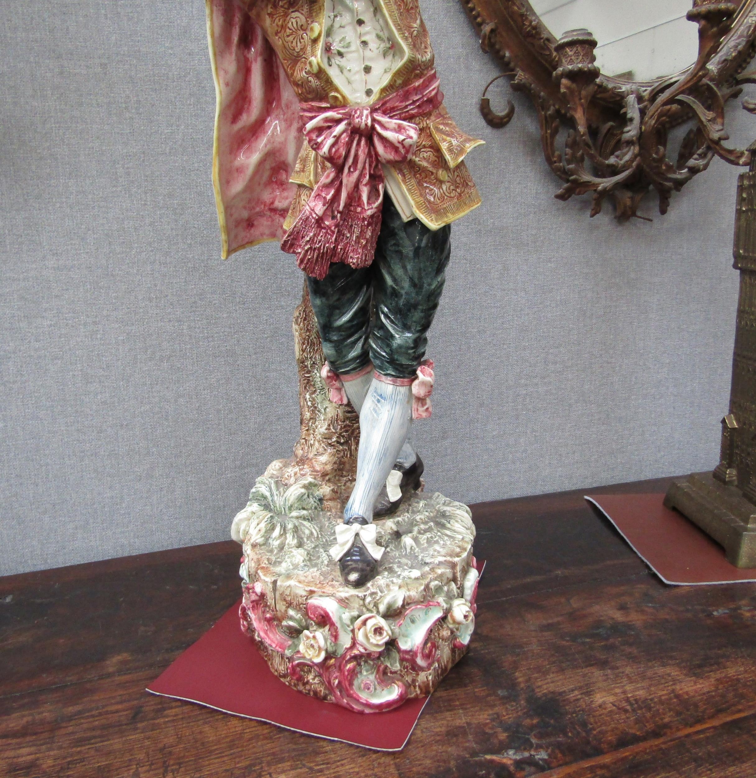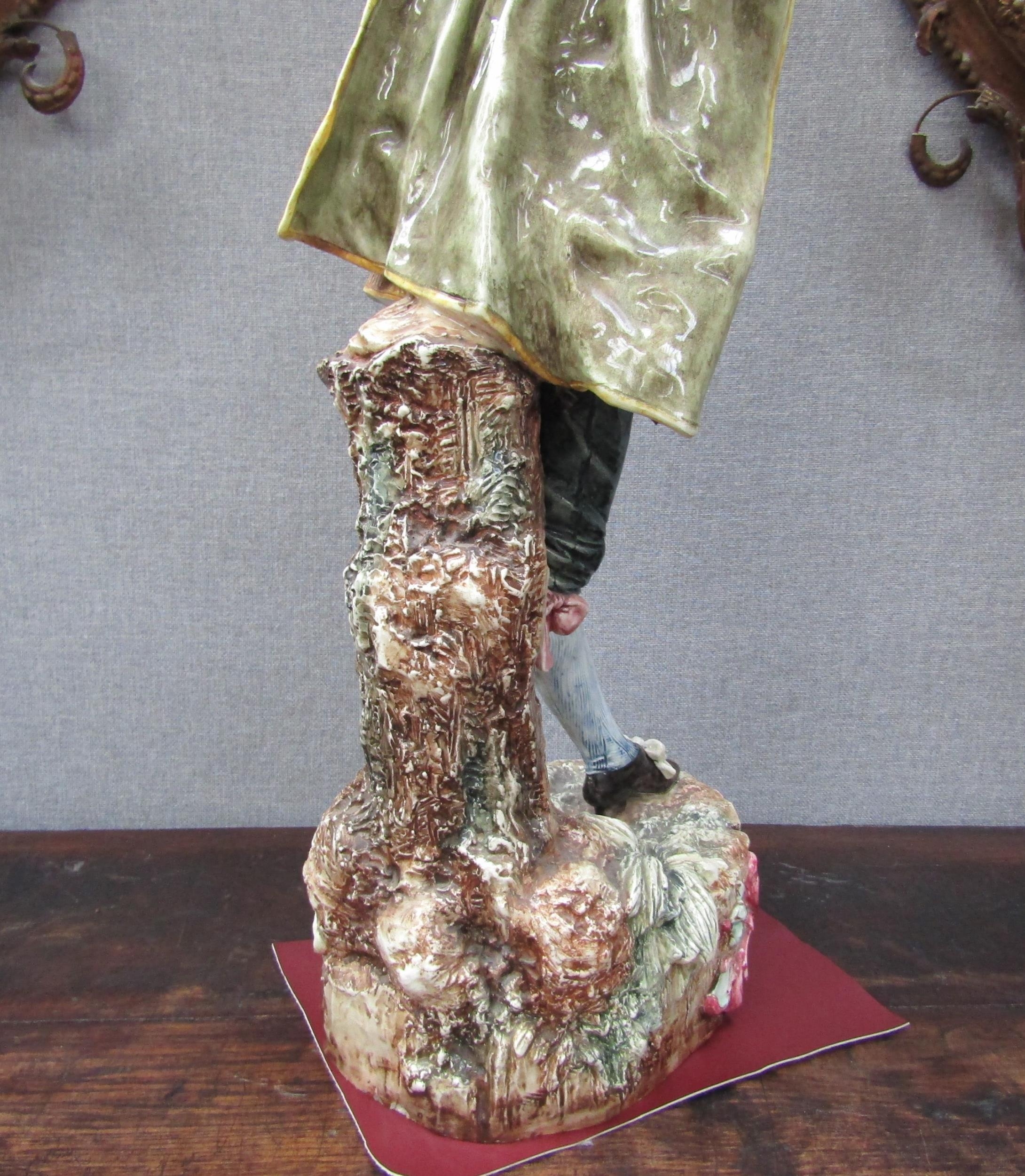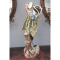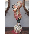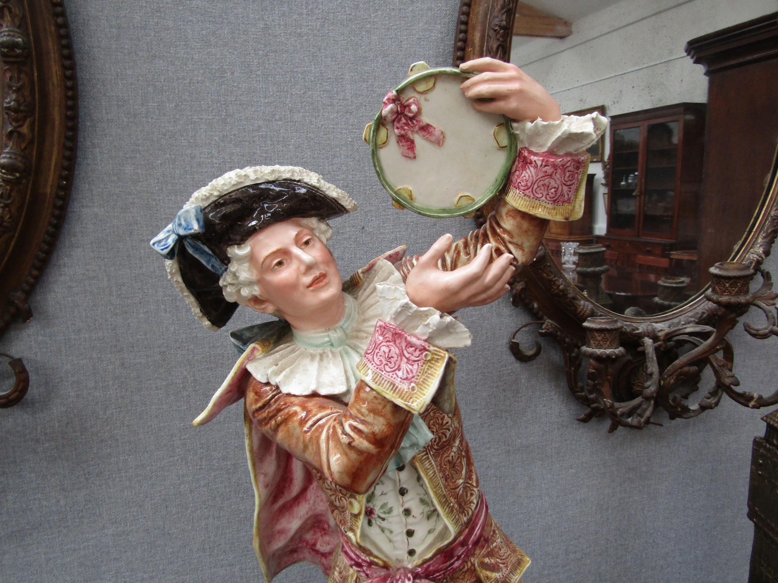 An early 20th Century ceramic figure of a gent with tambourine, 78cm height