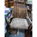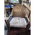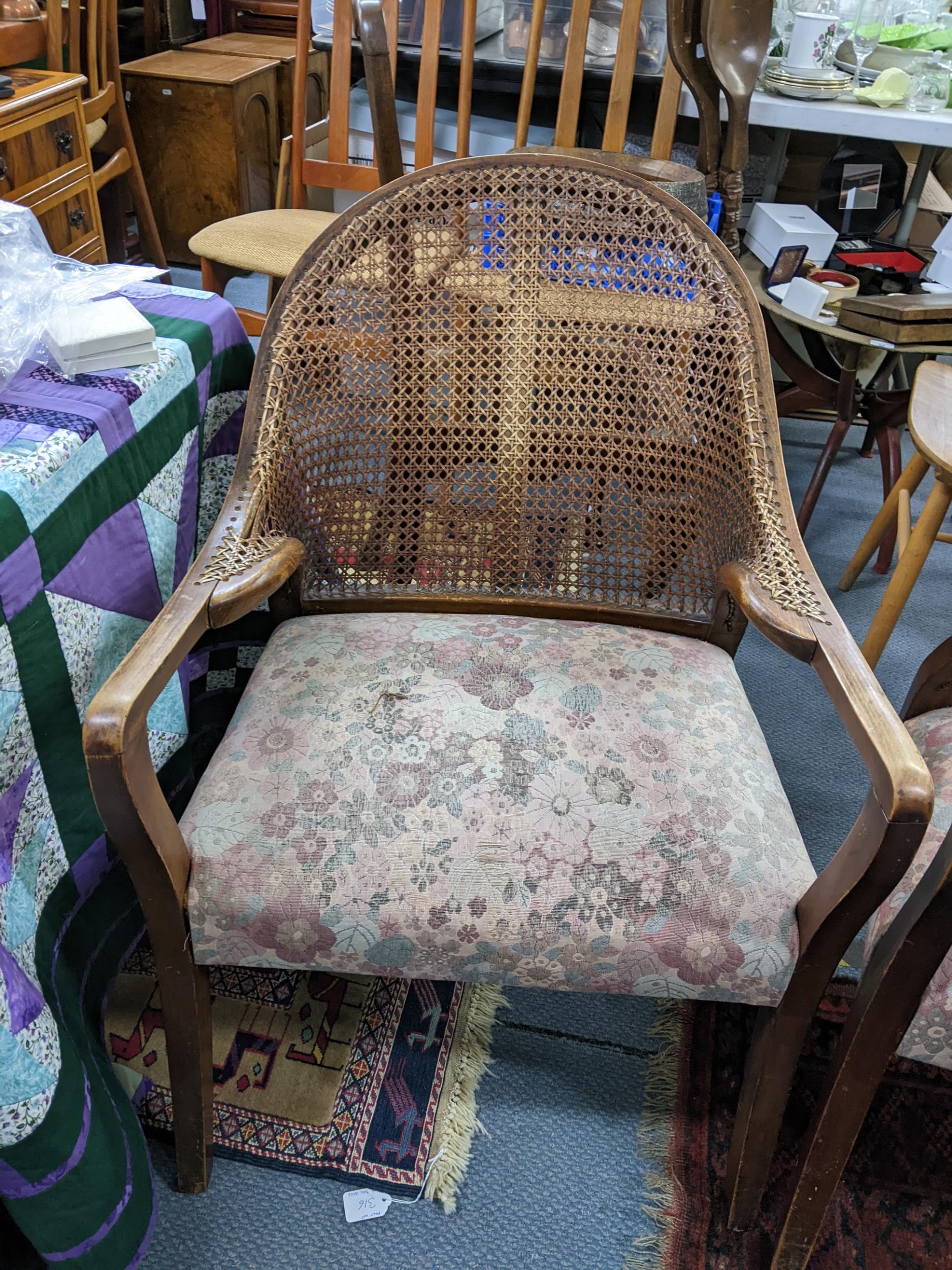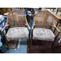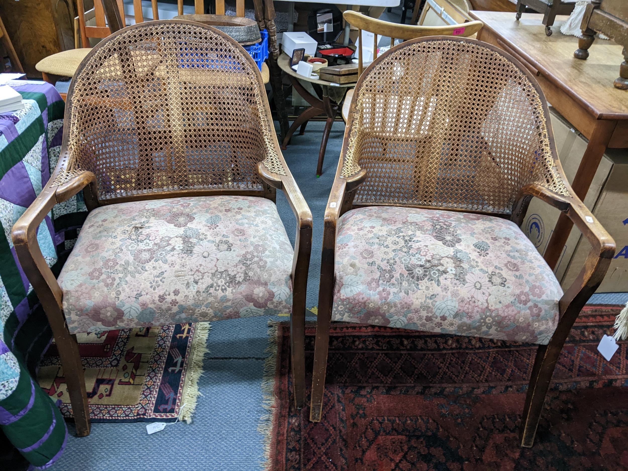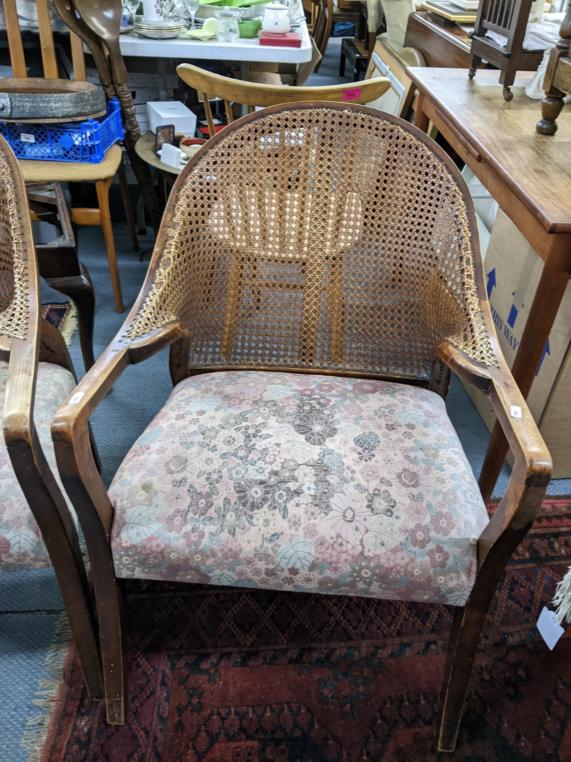 A pair of early 20th century cane back armchairs with floral upholstered seats A/F Location:A2B