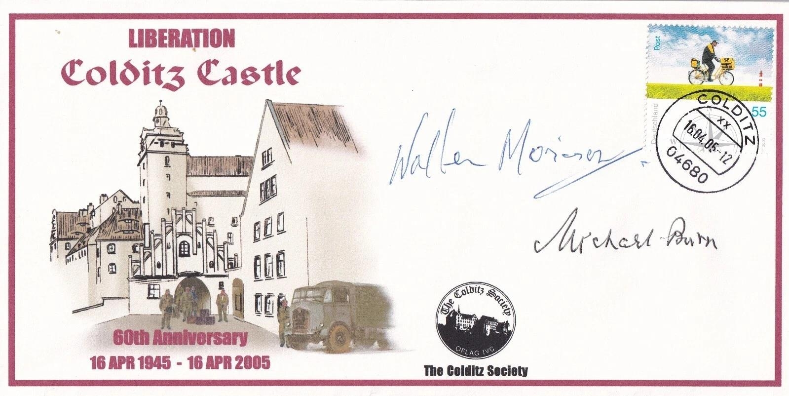 Liberation Colditz Castle cover Signed by W Morison and M Burn Both Colditz Prisons of War. 16 04 05 Colditz Liberation Colditz Castle 60th Anniversary Personally Signed by Walter Morison and Michael Burn Both Colditz Prisons of War, Full Details below. Flight Lieutenant Walter McDonald Morison (26 November 1919 - 26 March 2009) was a Royal Air Force pilot who became a prisoner of war and was sent to Colditz for attempting to steal an enemy aircraft during the Second World War. Morison joined the Royal Air Force at the outbreak of war in September 1939 and was trained as a pilot (he already knew how to fly a glider). He was commissioned as a pilot officer on 30 November 1940 and assigned to No. 241 Squadron, flying Westland Lysanders. He was soon transferred to a training unit as an instructor, before joining No. 103 Squadron in May 1942. On the night of 5/6 June 1942, while flying a Wellington bomber on his third mission and the first as captain, he was hit by another Wellington X3339 from 156 Squadron, piloted by Sgt Guy Chamberlin RAFVR. He was the sole survivor of the five-man crew. He became a prisoner of war (POW) and was sent to Stalag Luft III at Sagan. He was promoted to flight lieutenant on 30 November 1942 whilst being held as a POW. On 12 June 1943, Morison and 23 or 25 others escaped from the camp during a delousing break. Twenty-two prisoners left the camp with two guards, actually two fellow POWs in bogus German uniforms. Once outside, the group split up. The others were quickly recaptured, but he and Flight Lieutenant Lorne Welch, wearing fake uniforms, walked to a nearby airfield and attempted to steal an aircraft, a Junkers W 34. They had to abandon the attempt when the rightful crew appeared to fly away the aircraft. The next day, they returned and tried to steal a biplane but were caught and eventually sent to Oflag IV-C at Colditz. He was liberated from Colditz by the American army in April 1945. Captain Michael Burn MC served with the Queens Westminster KRRC ( Territorial) no 2 Commando. His Campaigns were carried out in Norway 1940 and the Raid on St Nazaire Marth 28th /29th 1942. He was captured on 28th March 1942 arrived at Colditz 9th August 1943 - 45. He was awarded MC. Good condition. All autographs come with a Certificate of Authenticity. We combine postage on multiple winning lots and can ship worldwide. UK postage from £5.99, EU from £7.99, Rest of World from £9.99
