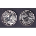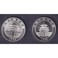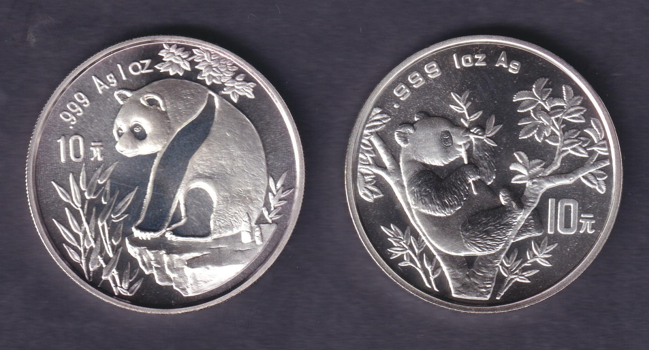 A pair of Chinese 10 Yuan 1oz coins from the Silver Panda Se...