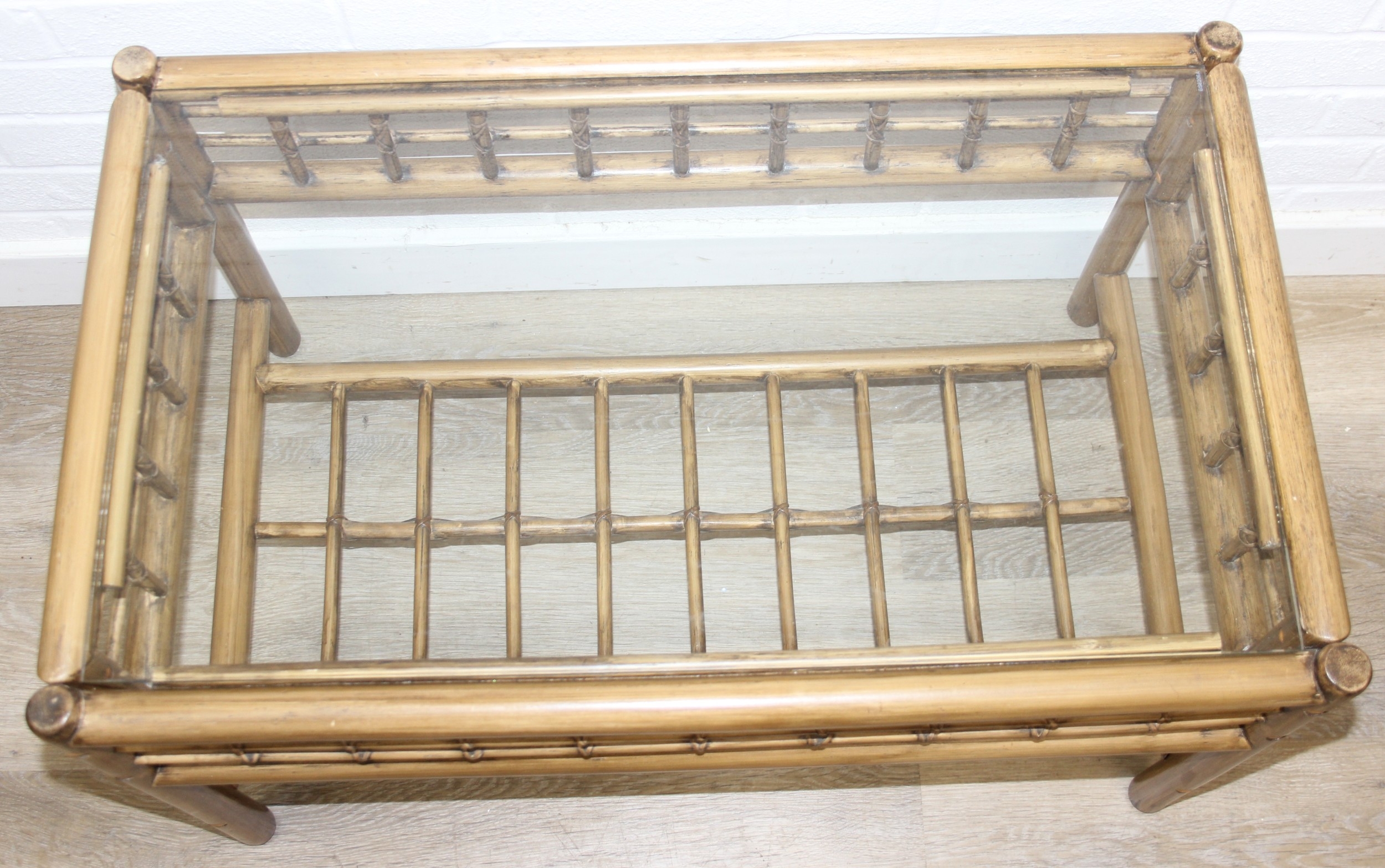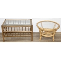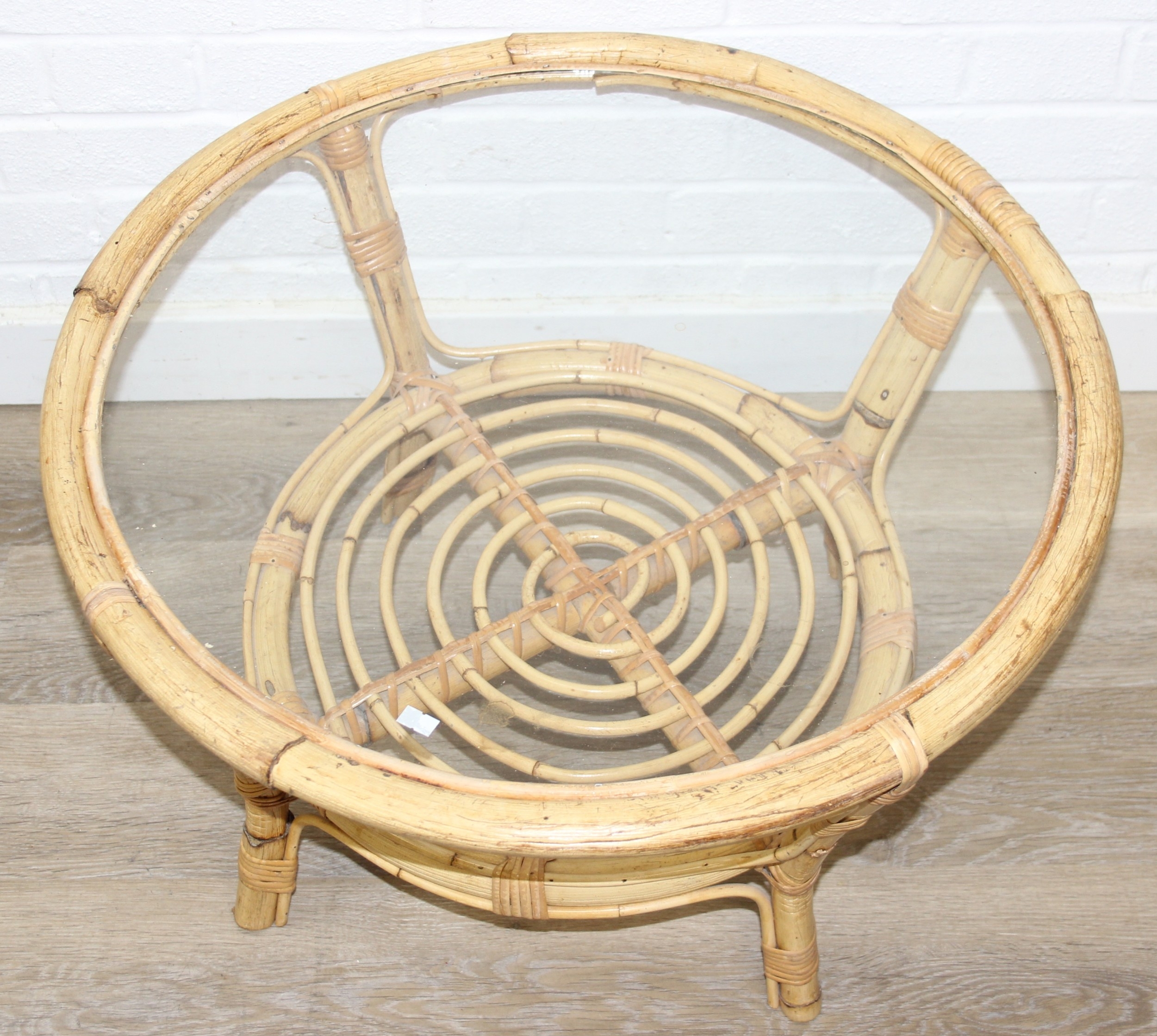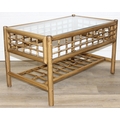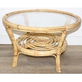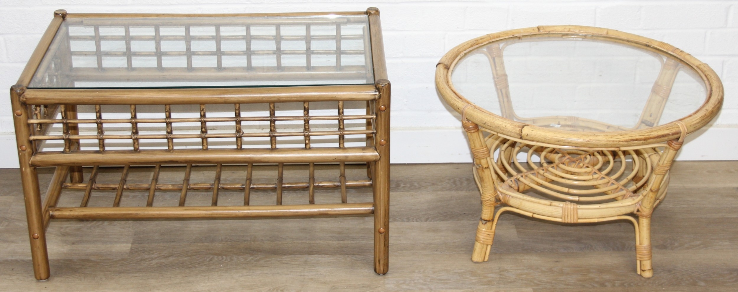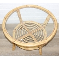 Two retro bamboo and glass coffee tables, one round the other rectangular, the largest 81cm x 49cm x 48cm [2]