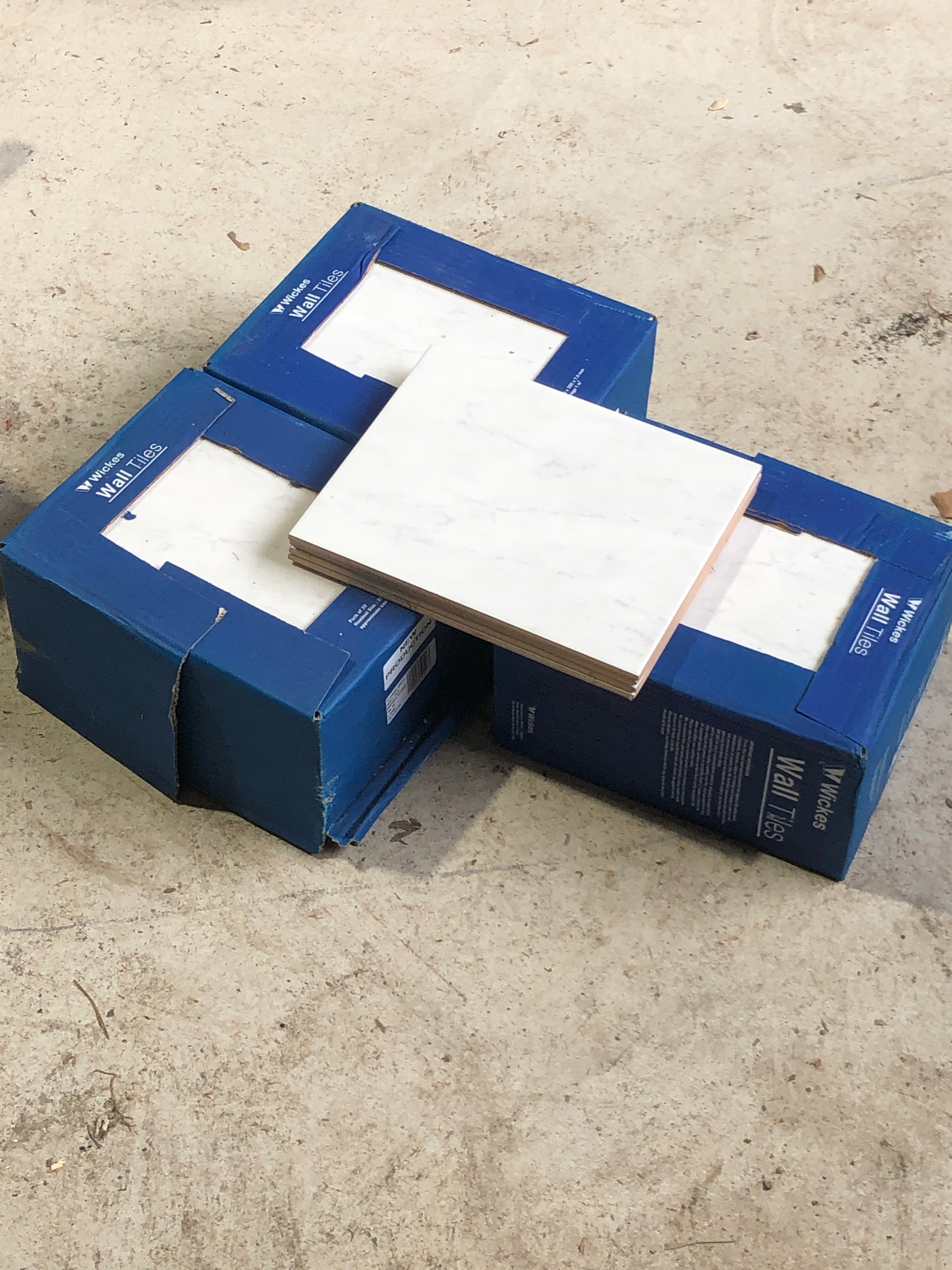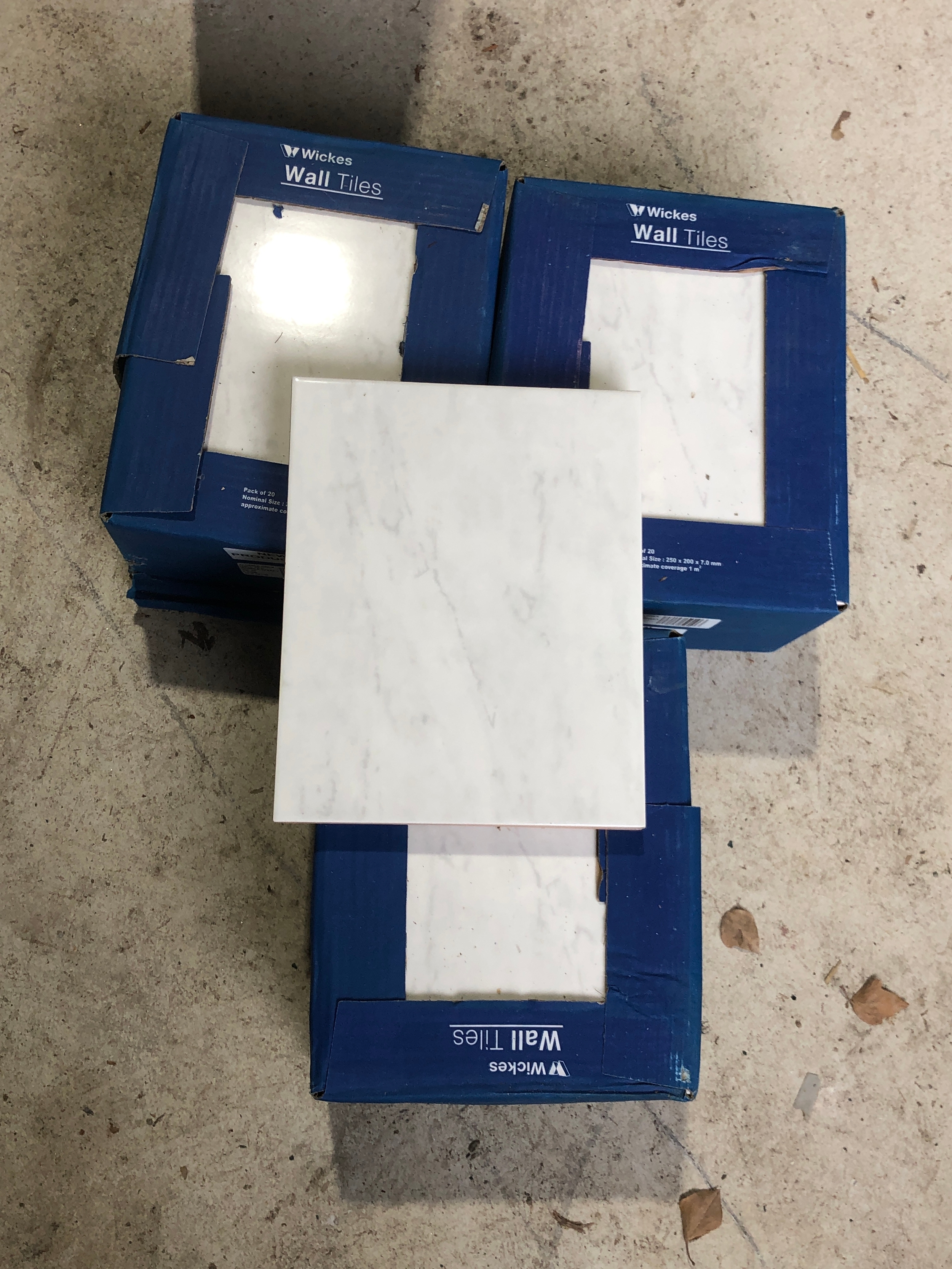 3 full boxes of 20 and 4 lose Wickes wall tiles in Florina grey with marble effect (64)