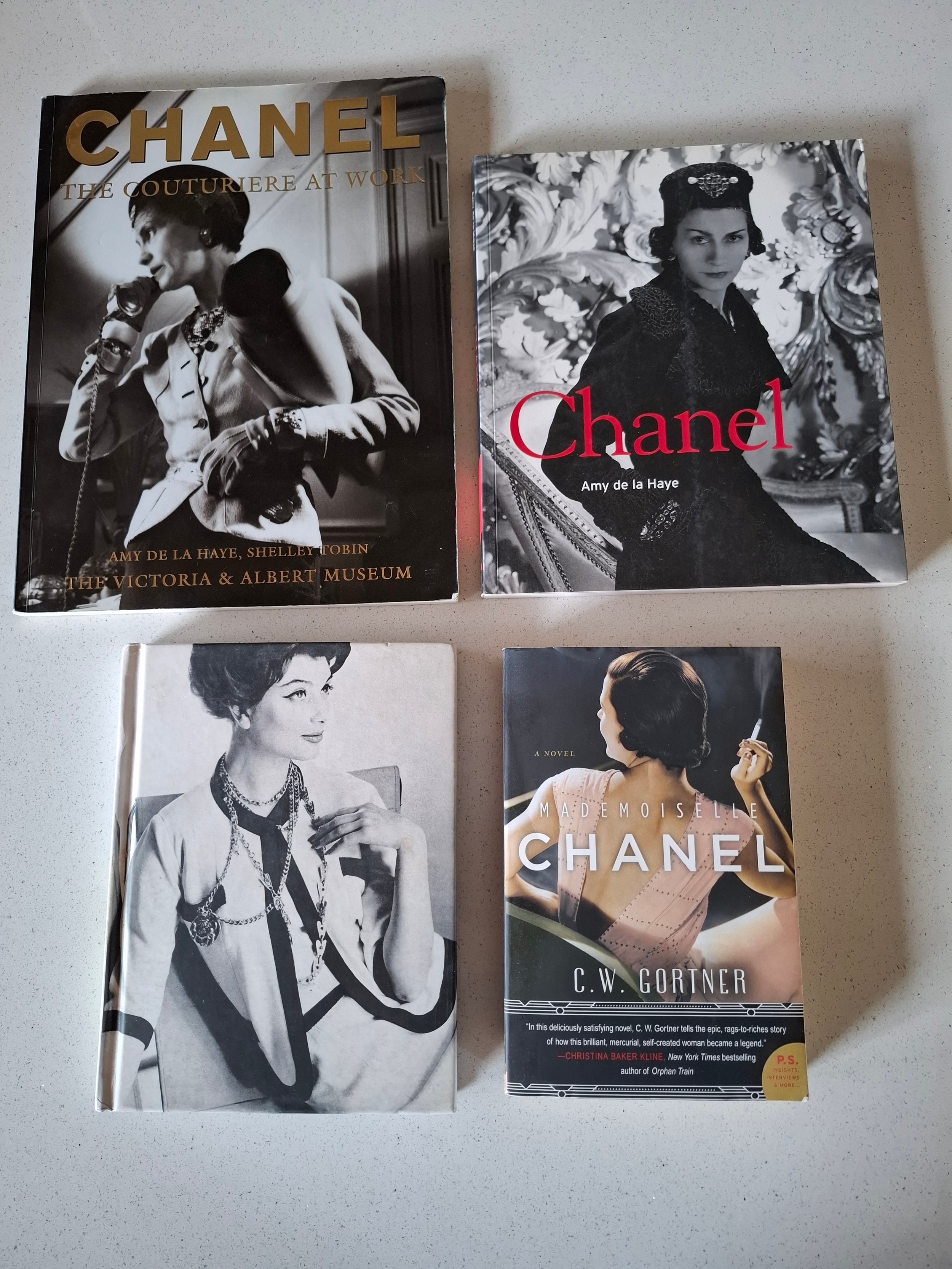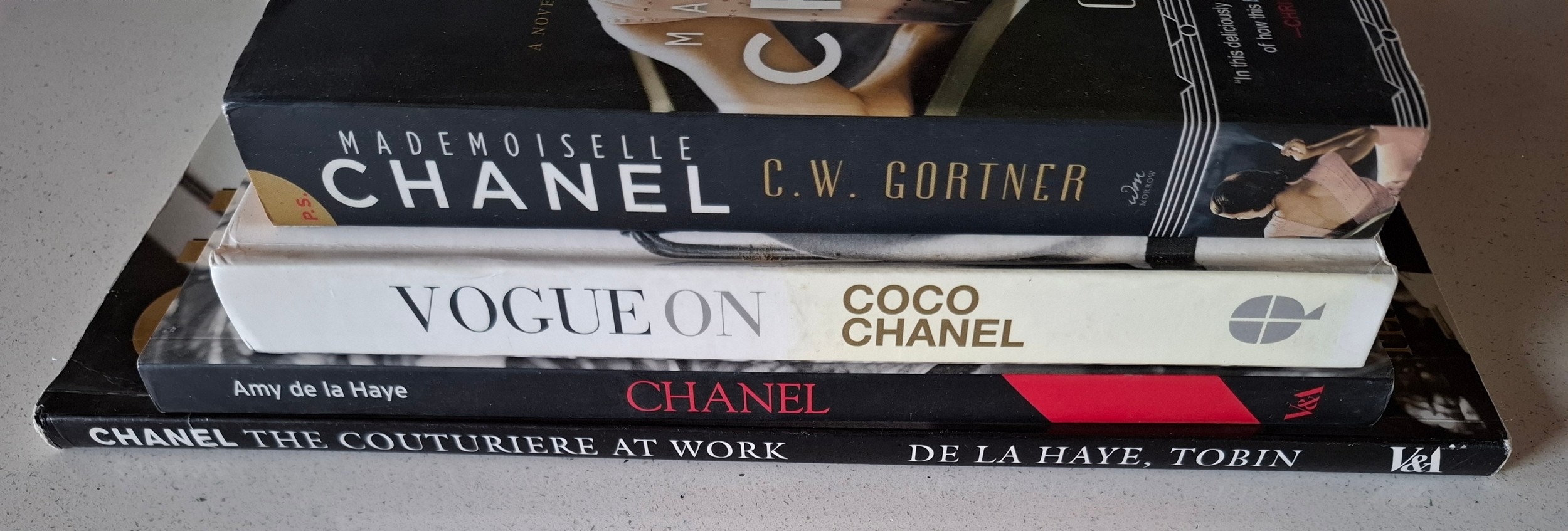 Chanel-Four coffee table books to include Vogue on Coco Chanel. Location:R1.1