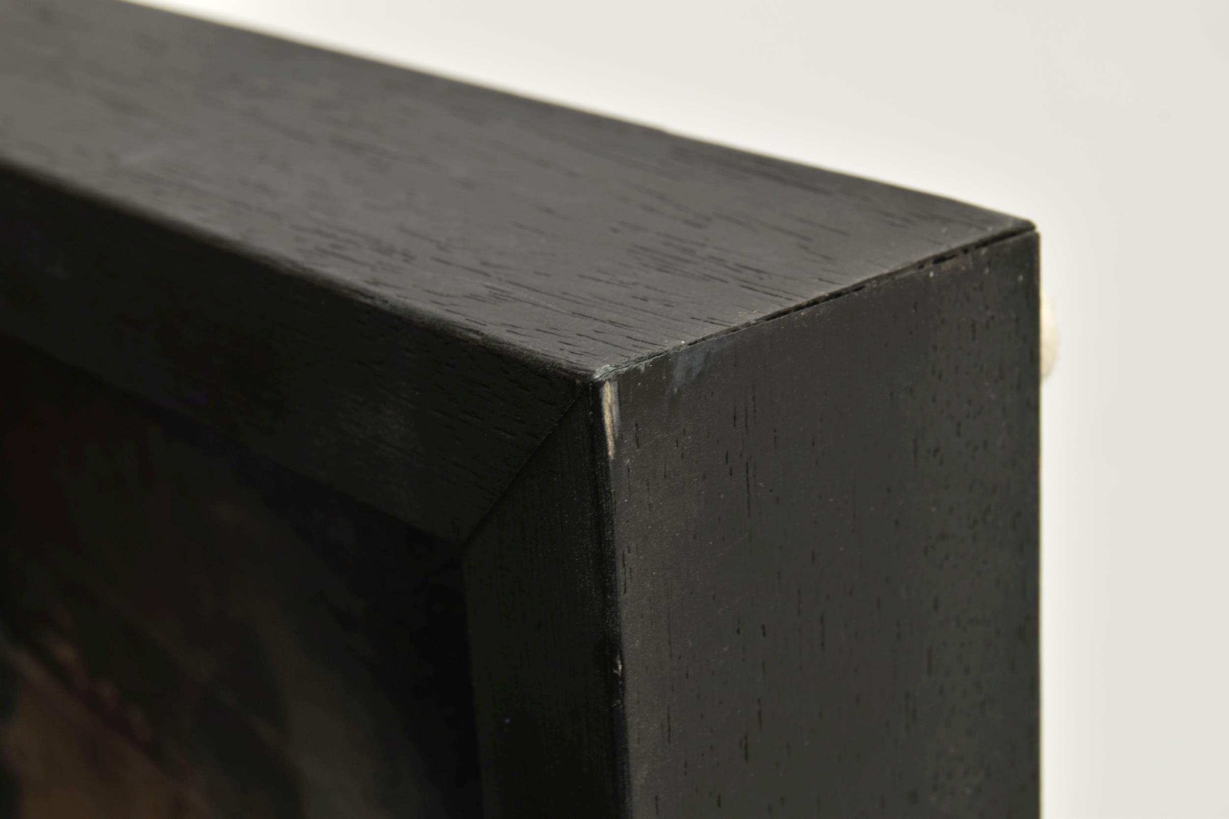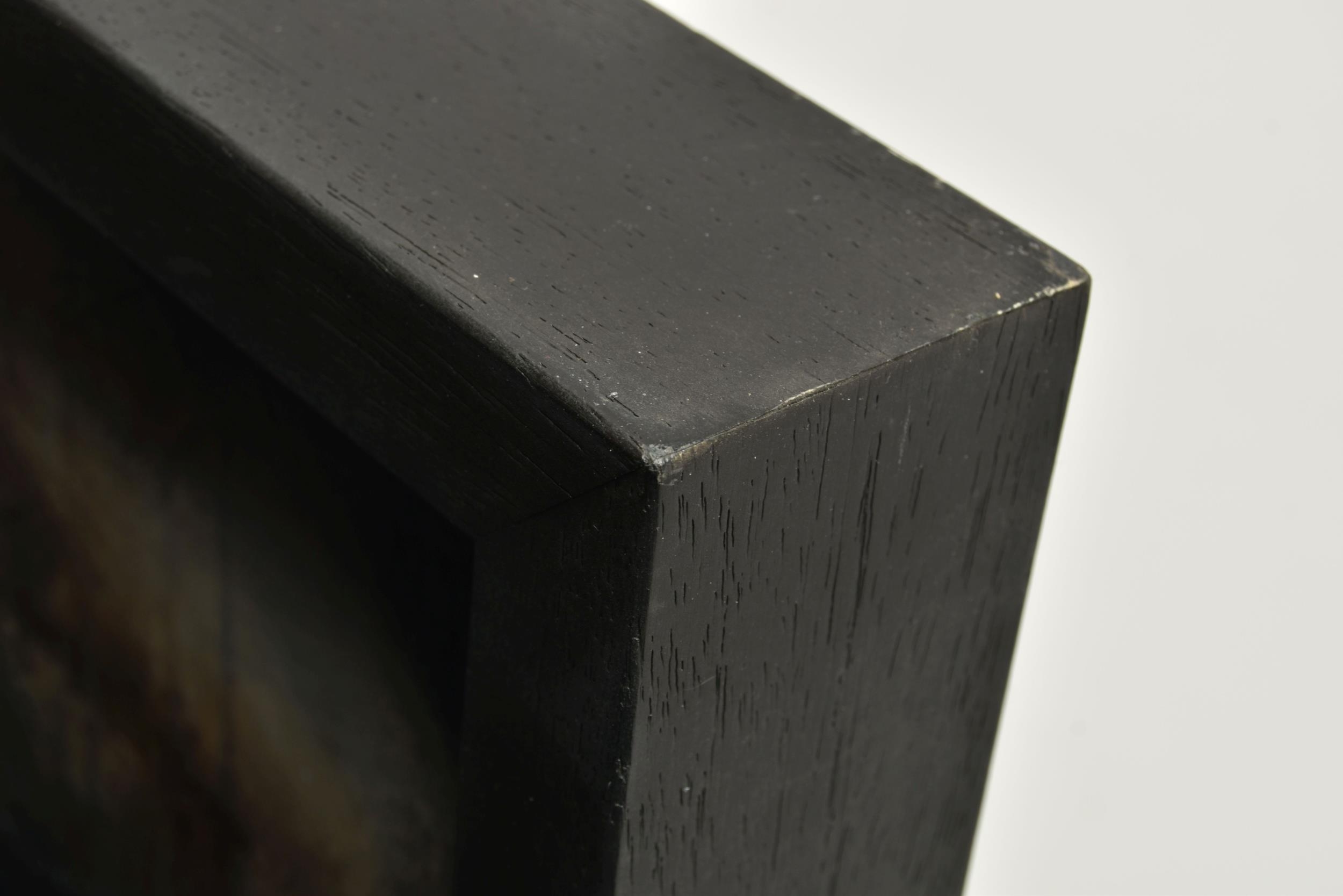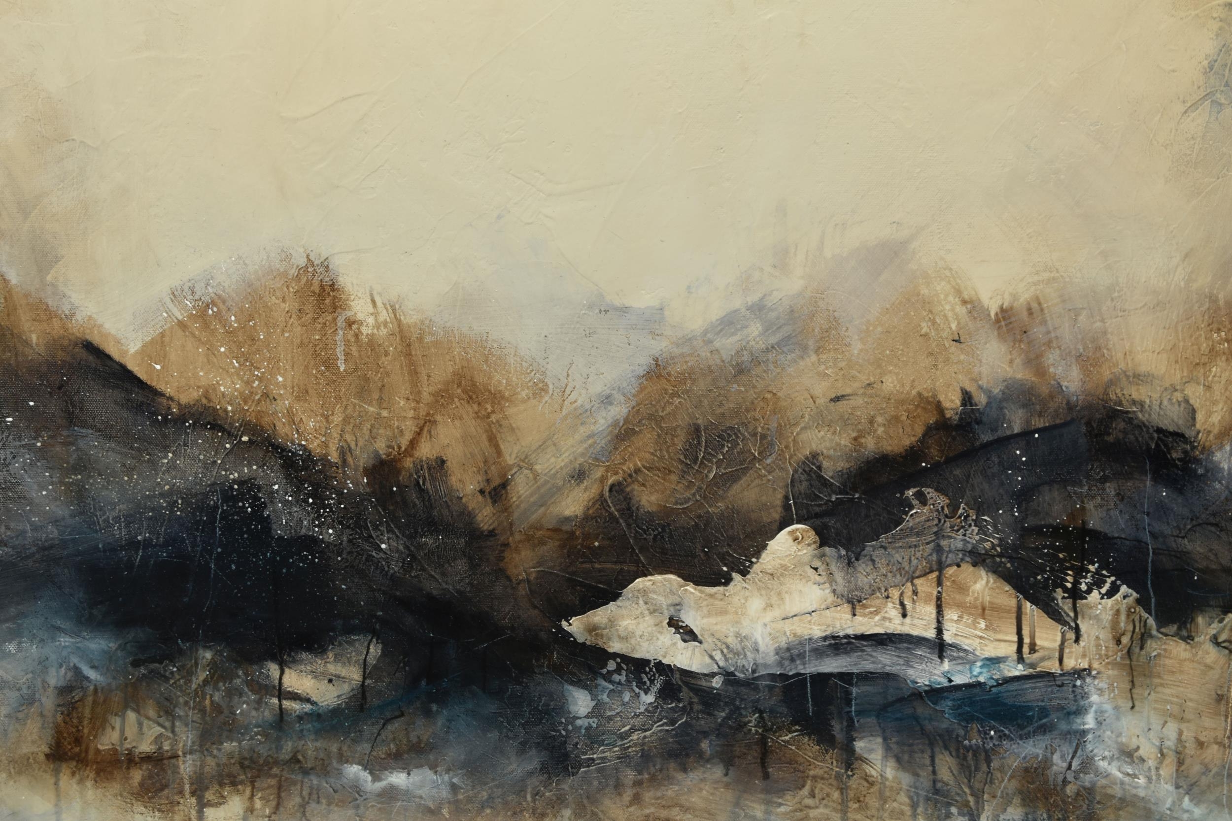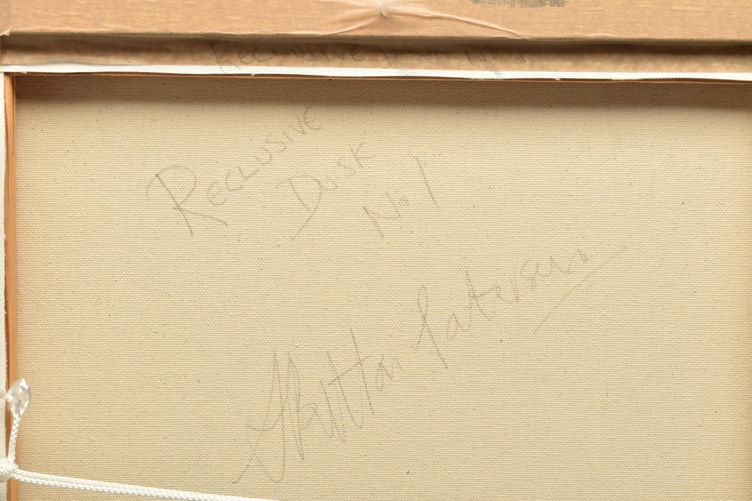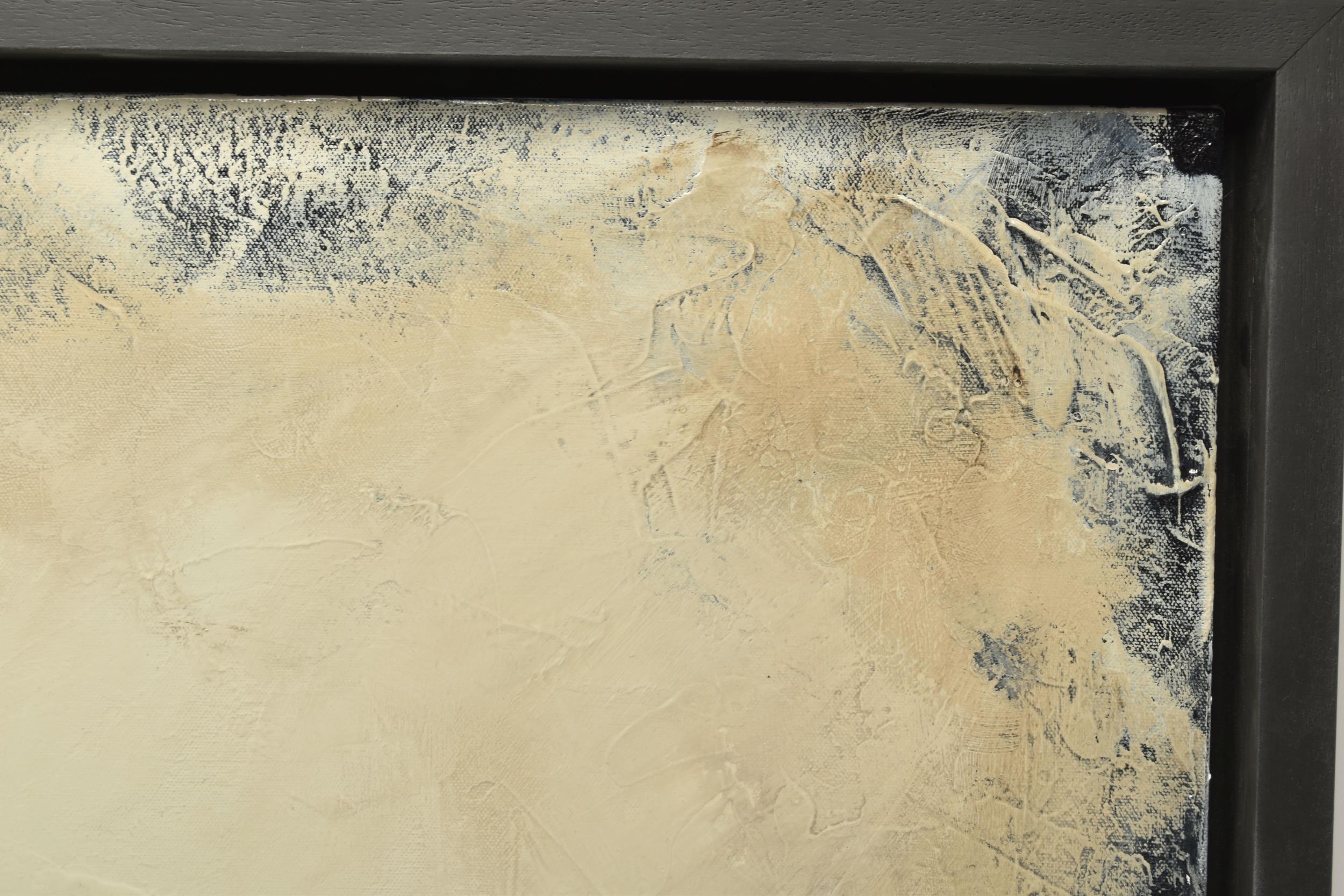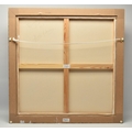 ALISON BRITTON-PATERSON (BRITISH 1974) 'RECLUSIVE DUSK', an abstract moody landscape signed and titled verso, oil on canvas, approximate size 80cm x 80cm, frame size 87cm x 87cm, Condition Report: bumps and rubs to corner edges of the frame