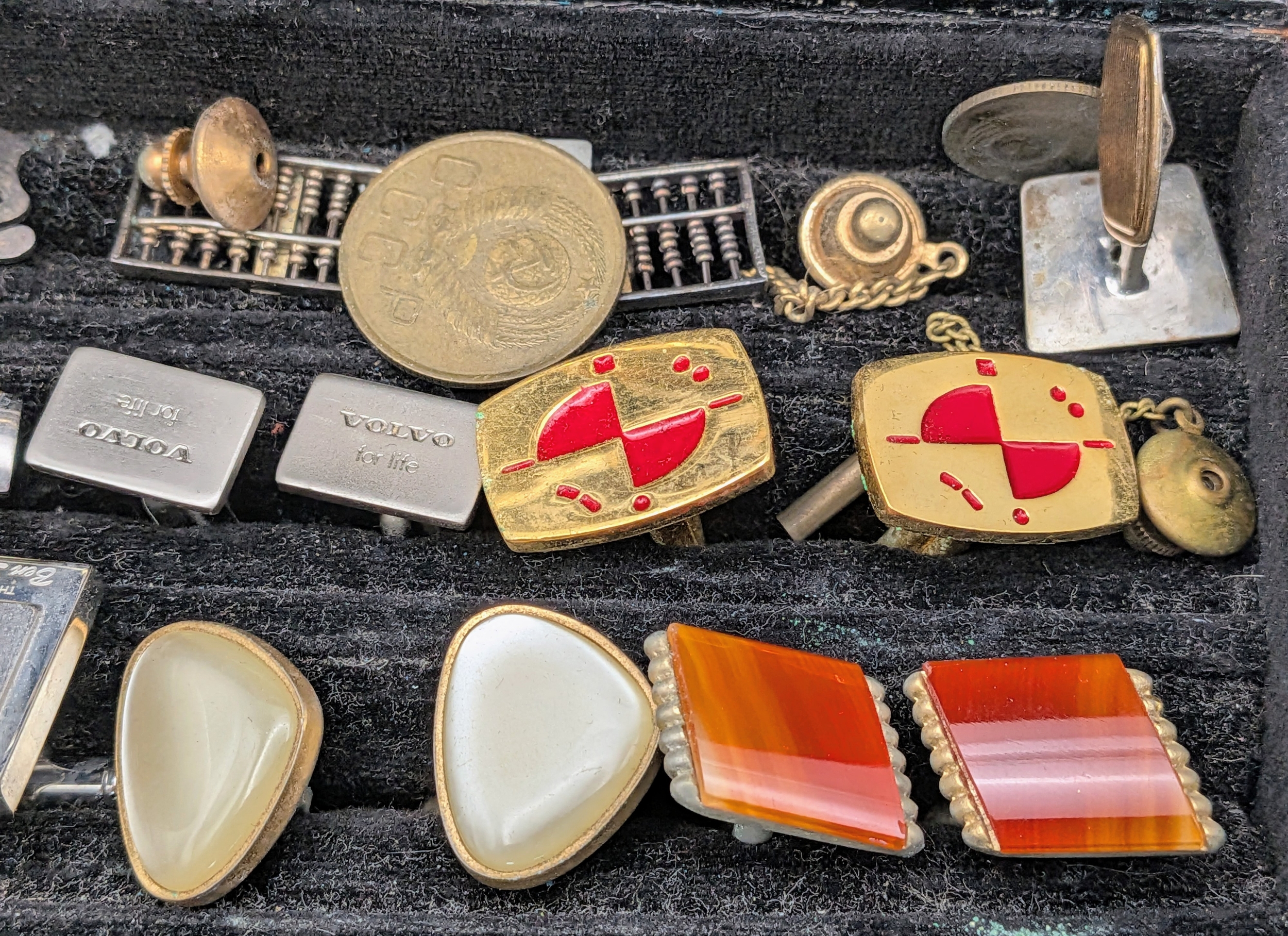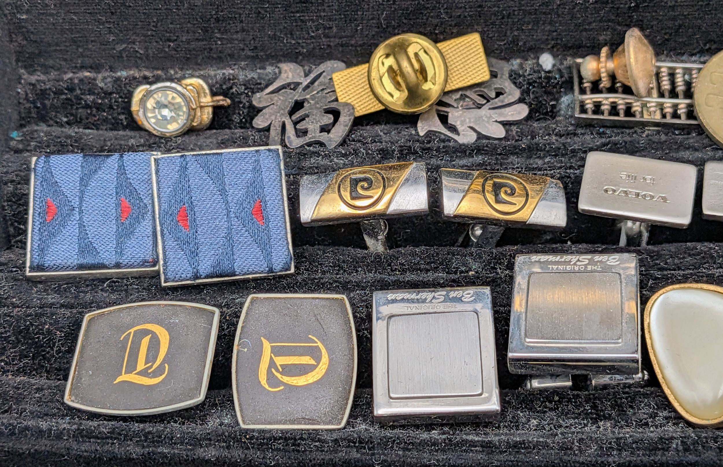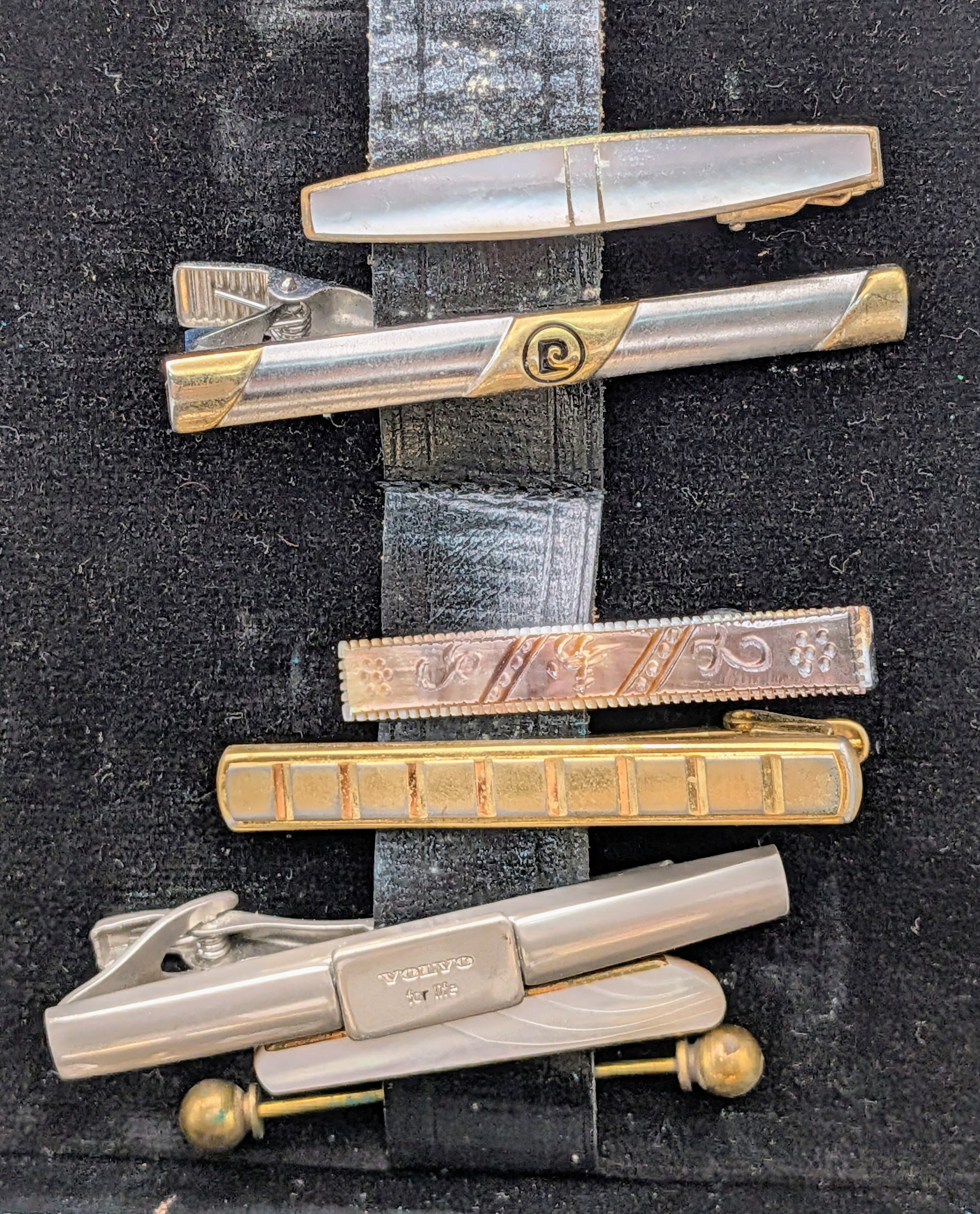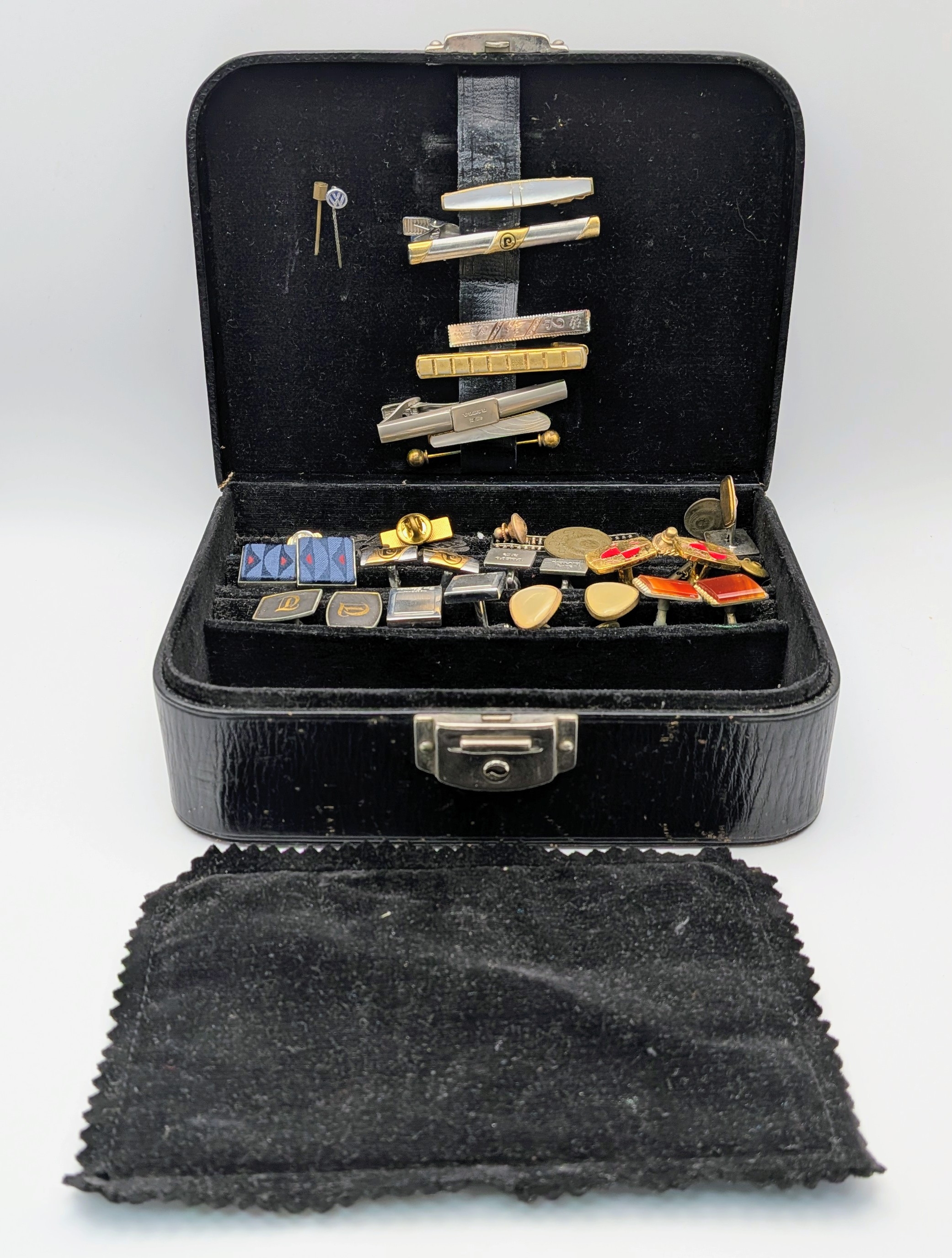 A Collection of Vintage Tie Pins, clips and cufflinks. Comes in a presenation case.