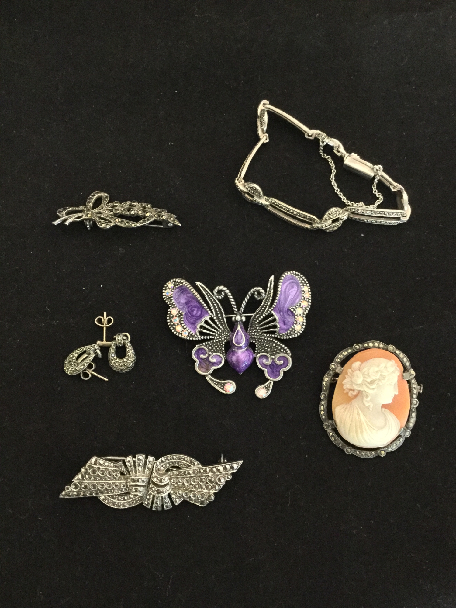 together with similar bracelet, brooch, ear-pendants, cameo brooch and another brooch -