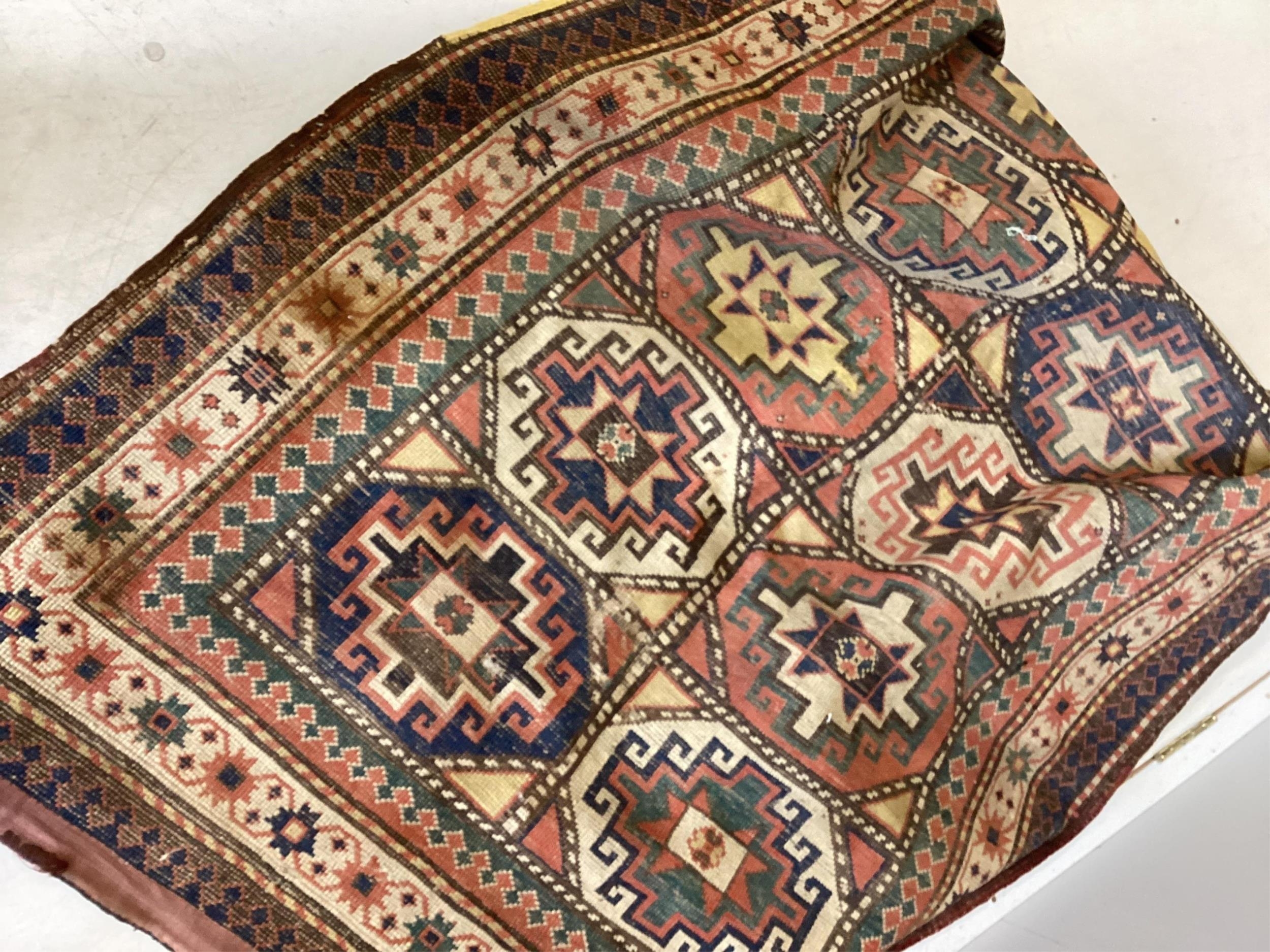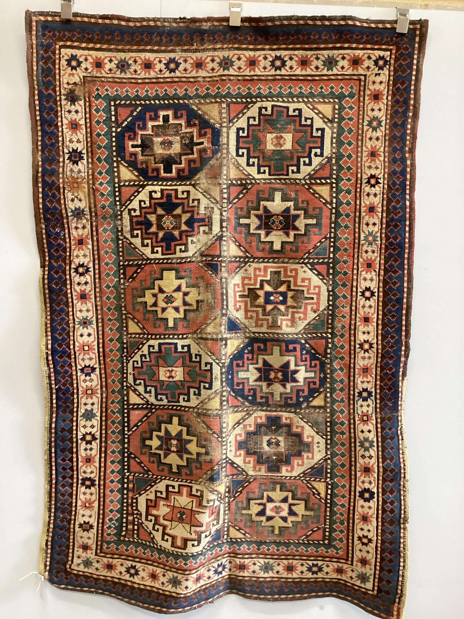 An antique Caucasian Shirvan rug, 184 x 117cm. Condition - poor-fair