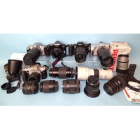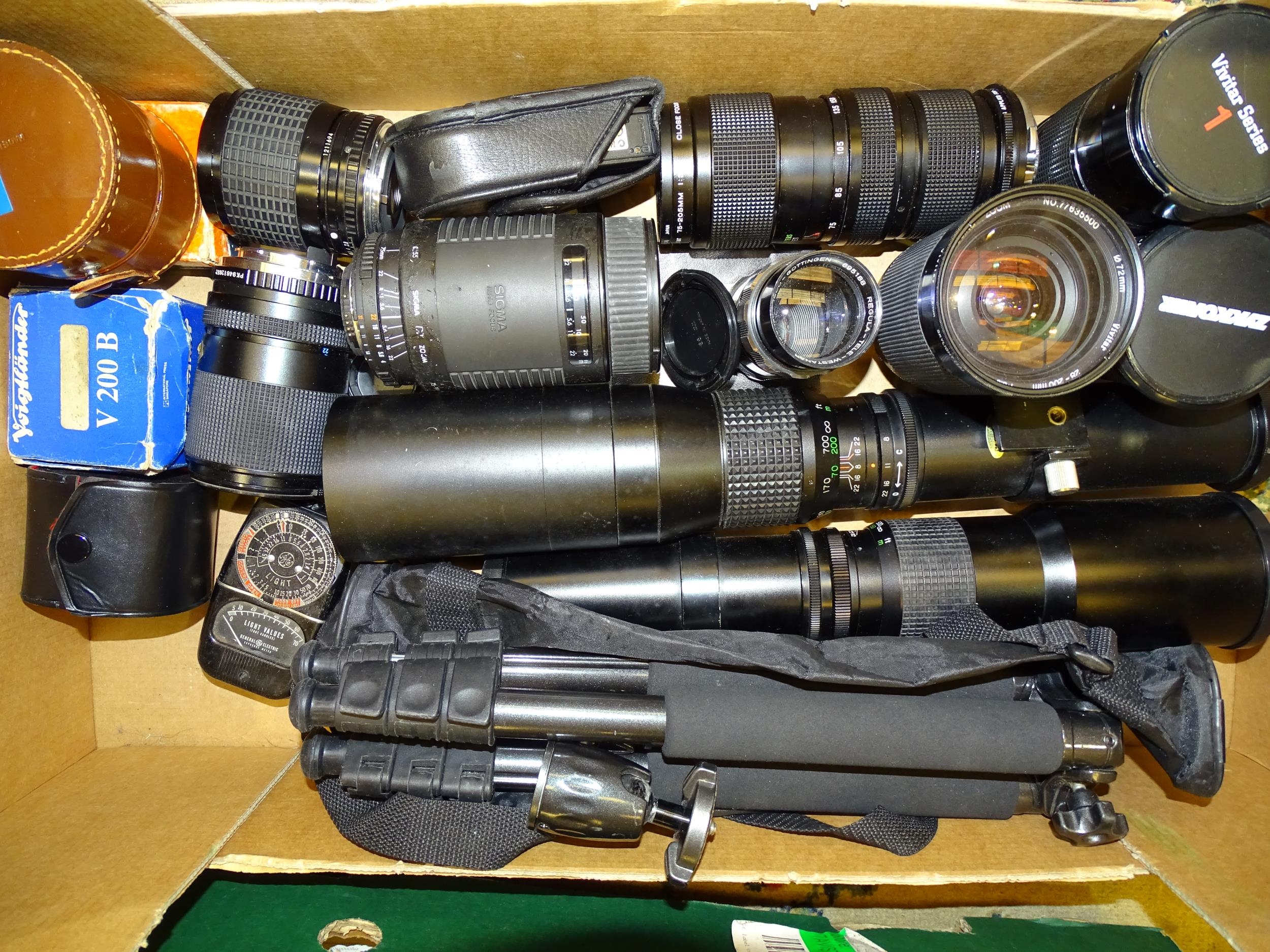 Ten zoom lenses by Sigma, Vivitar, Zykkor, Sunagar and Paragon and other items.
