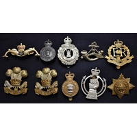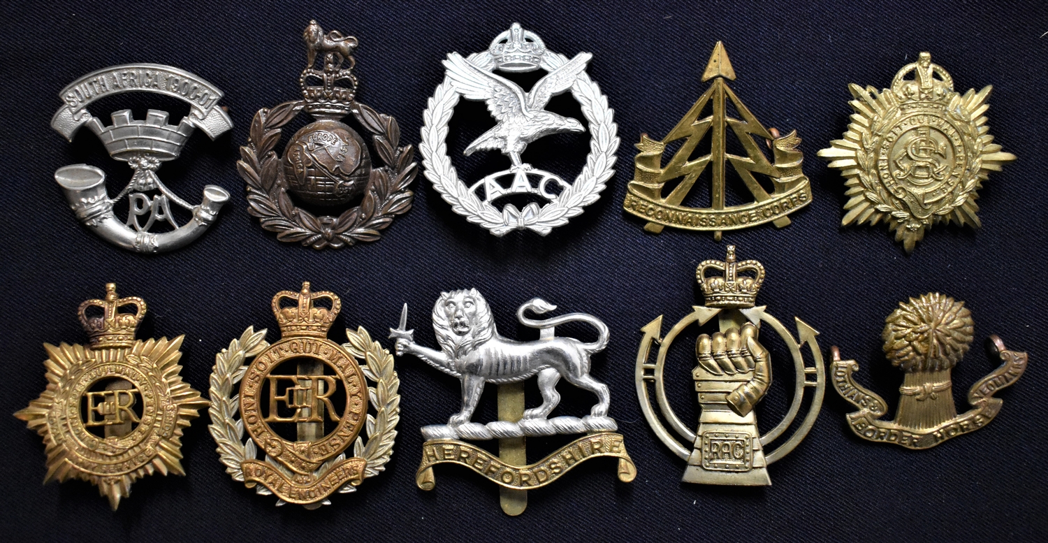 British Military Cap Badges (10) including: Royal Corps of Transport, Lothian & Border Horse, RASC, Herefordshire, RAC, Army Air Corps etc.