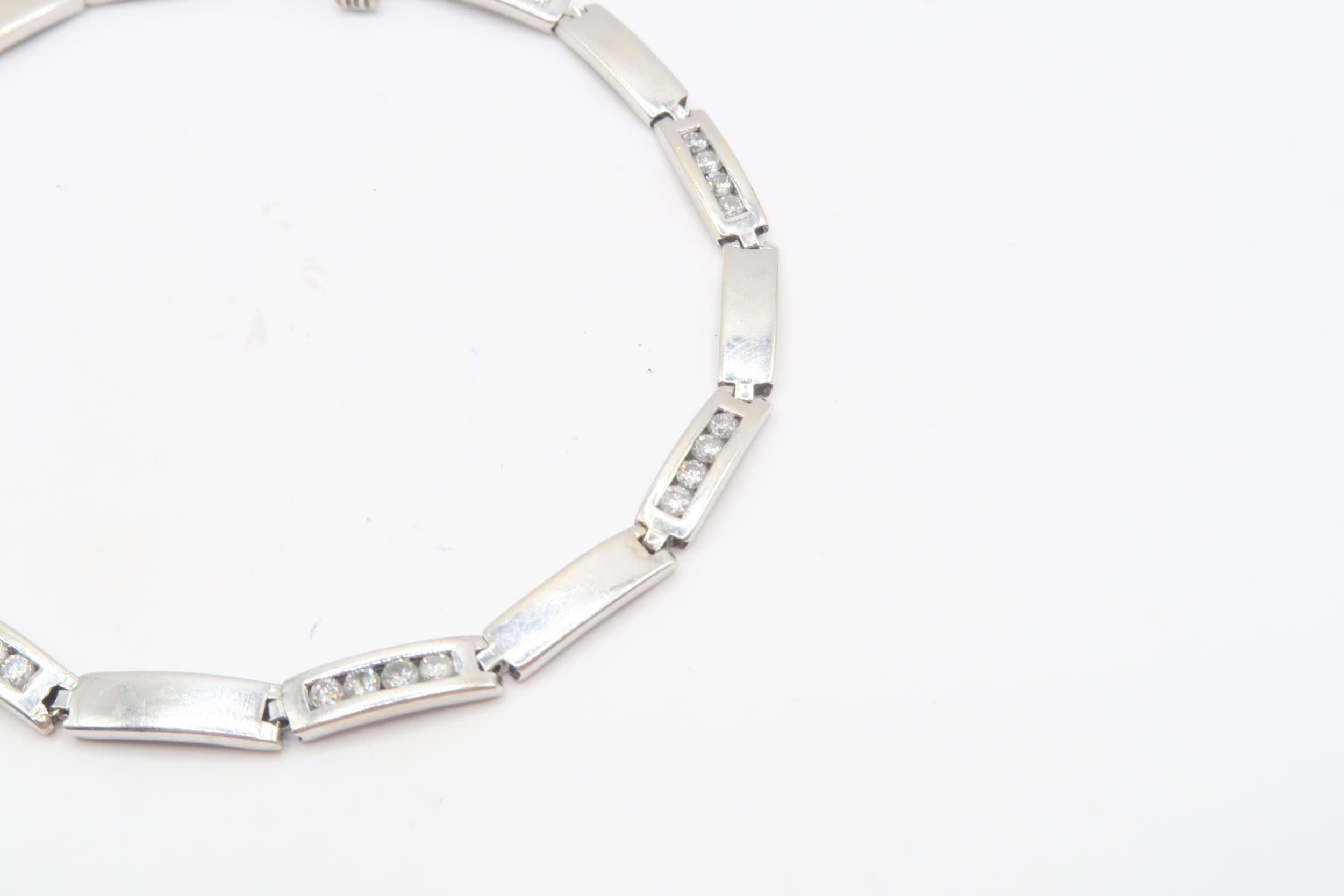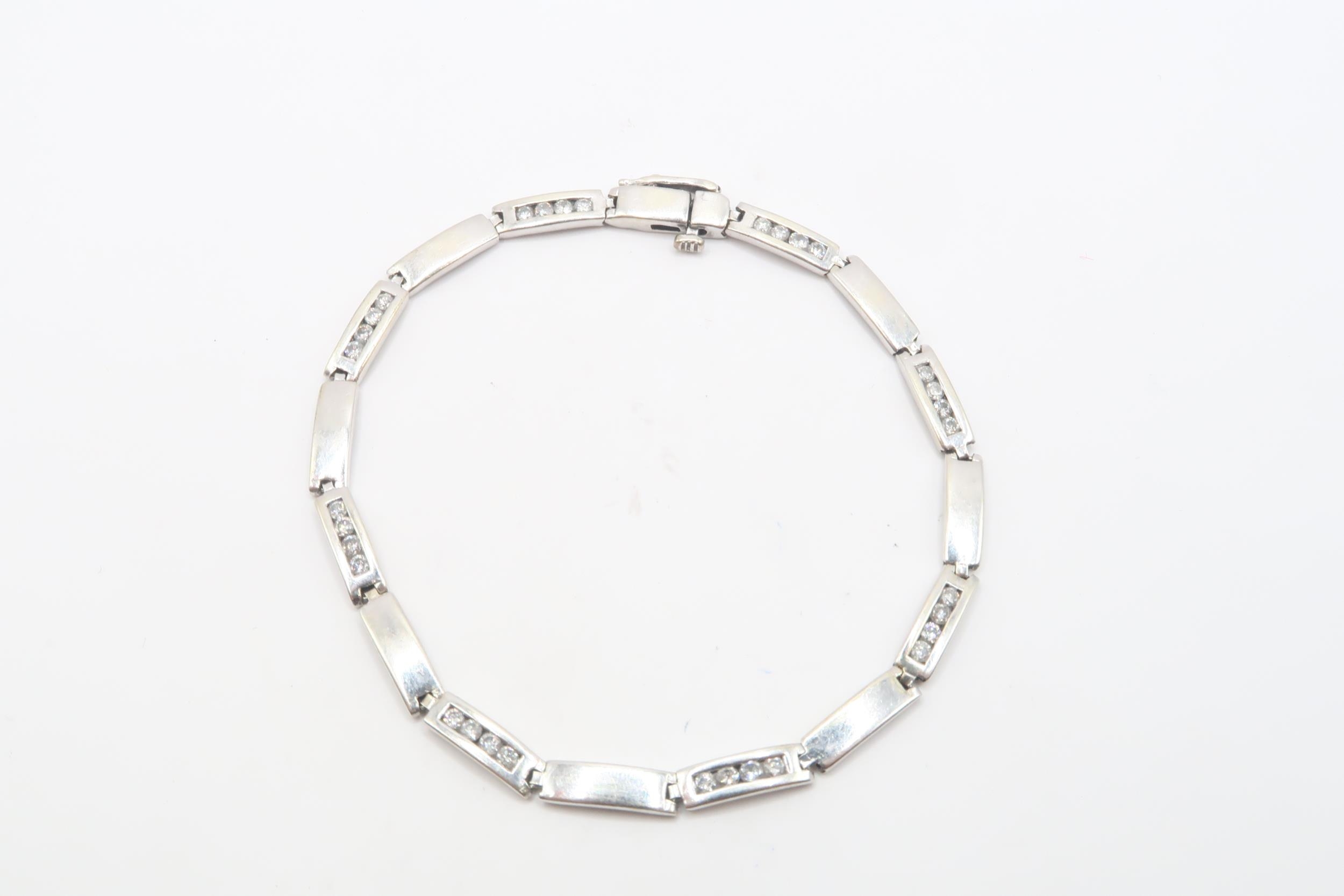 A 9ct Diamond Bar Link Bracelet, Composed of alternating polished and diamond-set rectangular links.