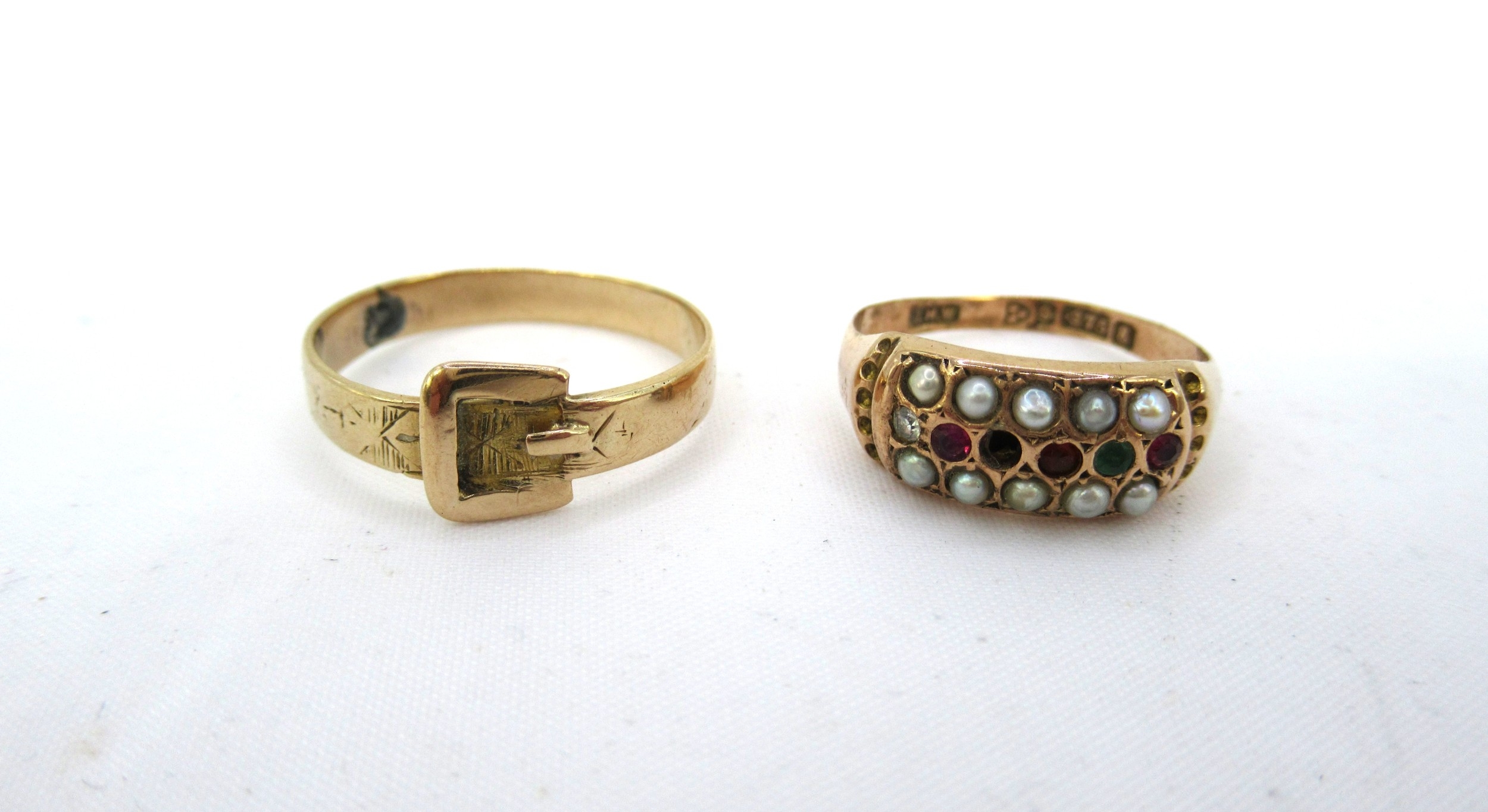 19th Century 9ct gold ' Regard ' ring (minus one stone), together with a gold buckle ring