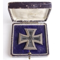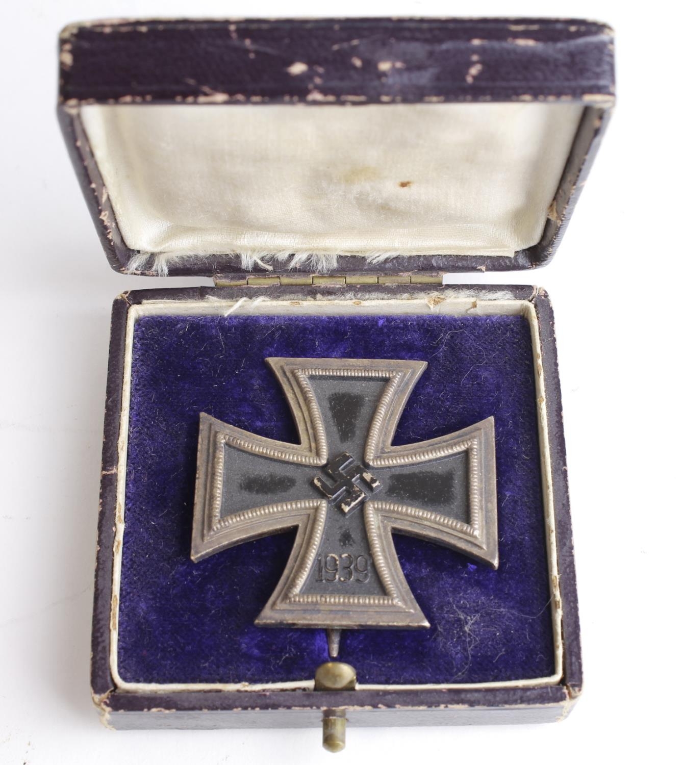 German Nazi Iron Cross 1st Class, maker marked to pin. Case with attempted removal of insignia