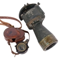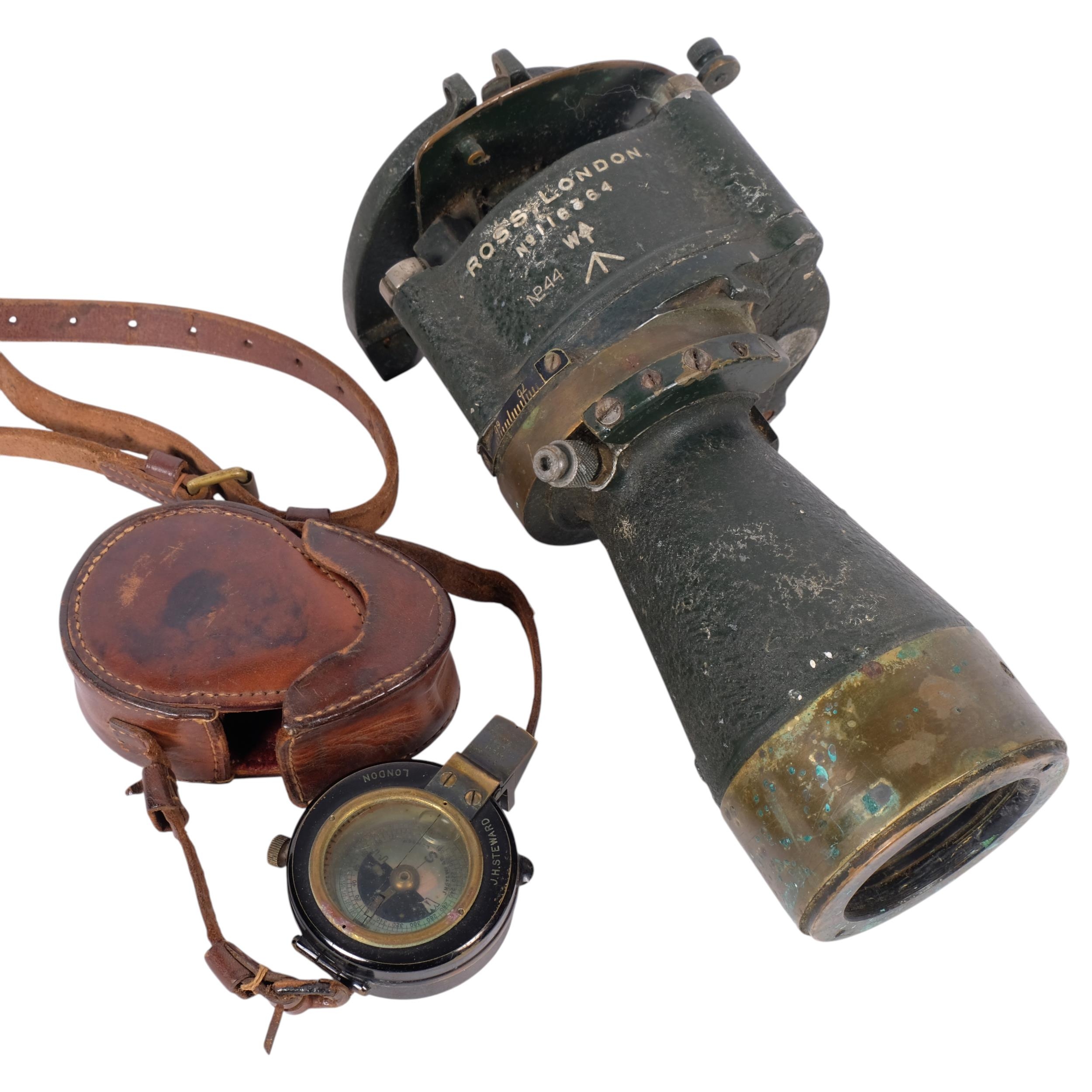 A Second War British anti-aircraft gun telescope, possibly an M90, and J.H. Steward military compass and case