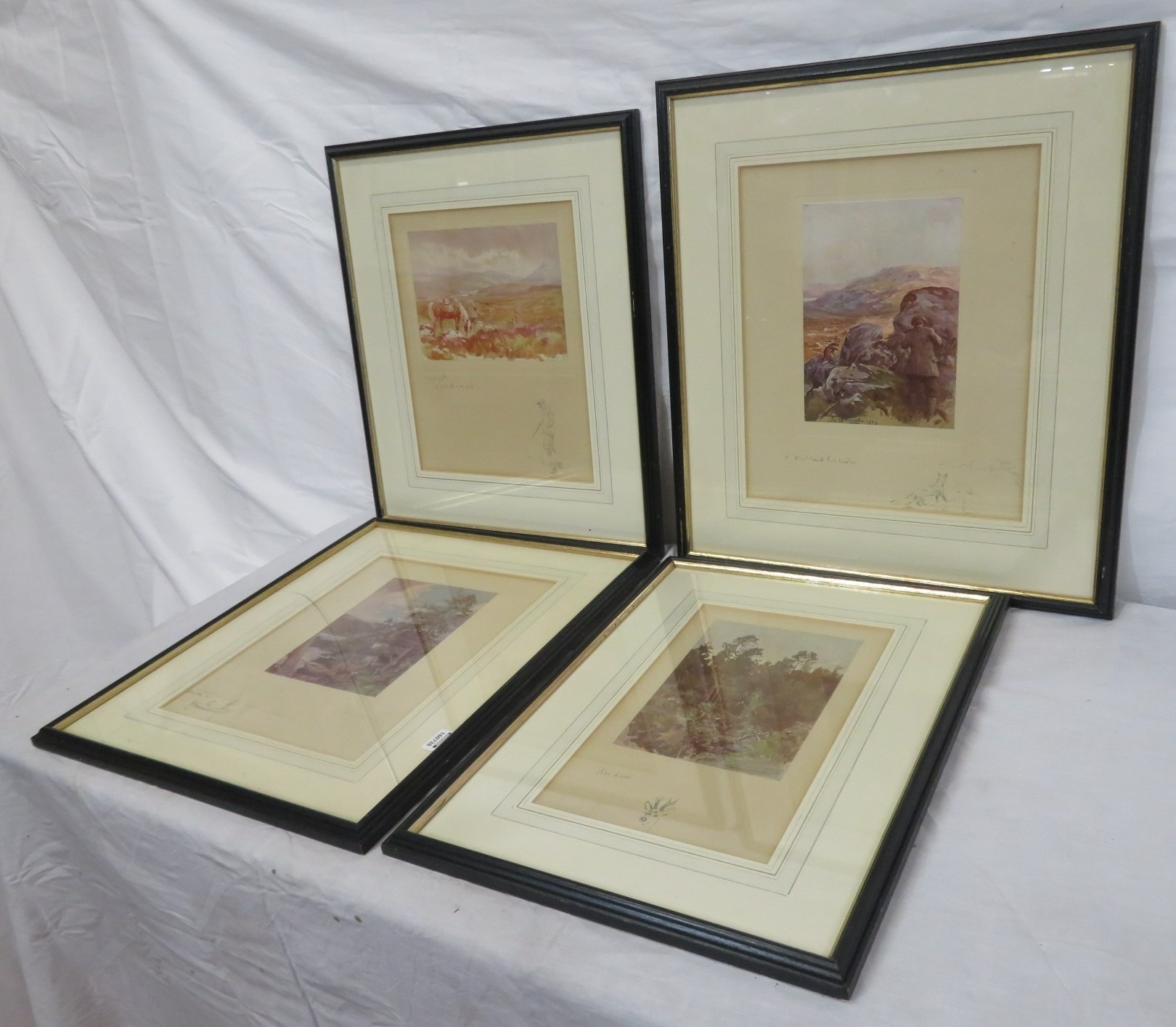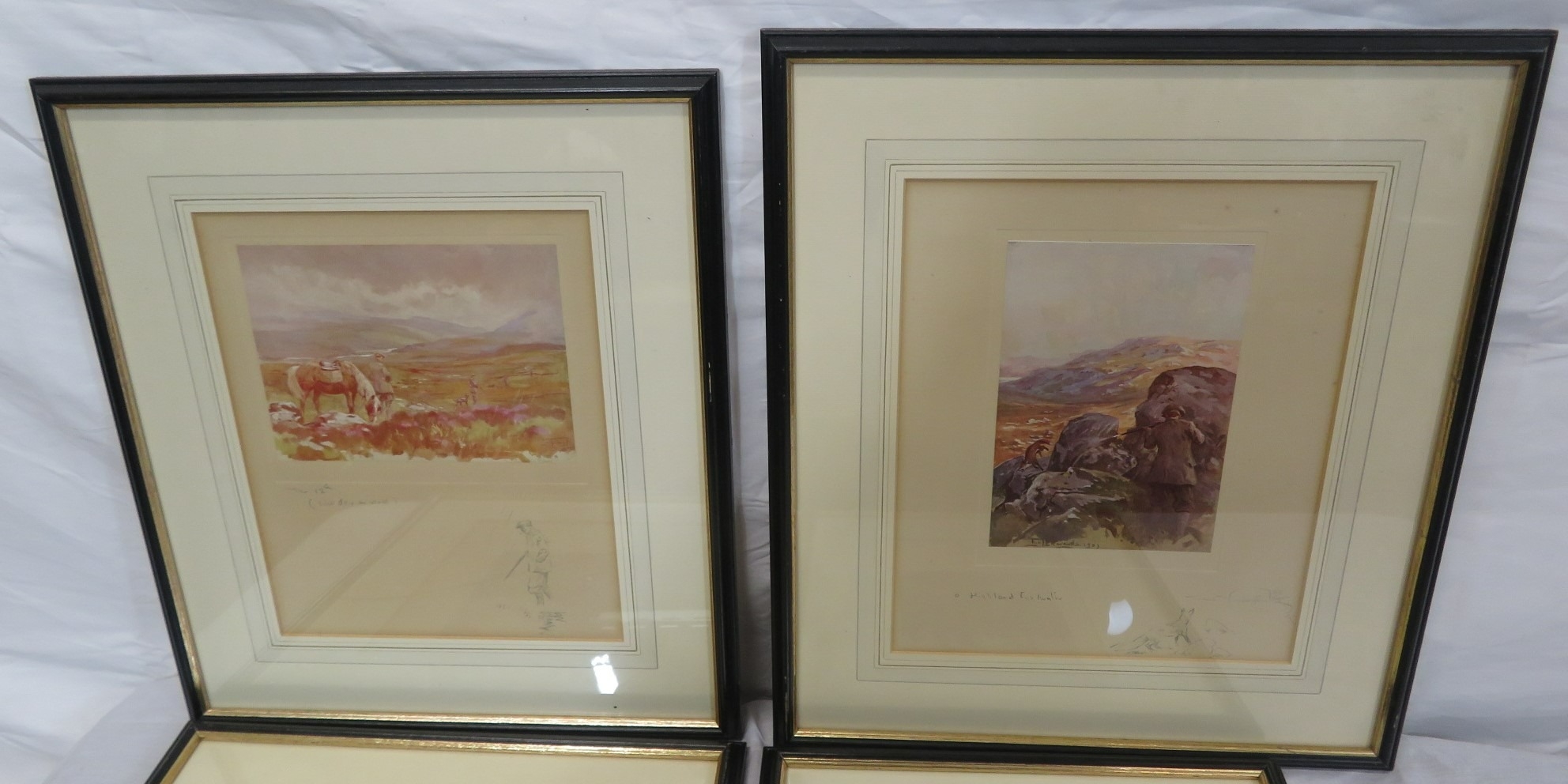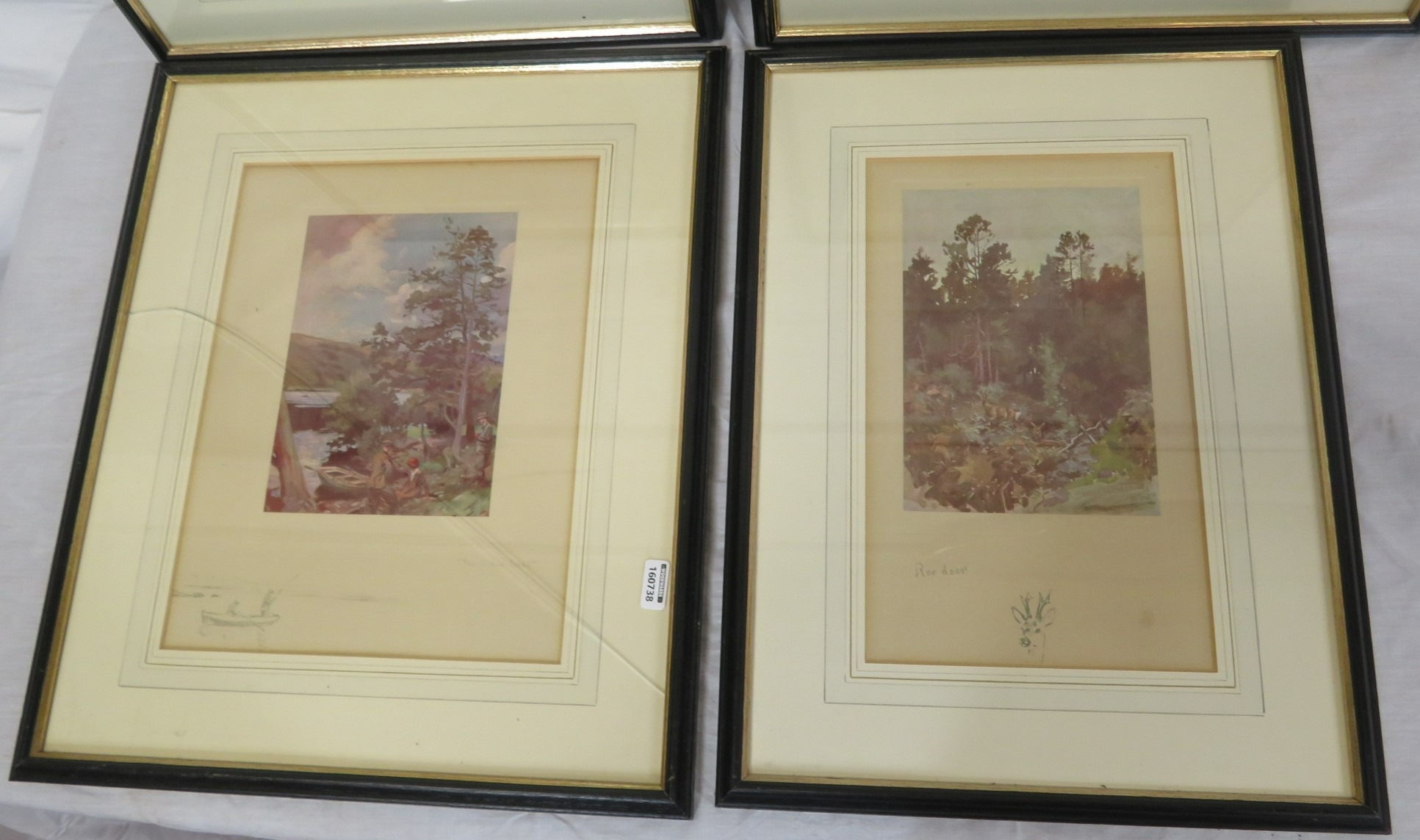 Lionel Edwards 'Wet Day', 'Highland foxhunter', 'The other boat' & 'Roe deer' 4 prints, 13x17/26x21cm