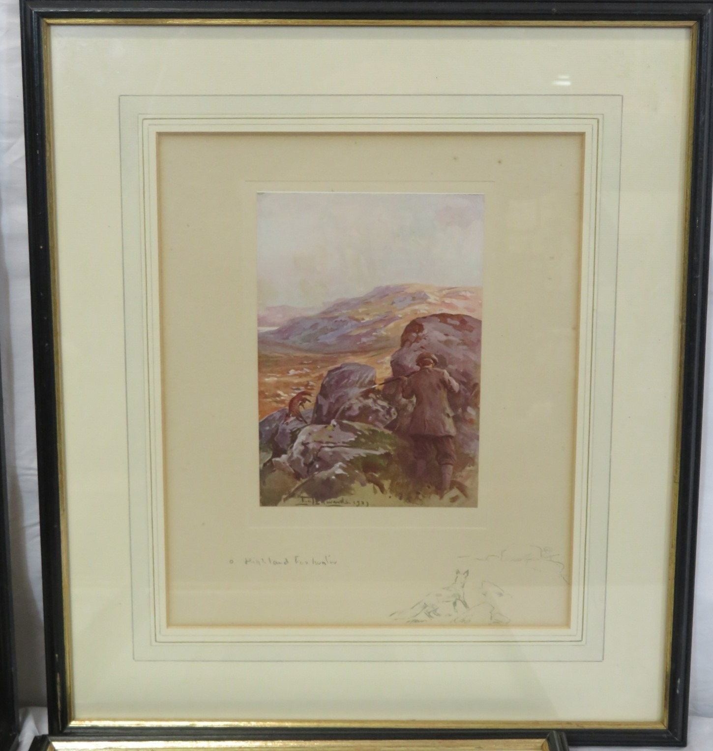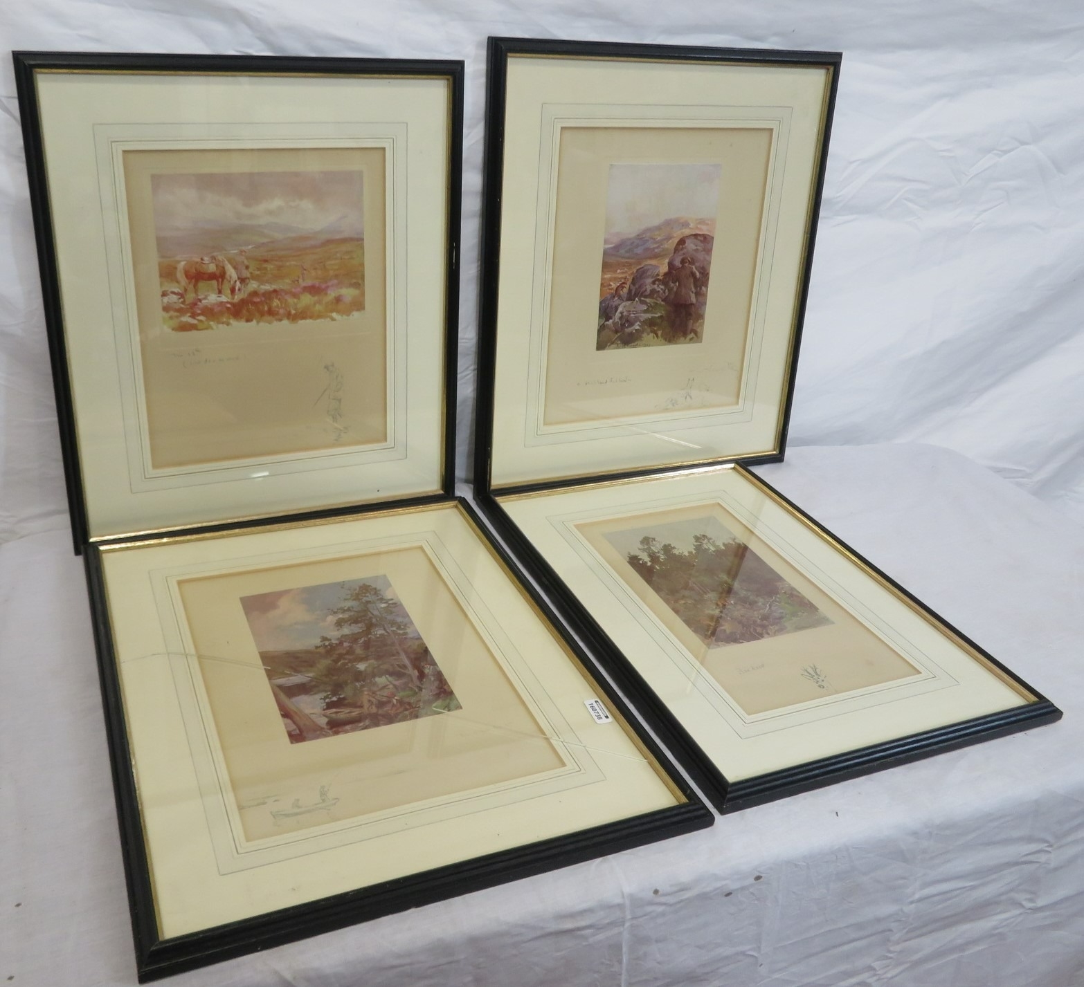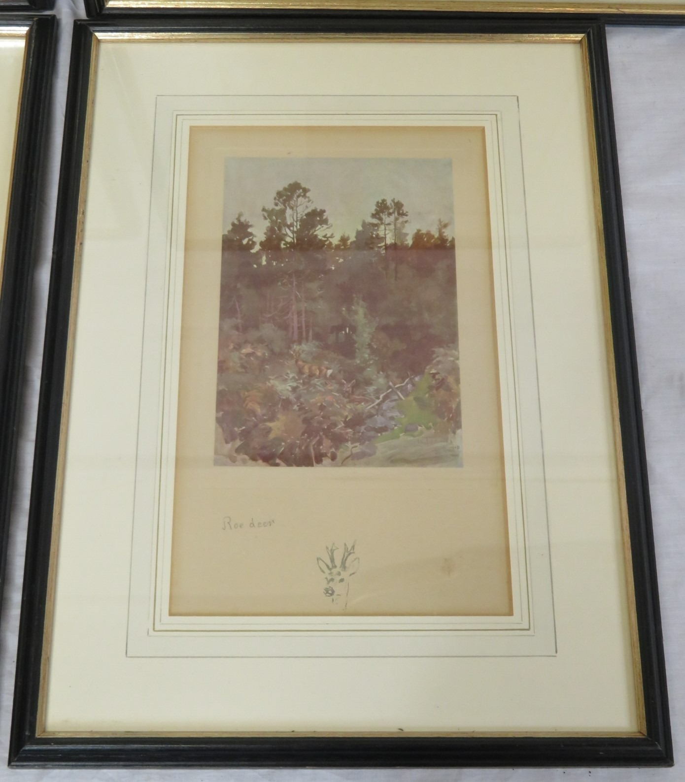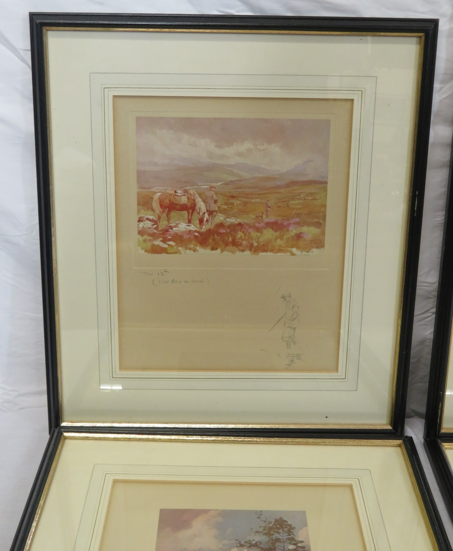 Lionel Edwards 'Wet Day', 'Highland foxhunter', 'The other boat' & 'Roe deer' 4 prints, 13x17/26x21cm