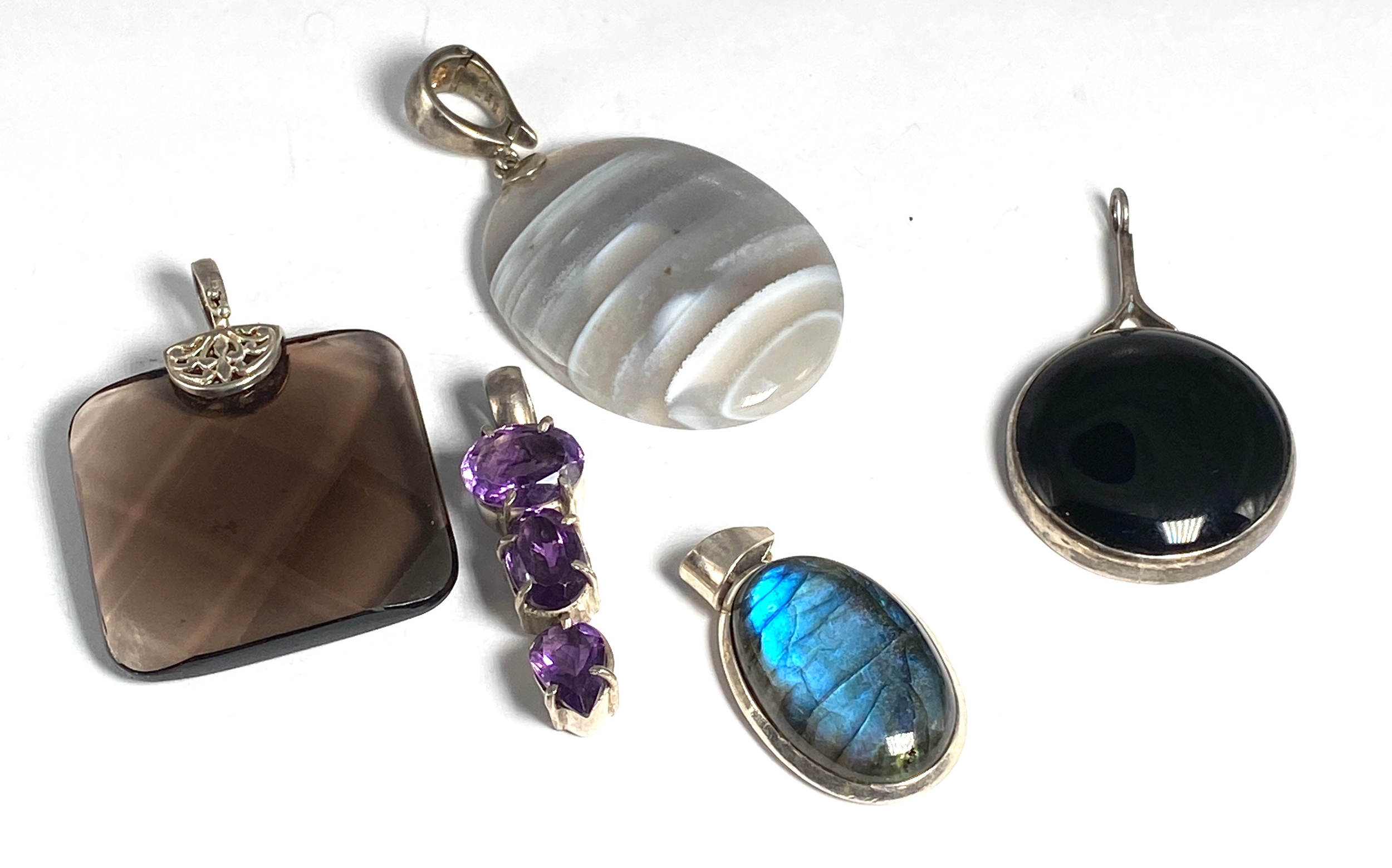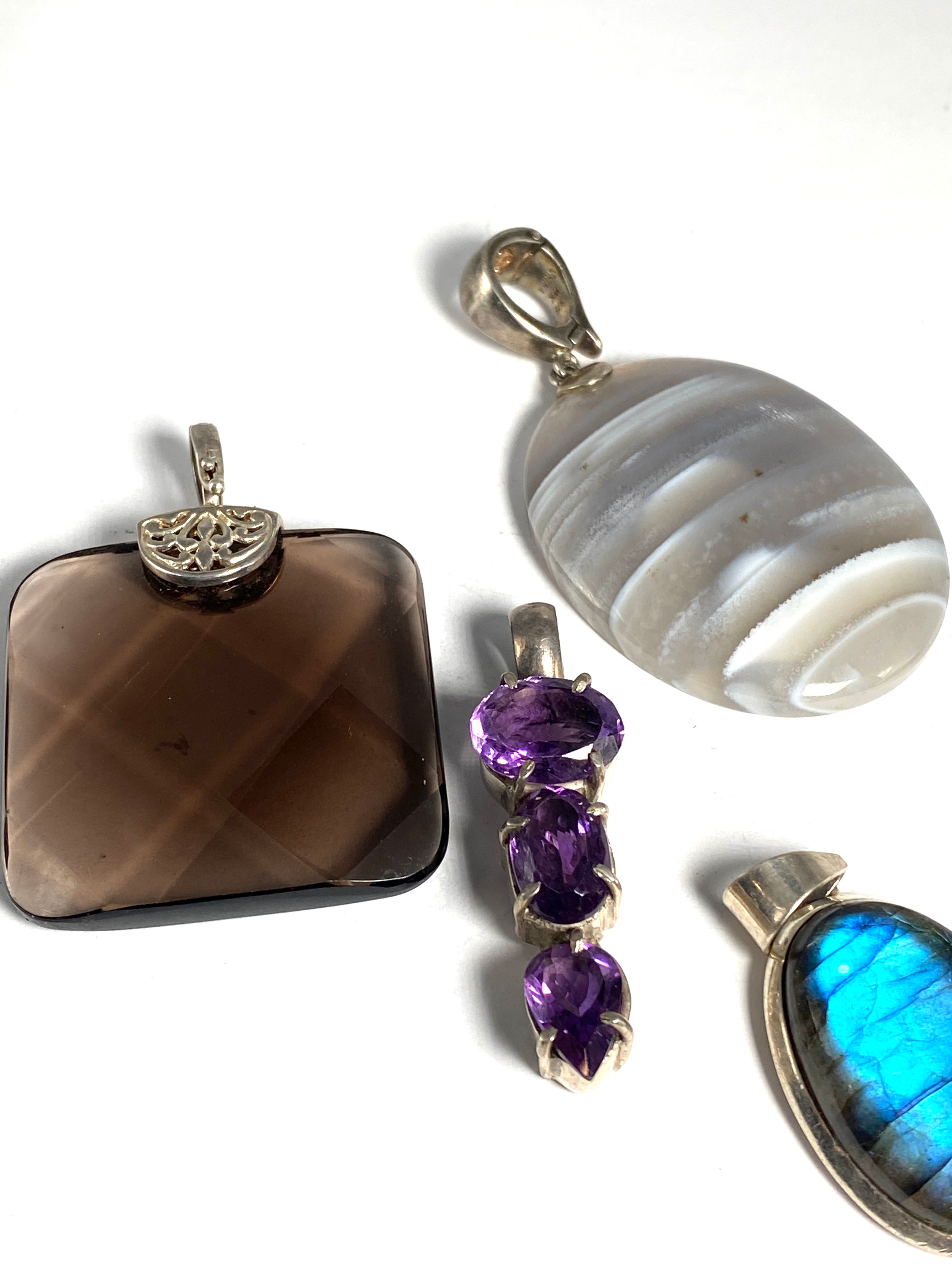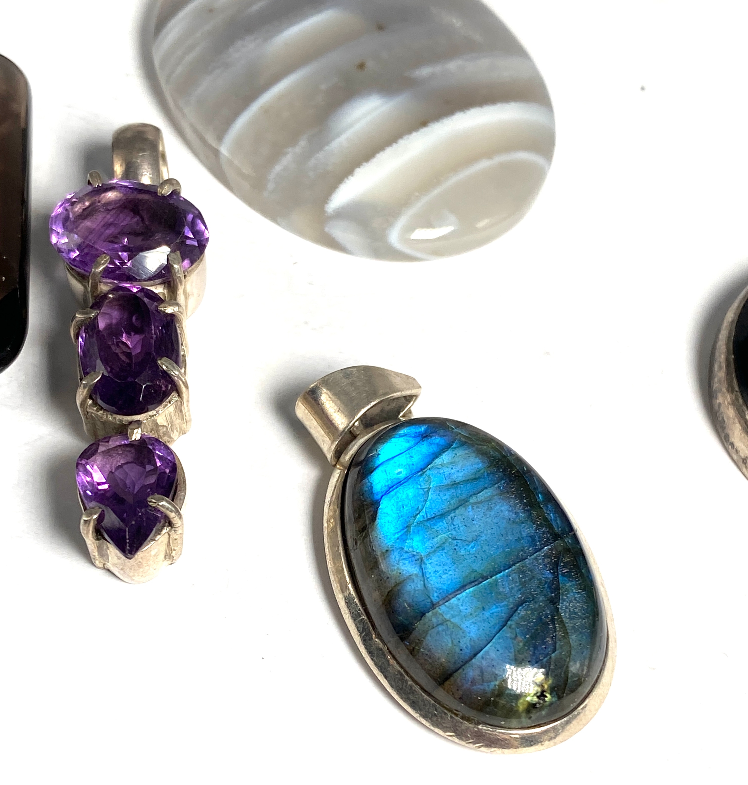 Selection of Natural Stones Silver Pendants inc labradorite Weight 85g