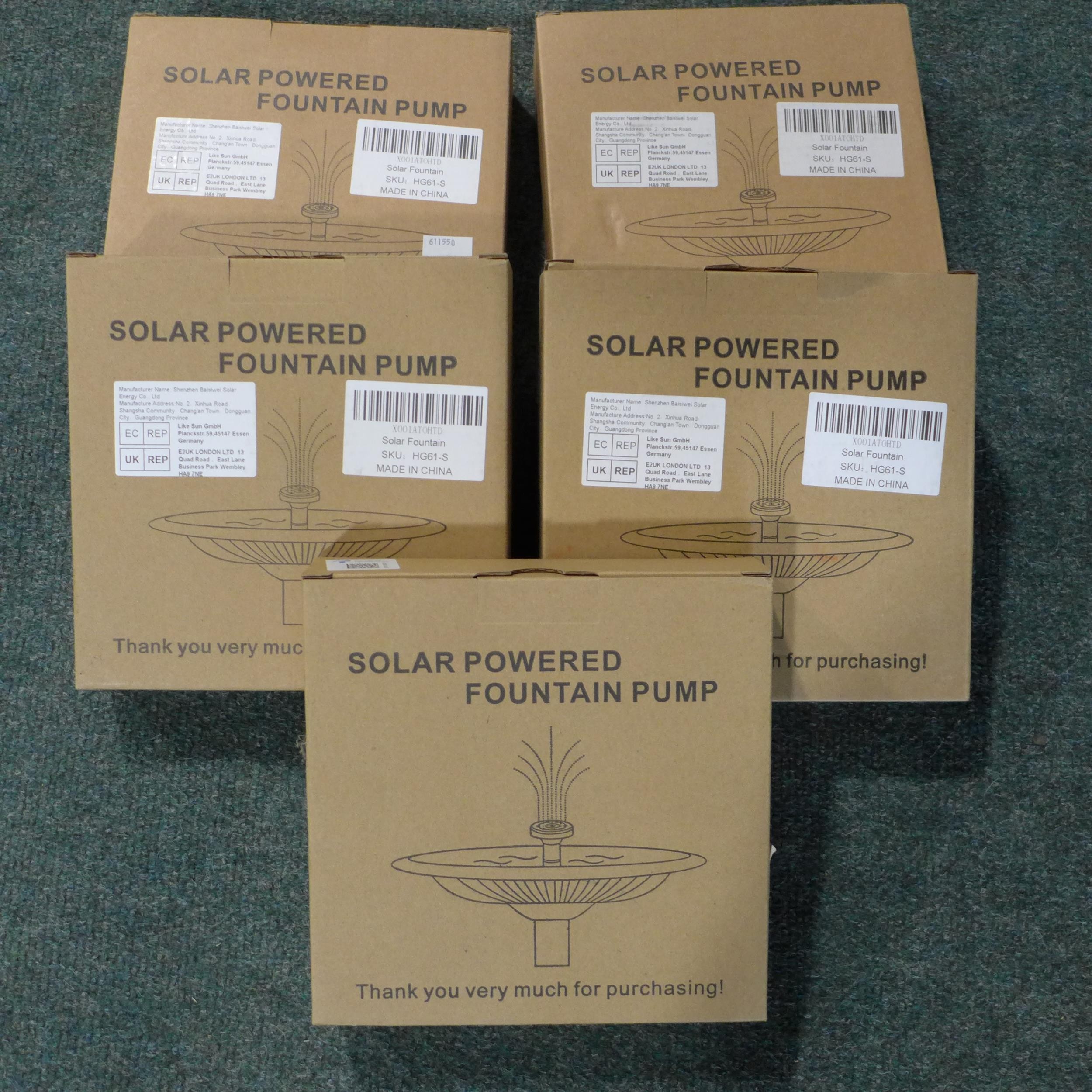 Five solar powered fountain pumps (mixed style)