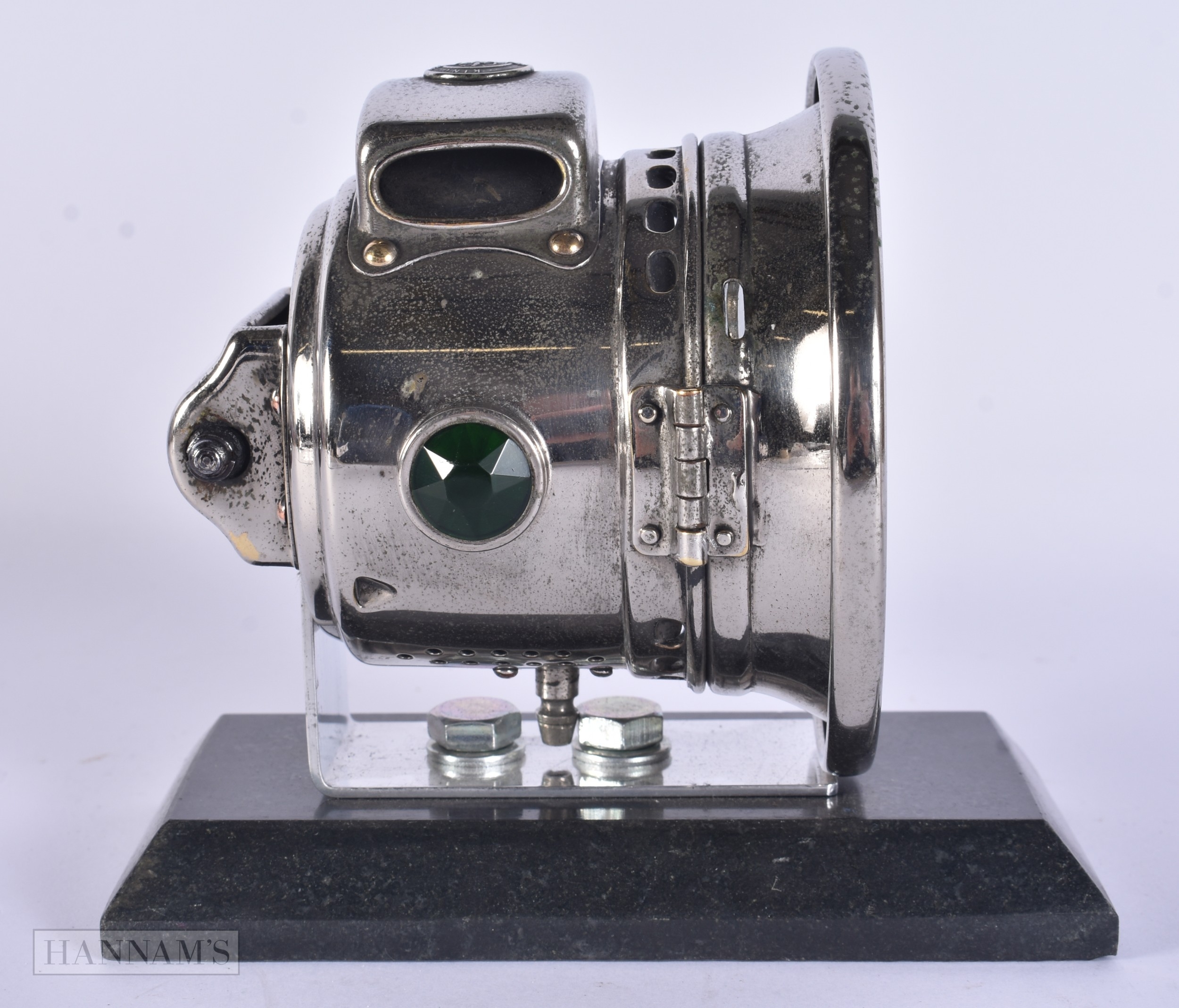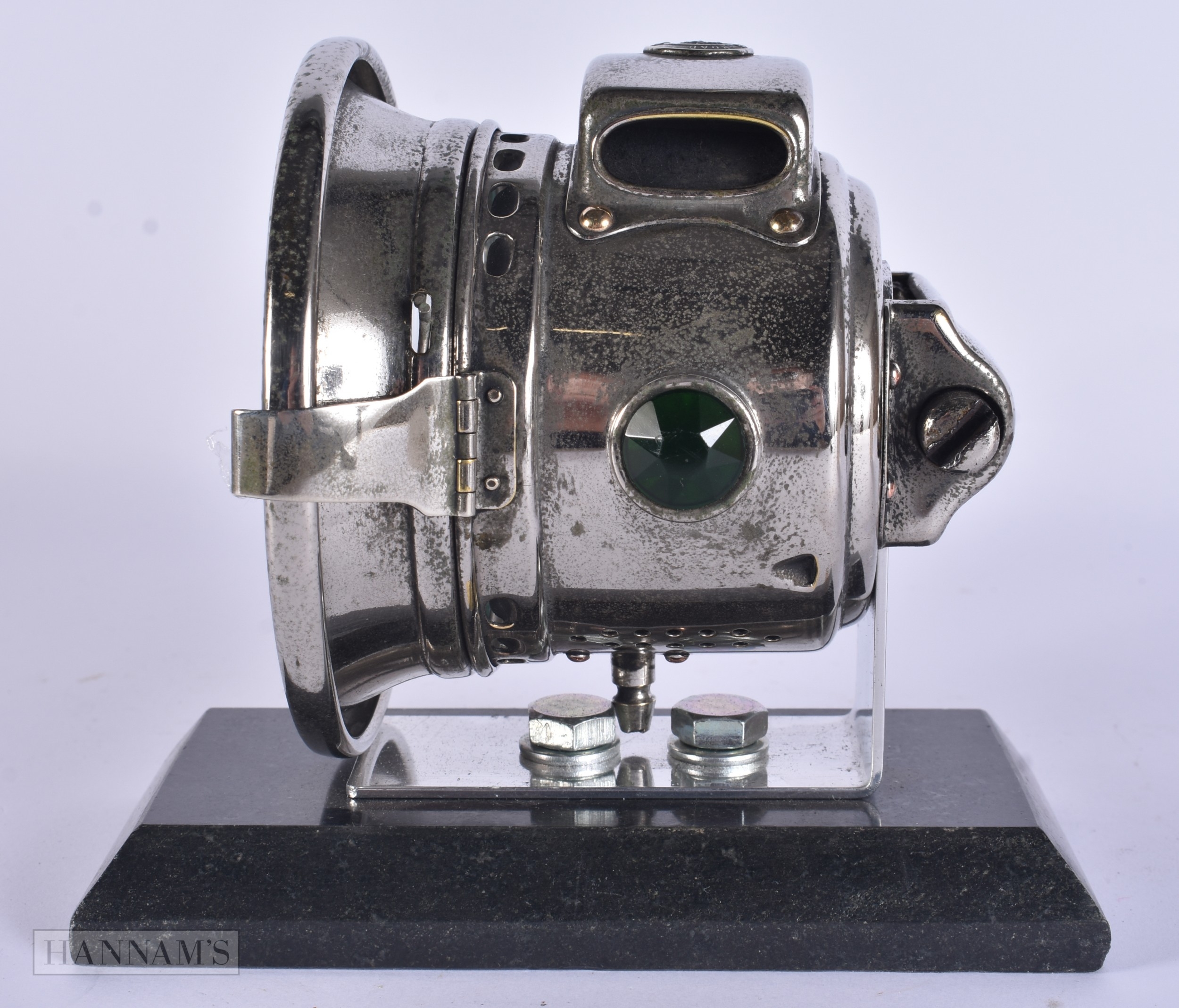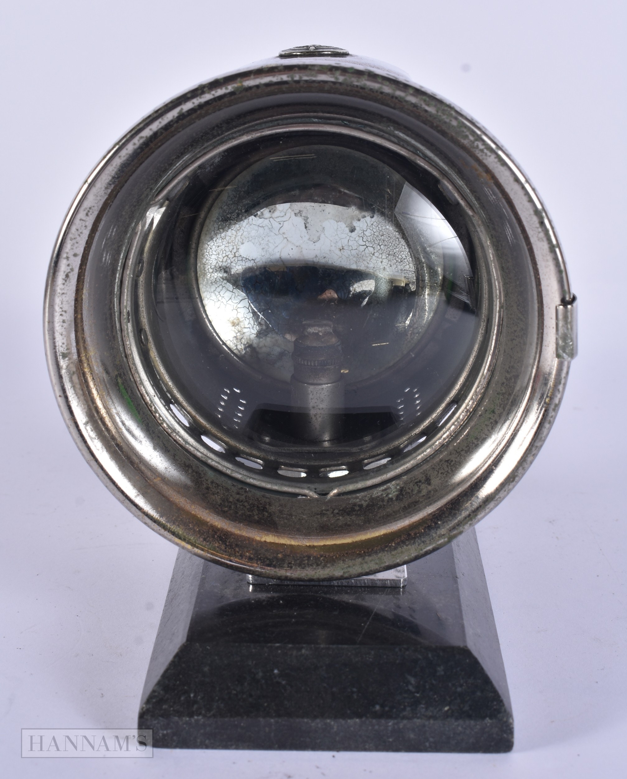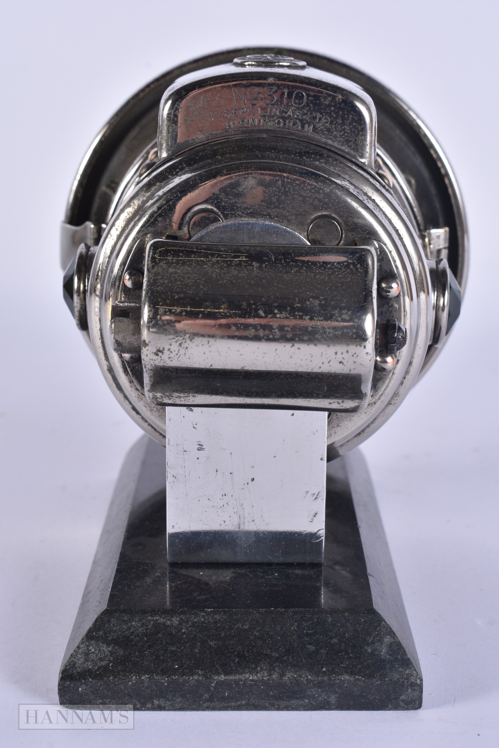 AN ART DECO ACETYLENE BICYCLE OR EARLY MOTORBIKE FRONT LAMP NO 310 by Joseph Lucas. 14 cm x 14 cm.