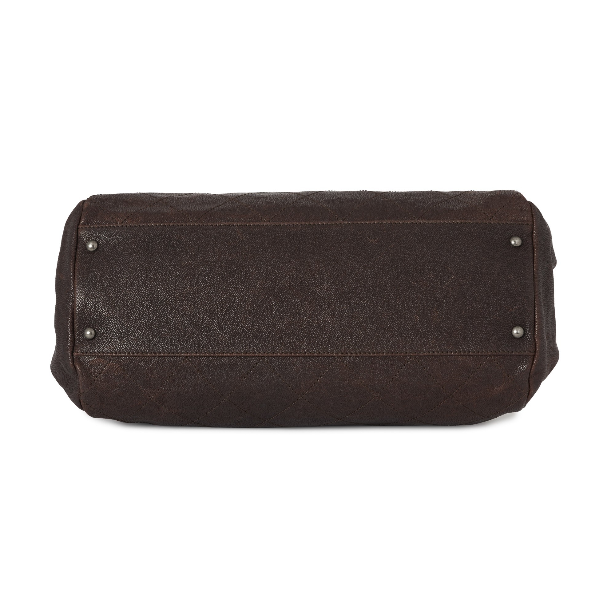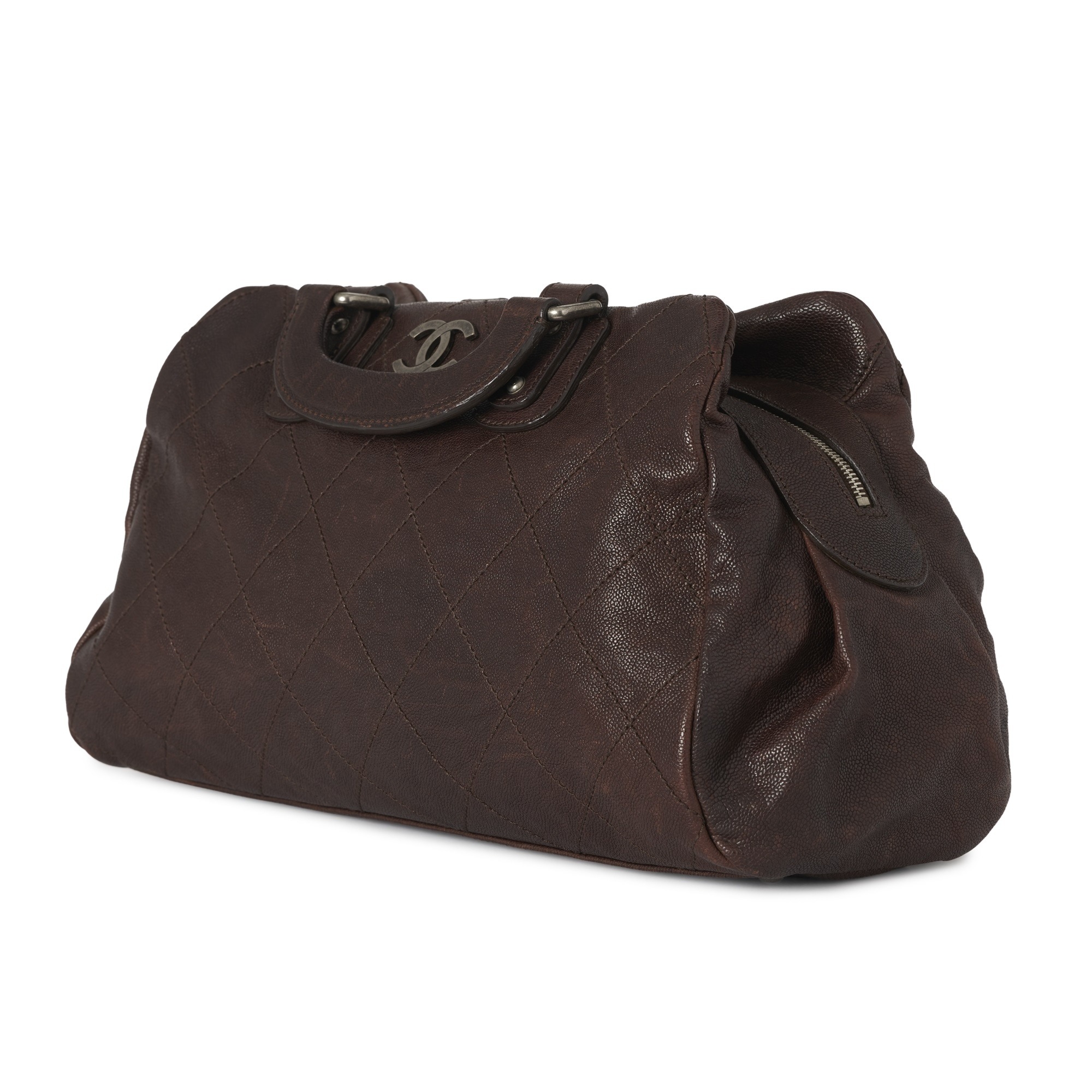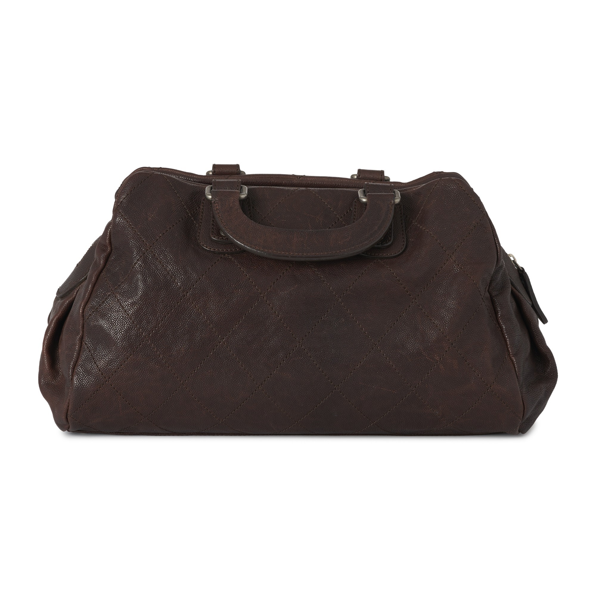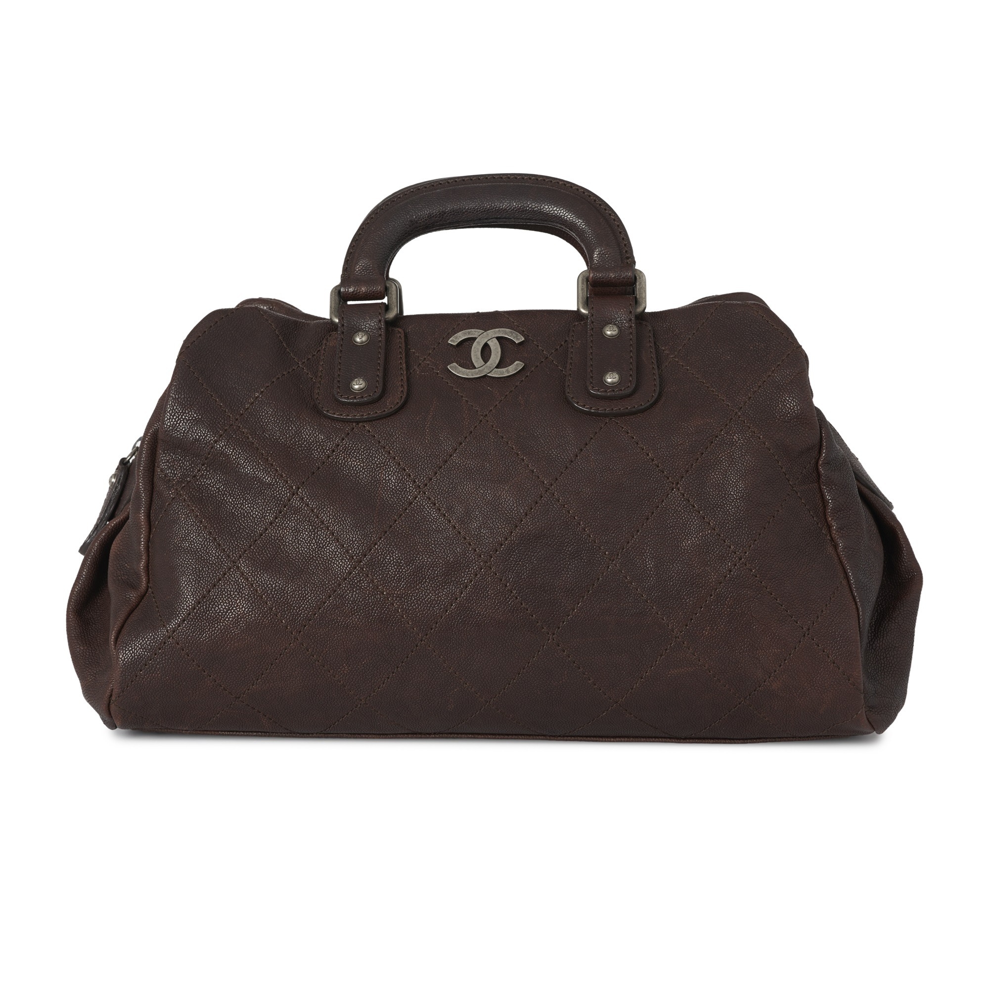 Chanel, a Wild Stitch Outdoor Ligne Boston bag, in brown caviar leather, aged silver-tone hardware, reinforced top handles, zip fastening and black canvas lining, measuring 16 by 22 by 40cm, with maker's dust bag