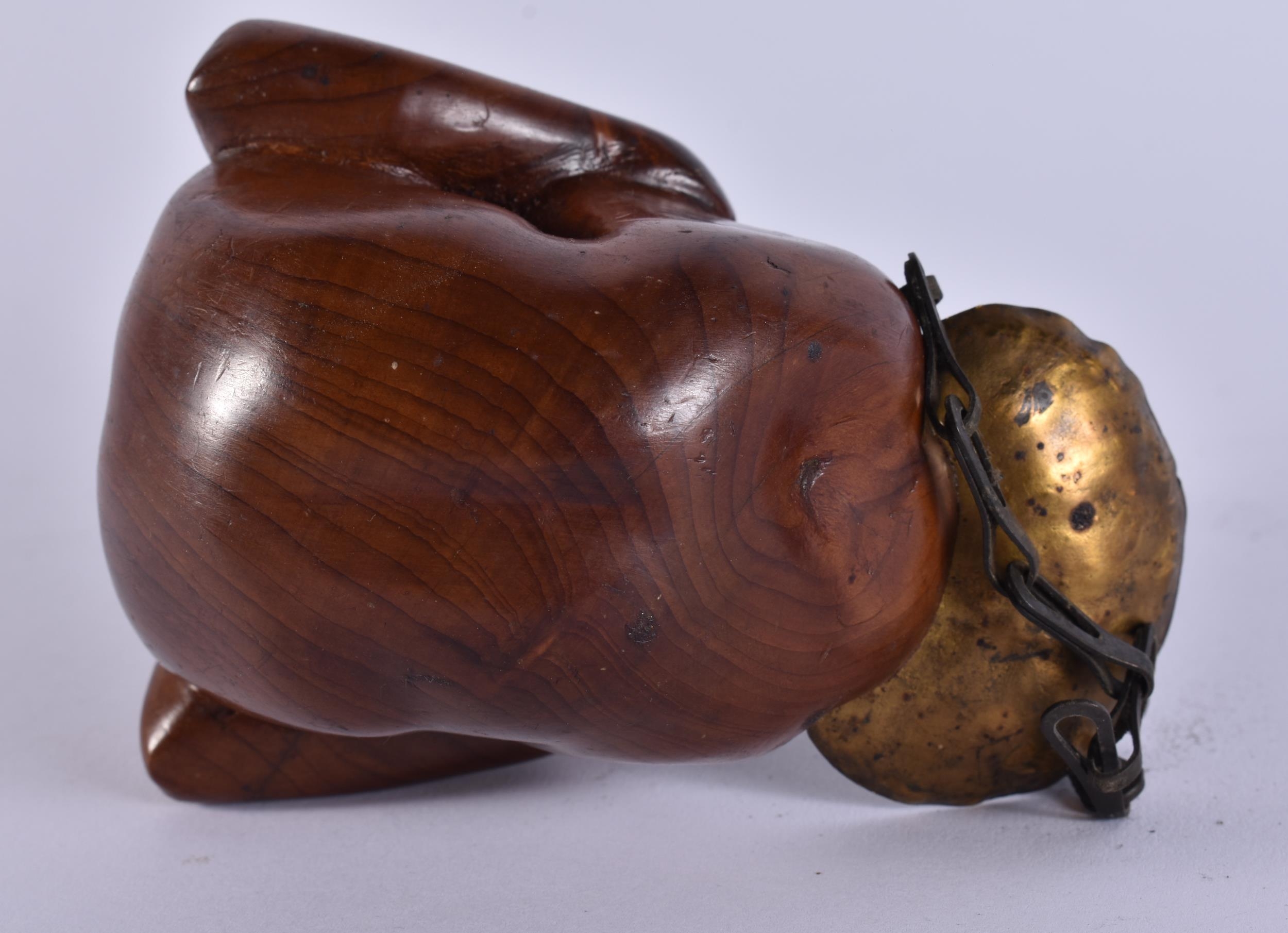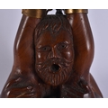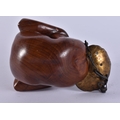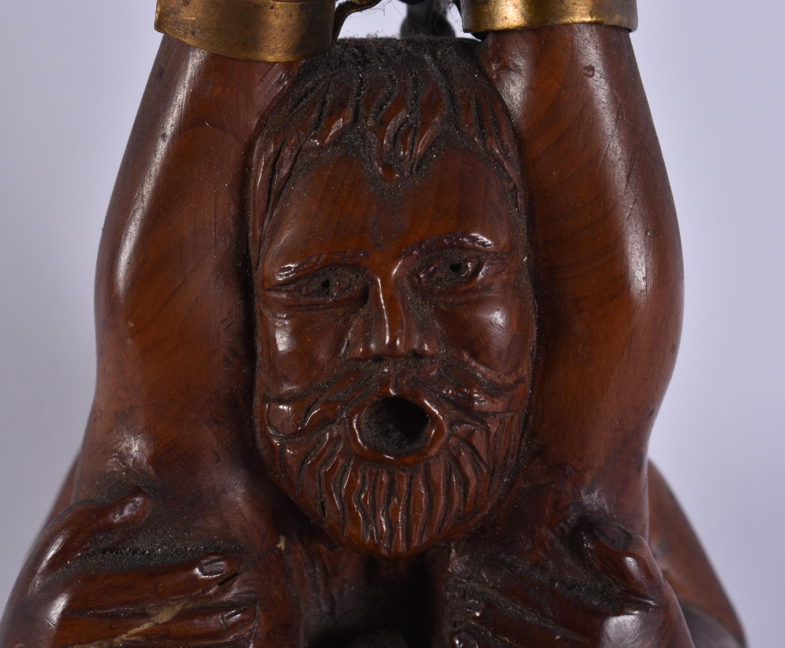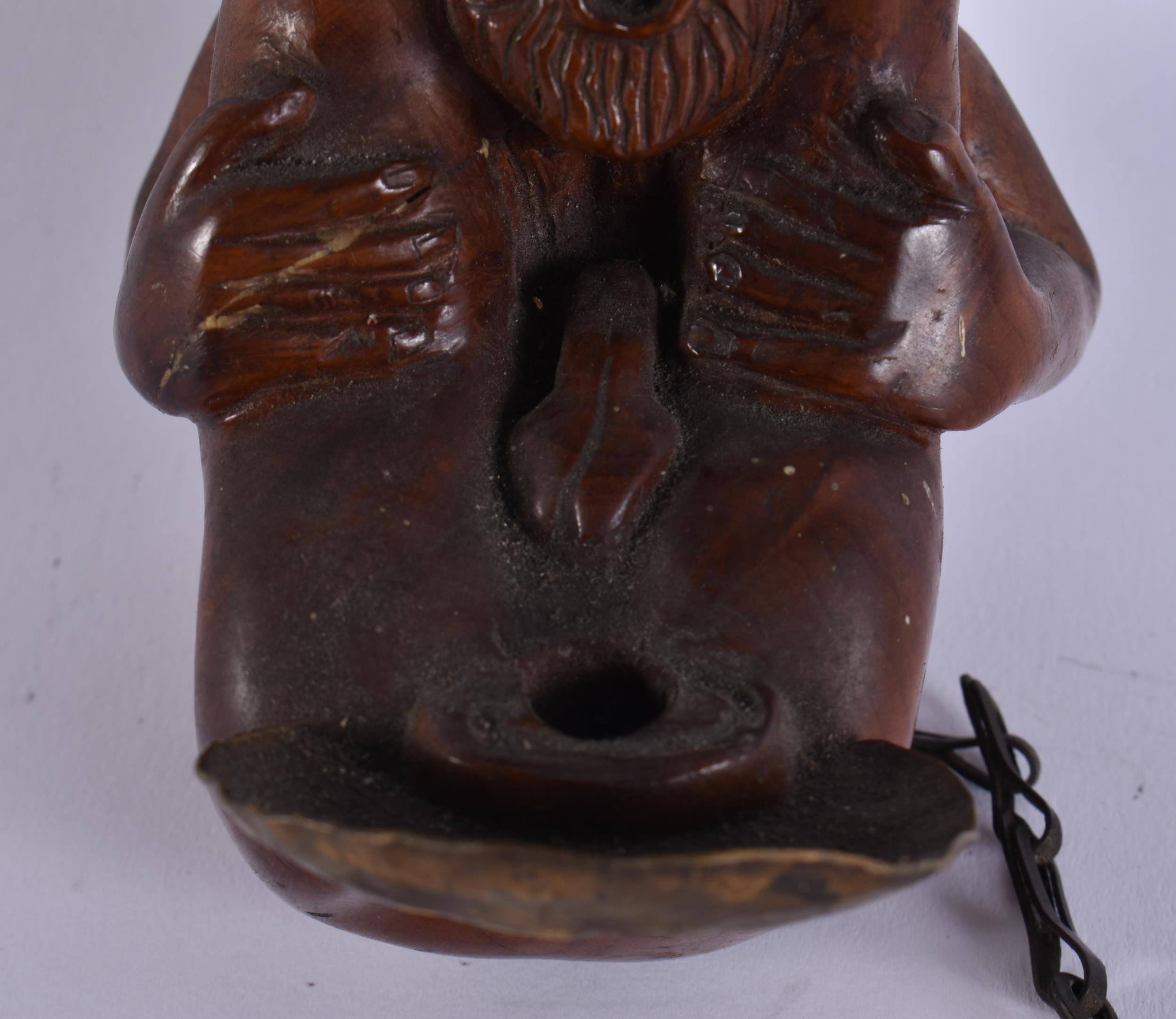 A RARE EARLY 20TH CENTURY EROTIC CARVED WOOD TREEN HANGING OIL BURNER. 15 cm x 8 cm.
