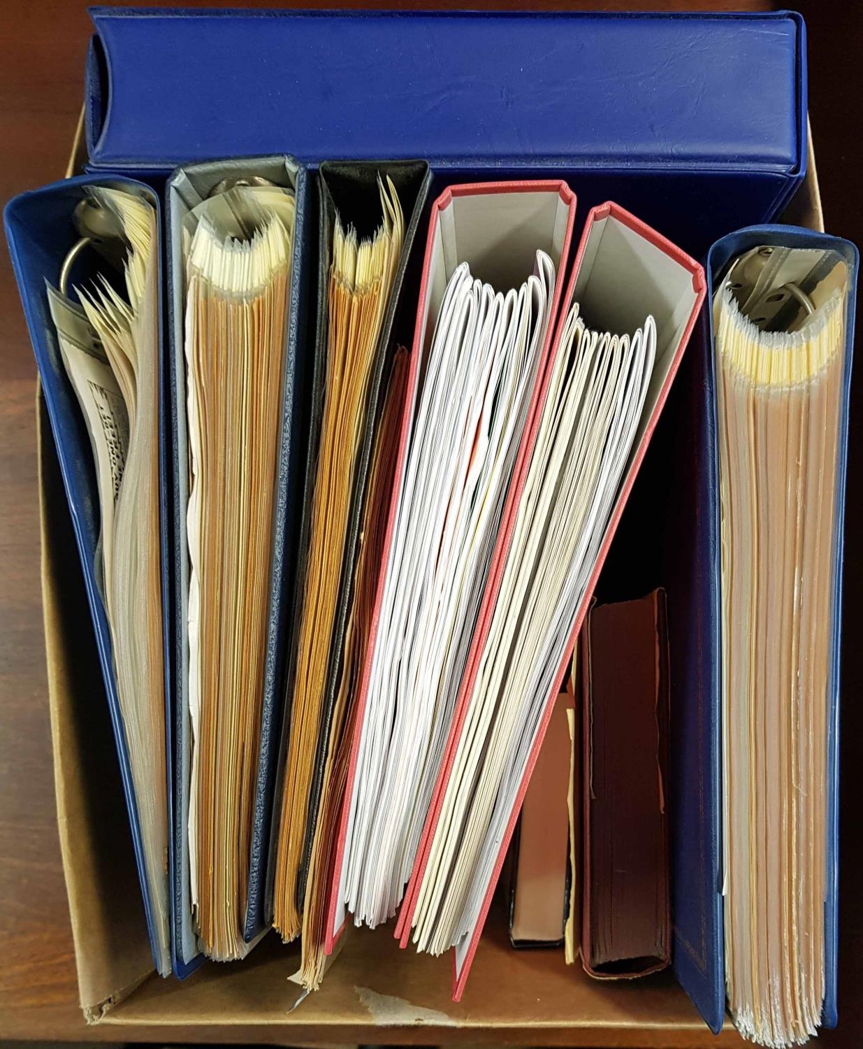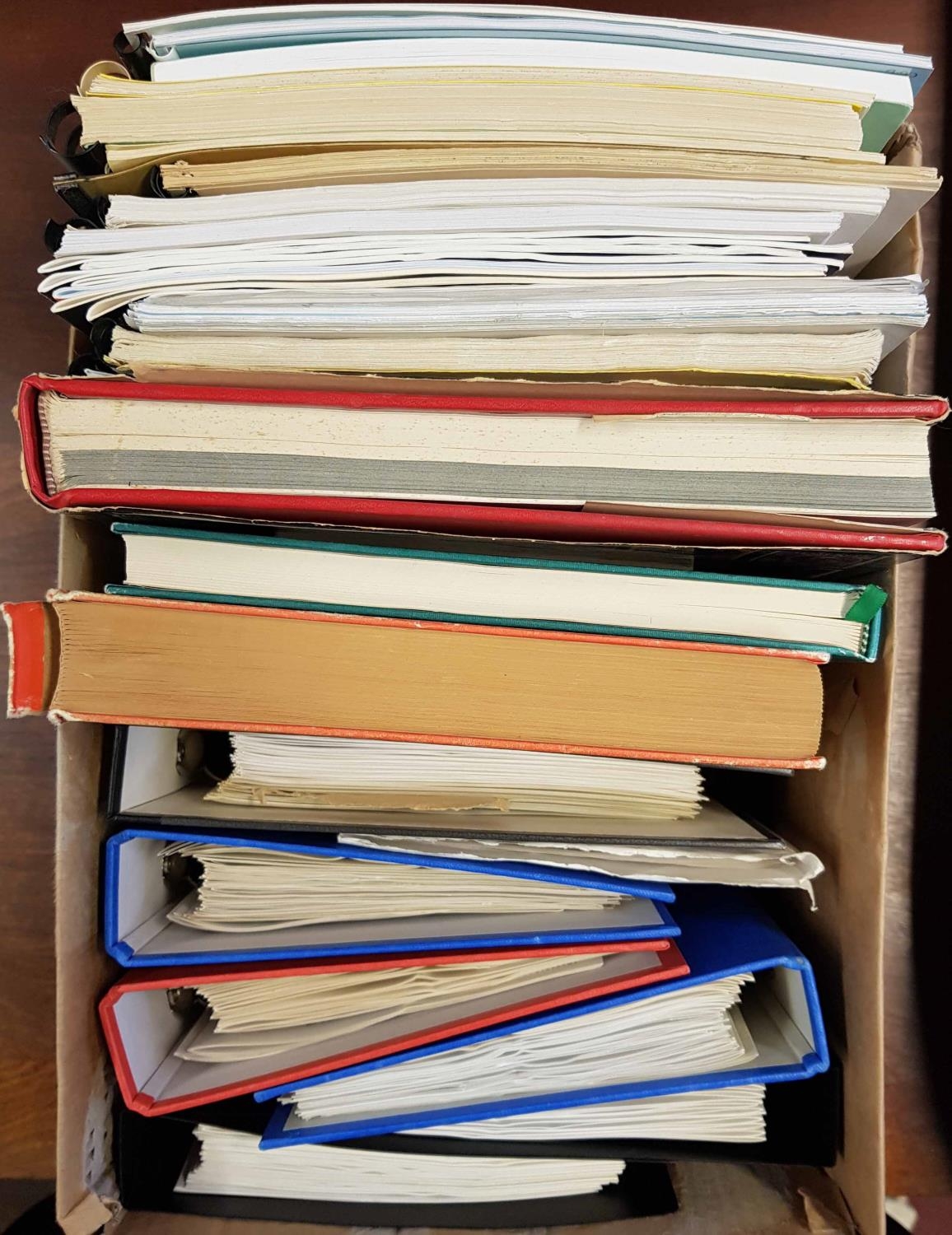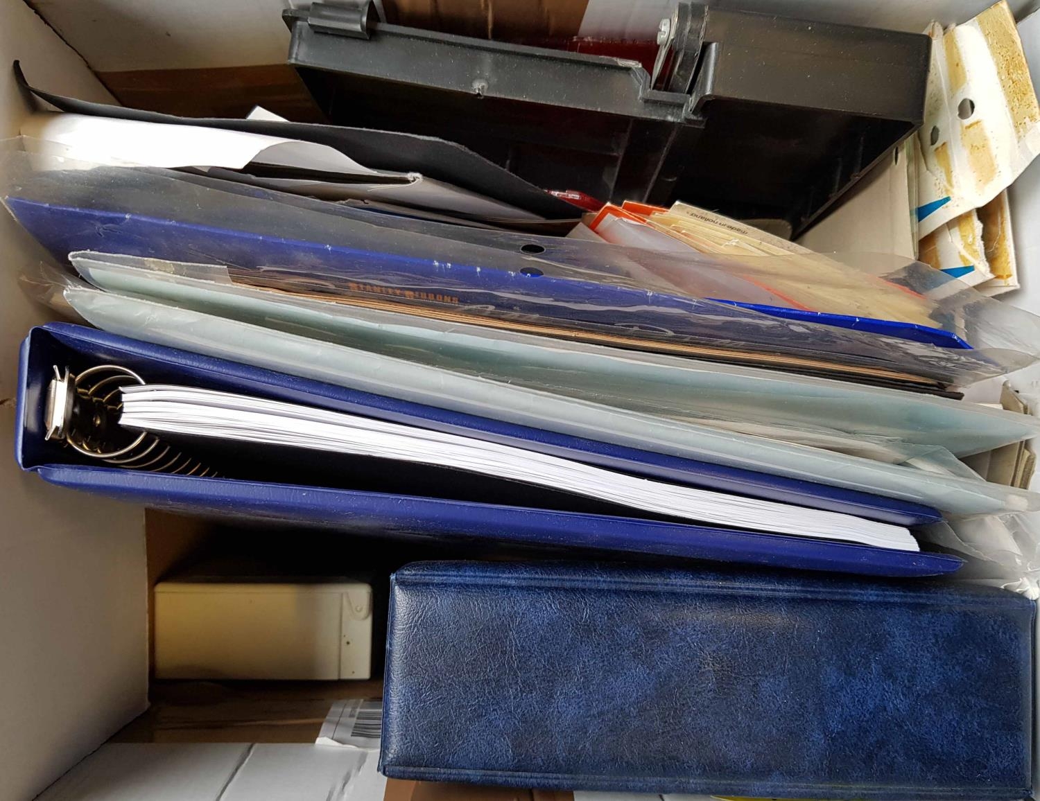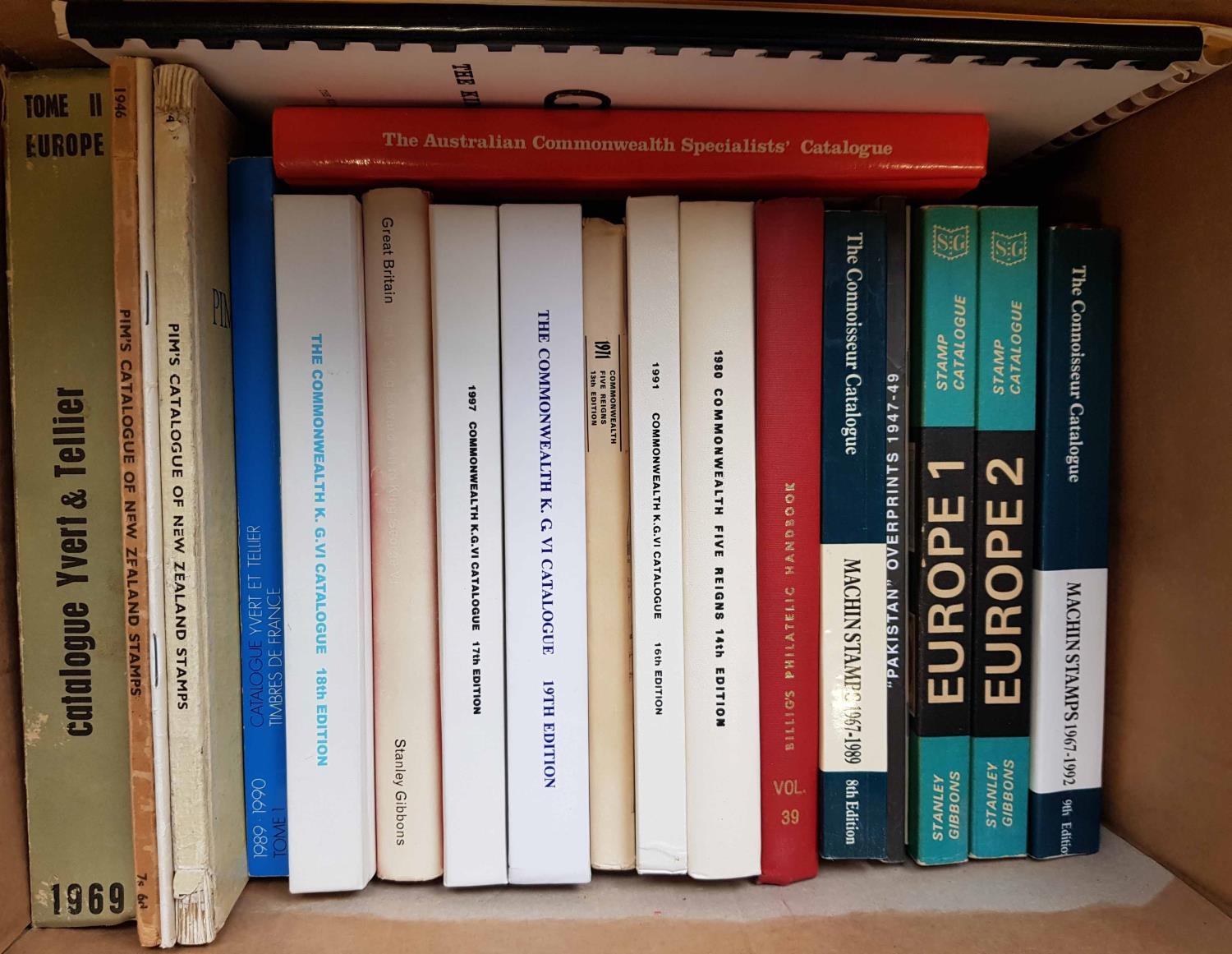 BRITISH COMMONWEALTH: Range in 7 cartons inc. Bermuda King George VI High Values (1980), Stamps of the Union of South Africa (1986), Unissued Stamps of King George VI (2001) Union 3s Booklets (1948) India Used in Burma (1950) The Travancore Anchal (1973) A Study of the Hong Kong Definitive Adhesives of King George VI (1992) A Study of the King George VI Stamps of St Kitts-Nevis 1938-50 (1997), range of Campbell-Patterson Newsletters (New Zealand) and others, plus range of accessories, mounts etc.