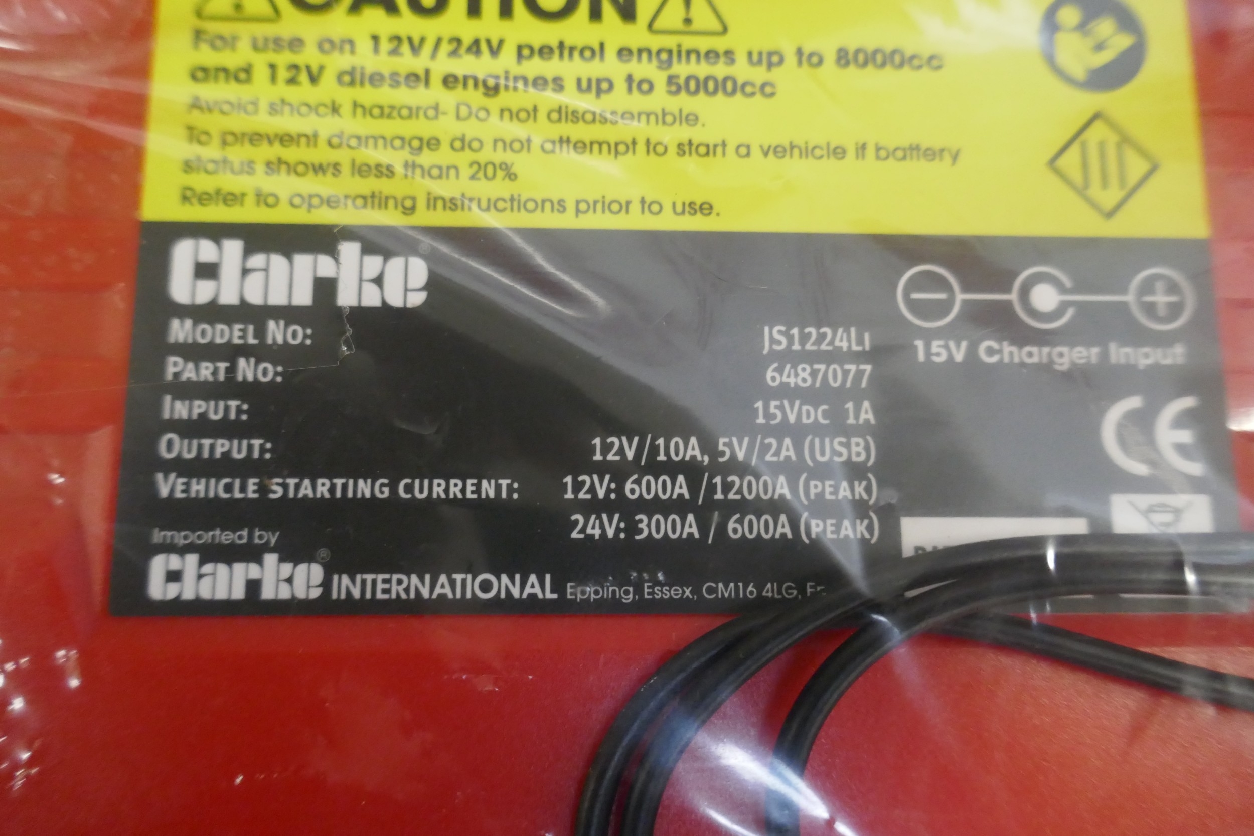 Two Clarke 12/24Li multi function jump starters *This lot is SOLD AS SCRAP ** This lot is subject to VAT