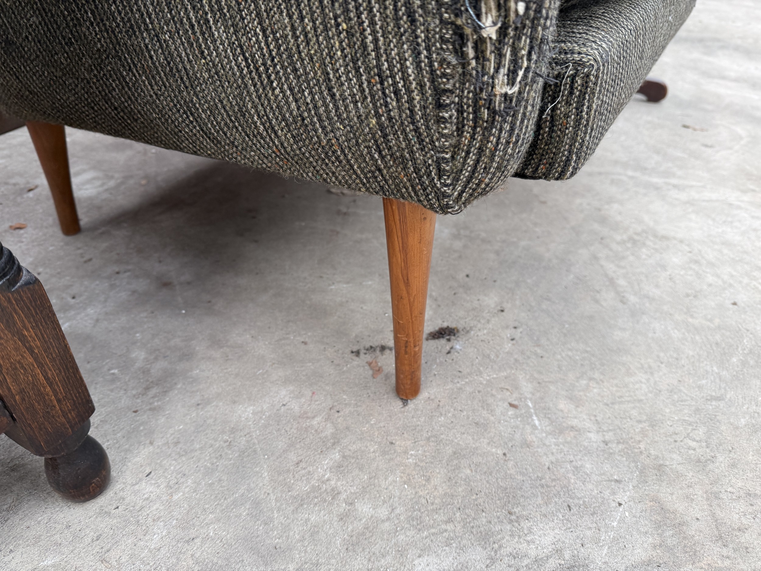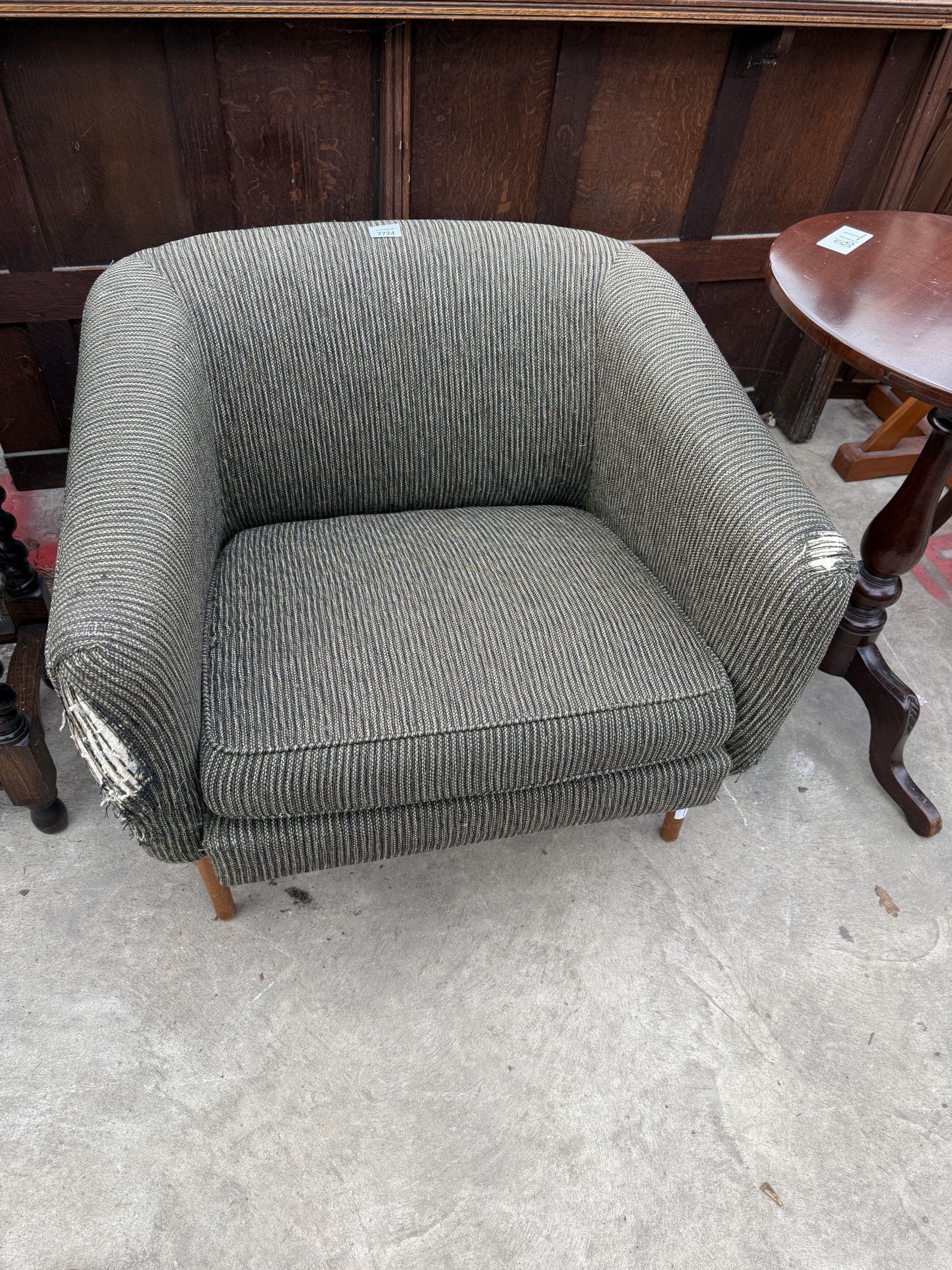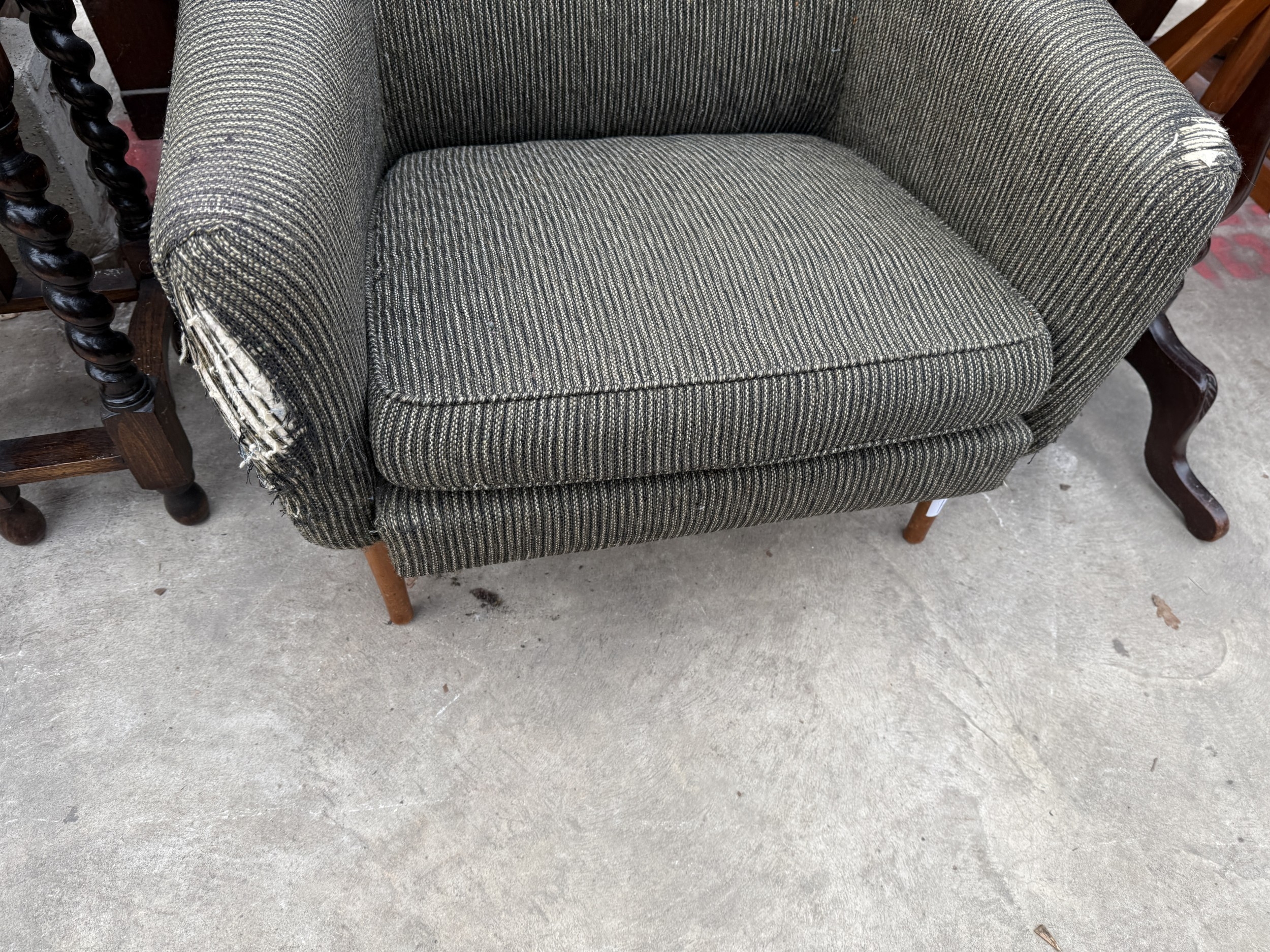 A RETRO CLUB CHAIR ON TAPERING LEGS