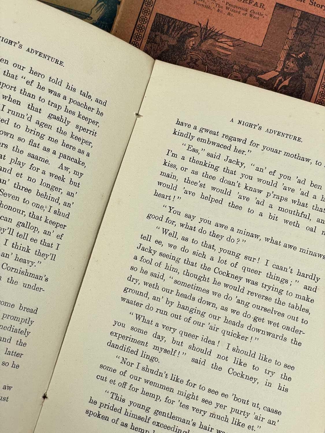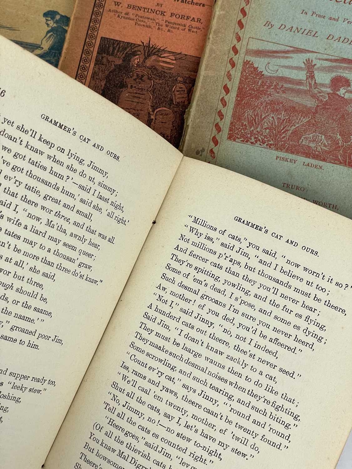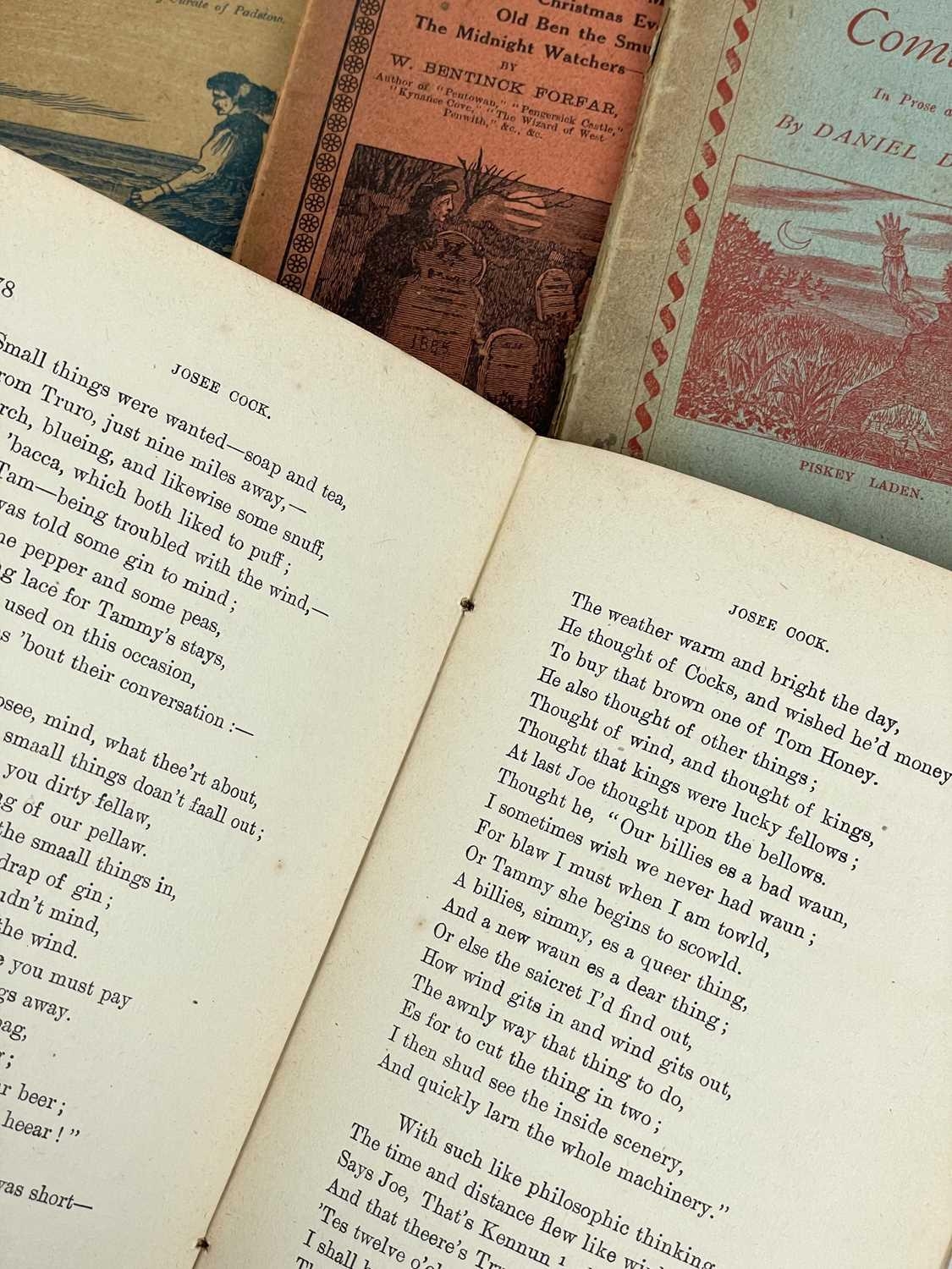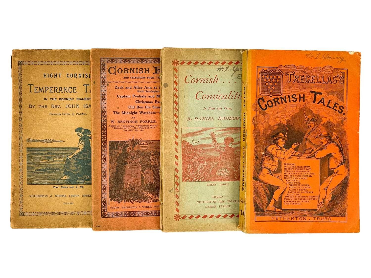 Netherton & Worth (publishers) Four works in the Cornish dialect. I. T. Tregellas. 'Cornish Tales, In Prose and Verse,' original pictorial thin card wraps, ink owner signature to title page, a couple of nibbles but vg, pp.192, some very slight spotting to edge of textblock, three pages of advertisements to rear, Netherton & Worth, Truro, [c.1865]; The Rev John Isabell. 'Eight Cornish Temperance Tales, in the Cornish Dialect,' original printed card wraps vg, very slight spotting and toning to edges of leaves, advertisements, pp.64, vg, Netherton & Worth, Truro, [c.1883]; W. Bentinck Forfar. 'Cornish Poems and Selections from Pentowan,' original printed card wraps with some light staining, light spotting throughout but generally good to very good, pp.78, advertisements, Netherton & Worth, Truro, n.d; Daniel Daddow. 'Cornish Comicalities,' original printed card wraps, ink signature to front wrap, pp.84, advertisements, Netherton & Worth, Truro, n.d. (4)