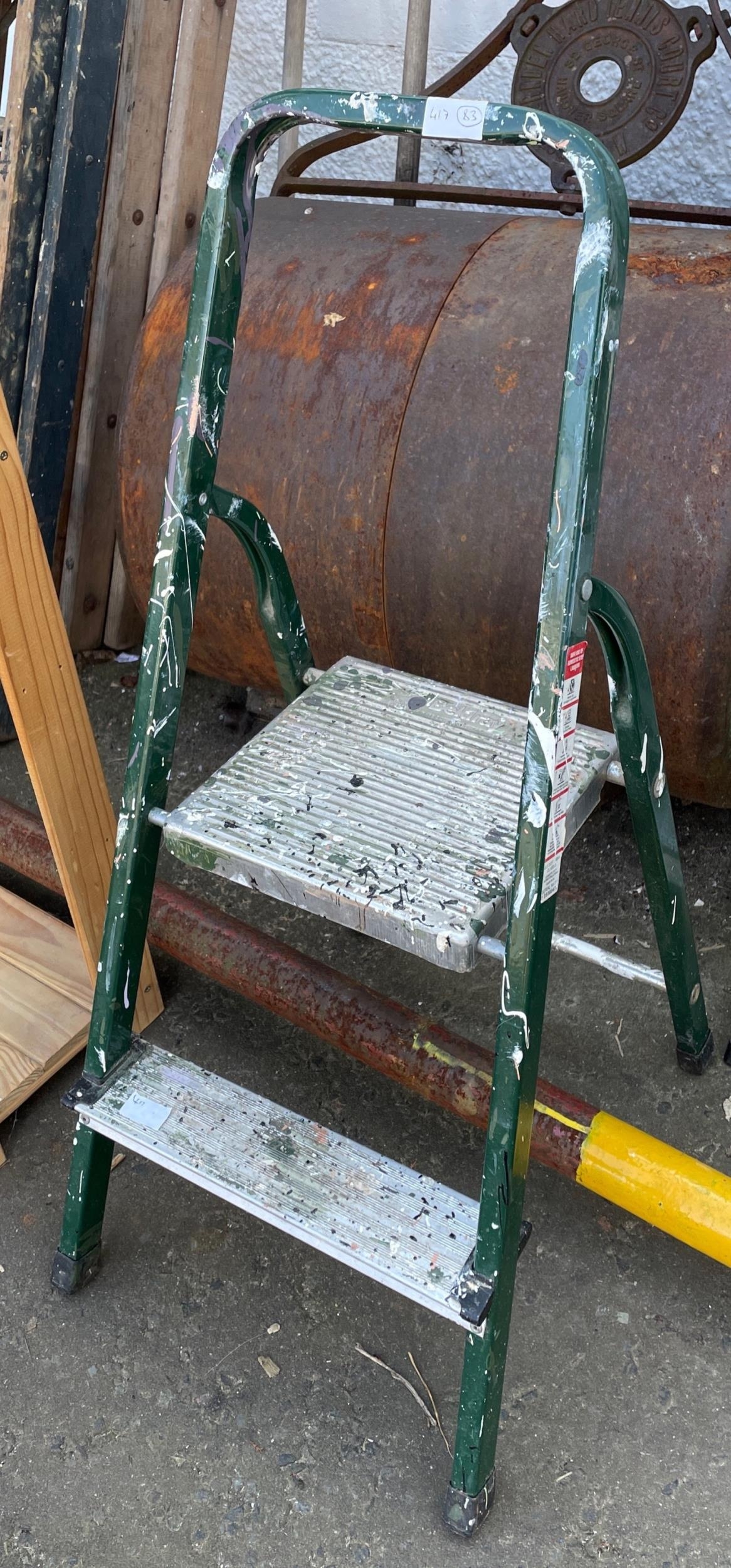 A small ALUMINIUM ‘A' frame two step household ladders with handy ‘ ‘ hold on to' handle!