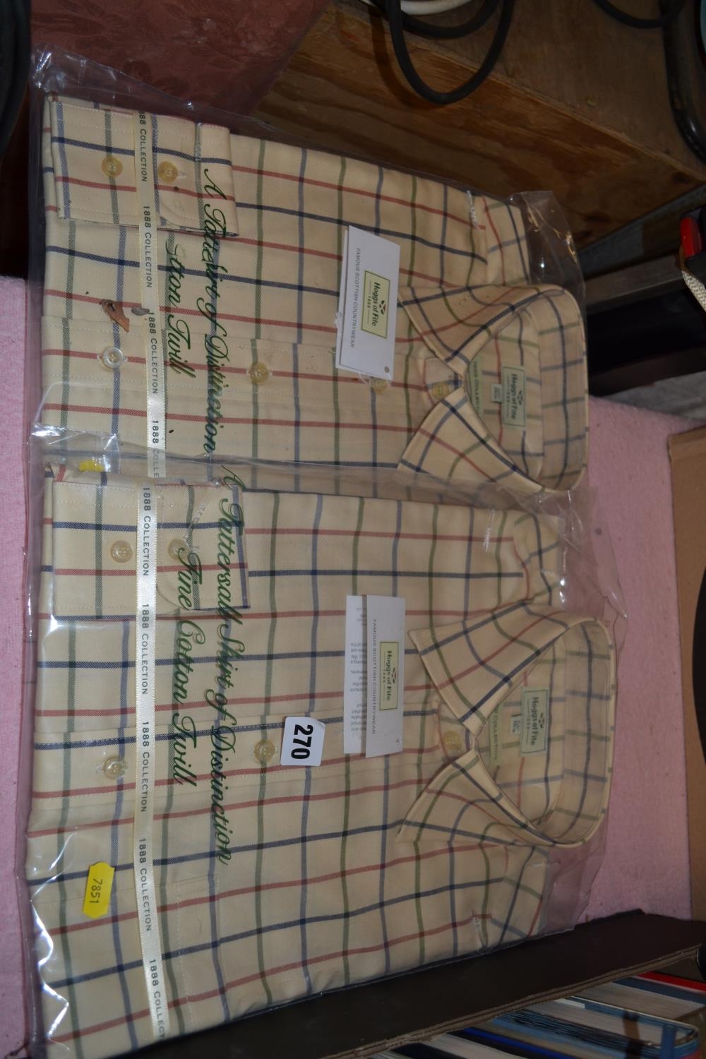 TWO HOGGS OF FIFE COTTON TWILL MENS SHIRTS 15 1/2" COLLAR