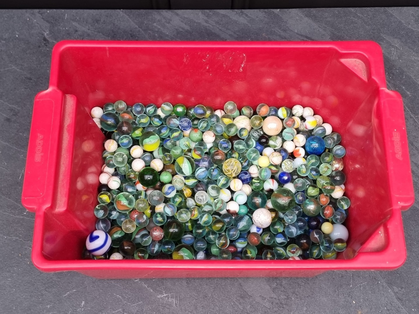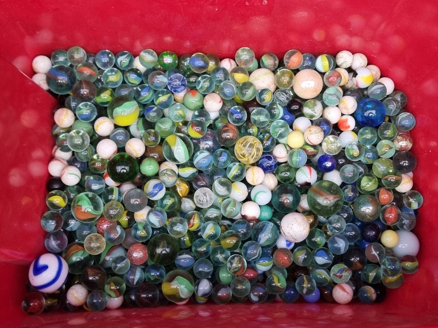 A collection of old glass marbles.