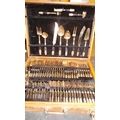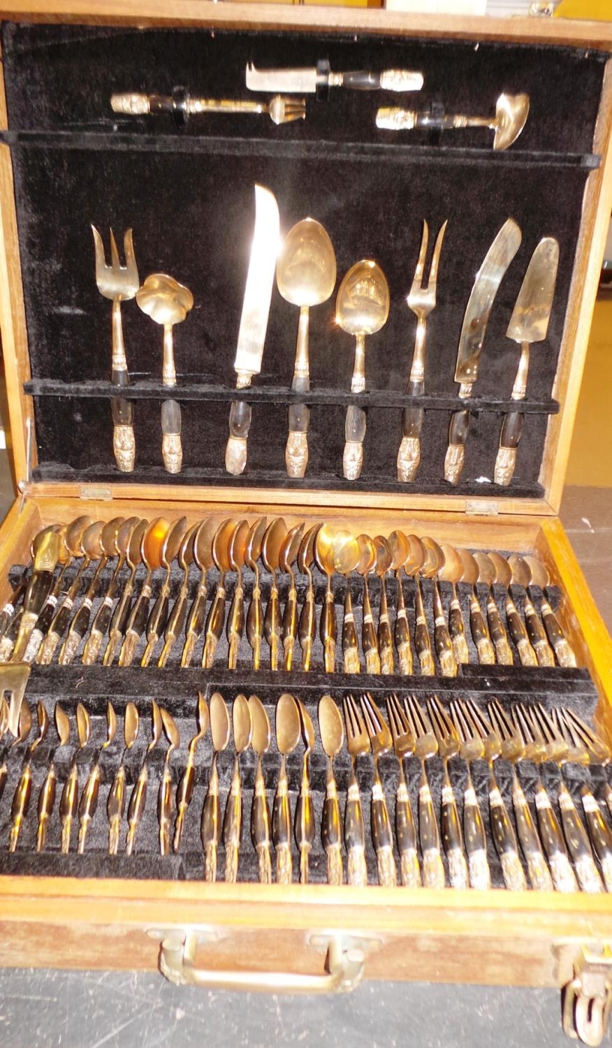 BOXED 144 PIECE EBONY AND BRONZE BUDDHIST CUTLERY SET
