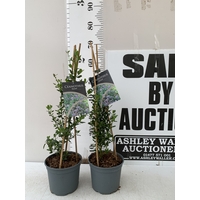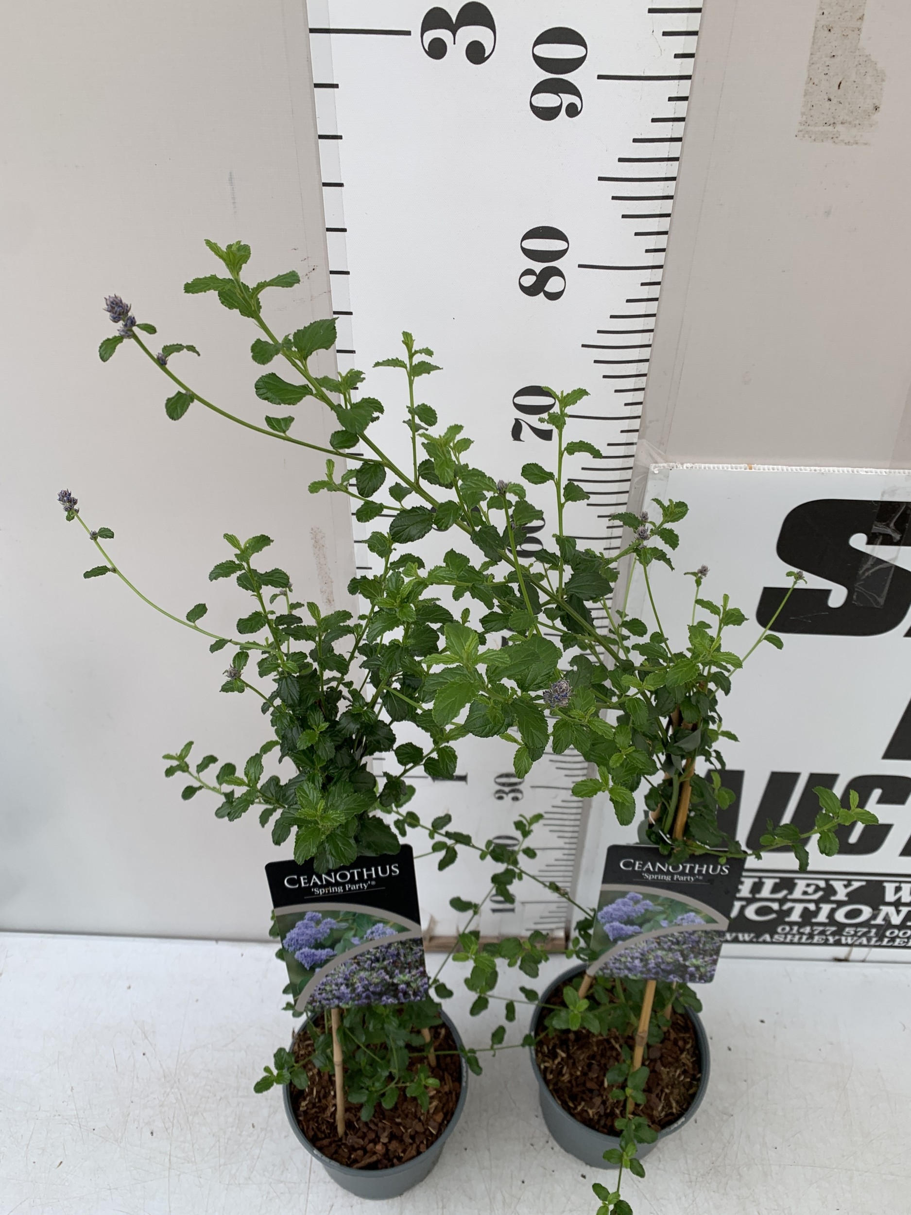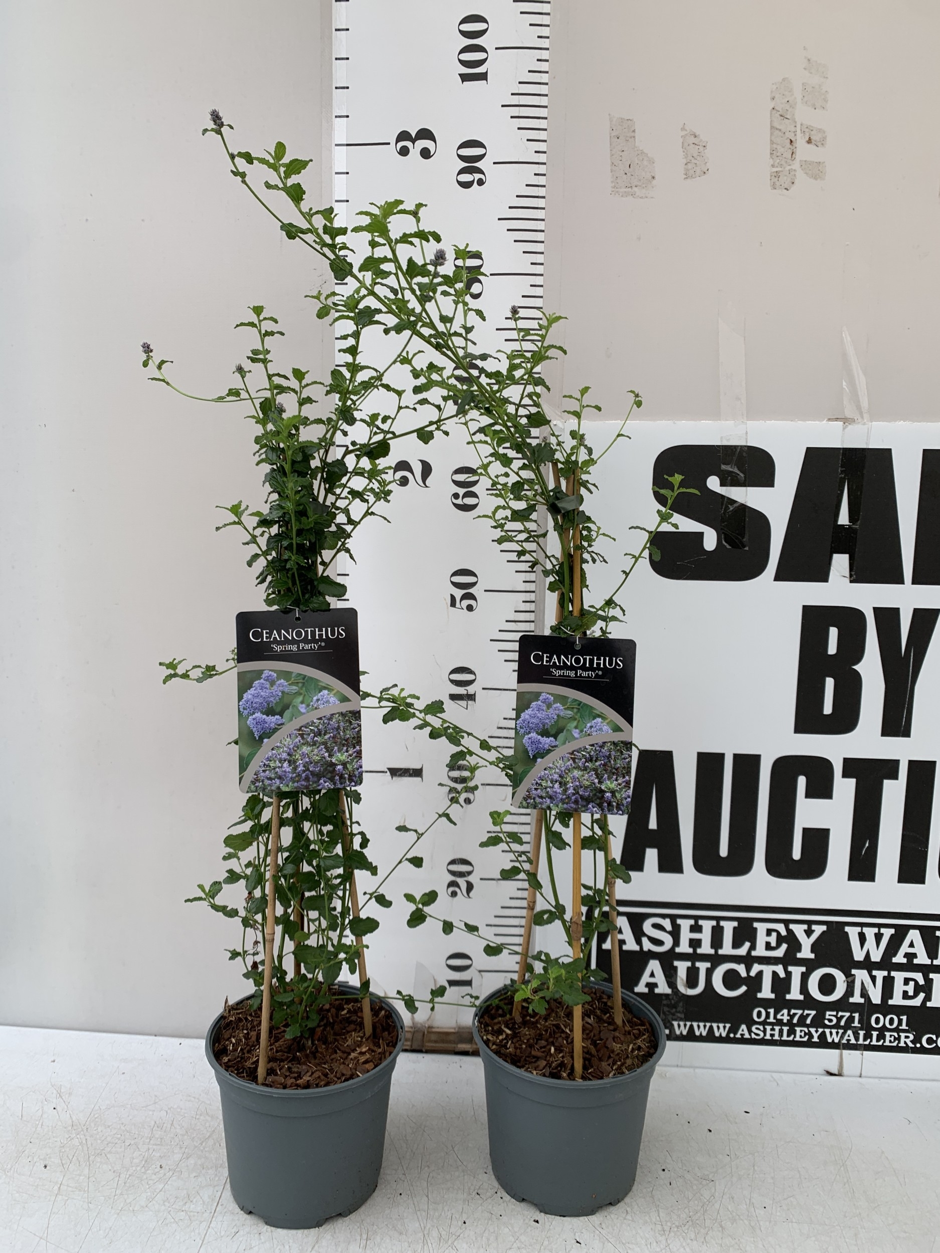TWO CEANOTHUS-'SPRING PARTY' IN 2 LTR POTS ON A PYRAMID FRAME. APPROX 90CM TALL, TO BE SOLD FOR THE TWO