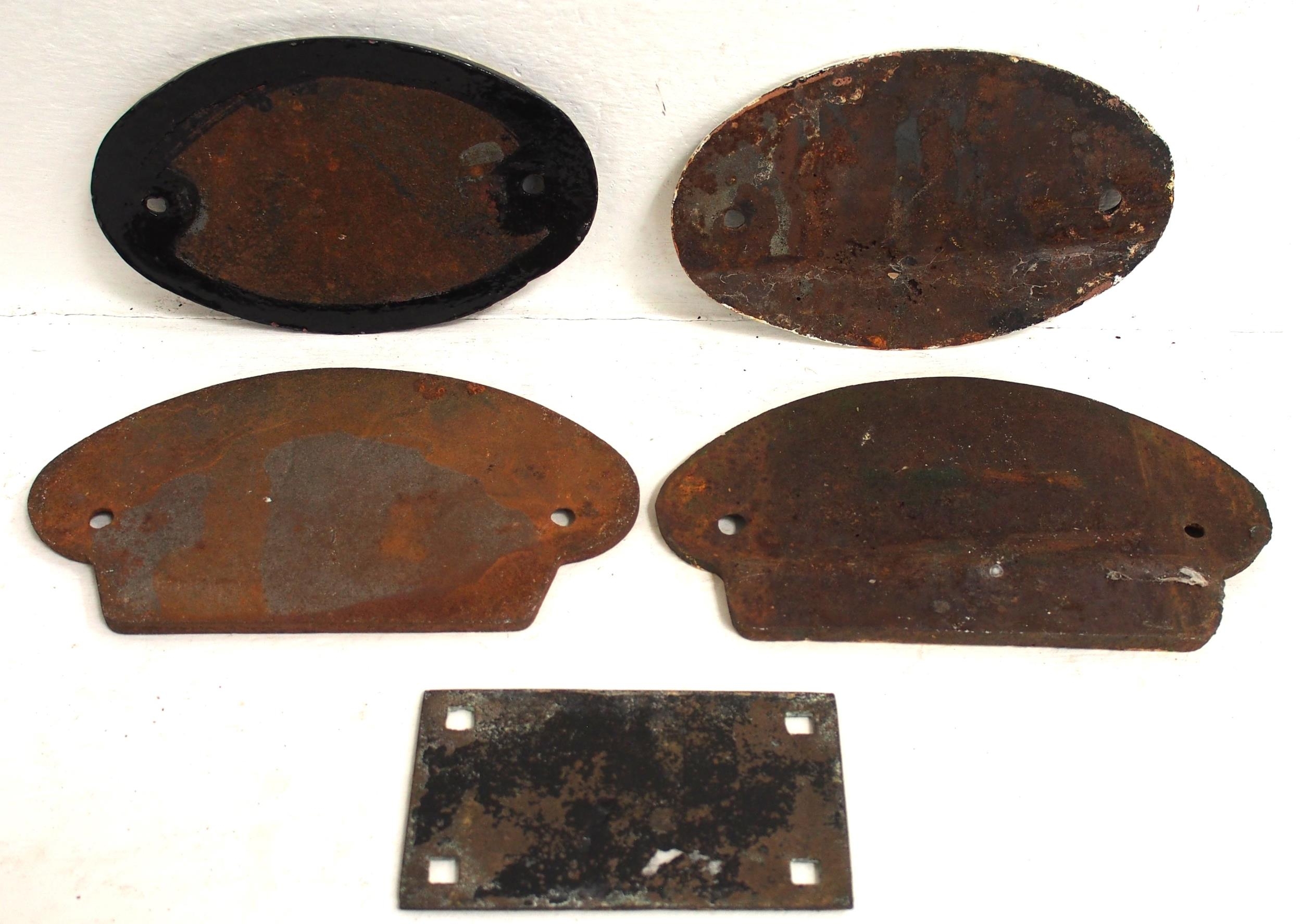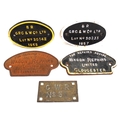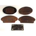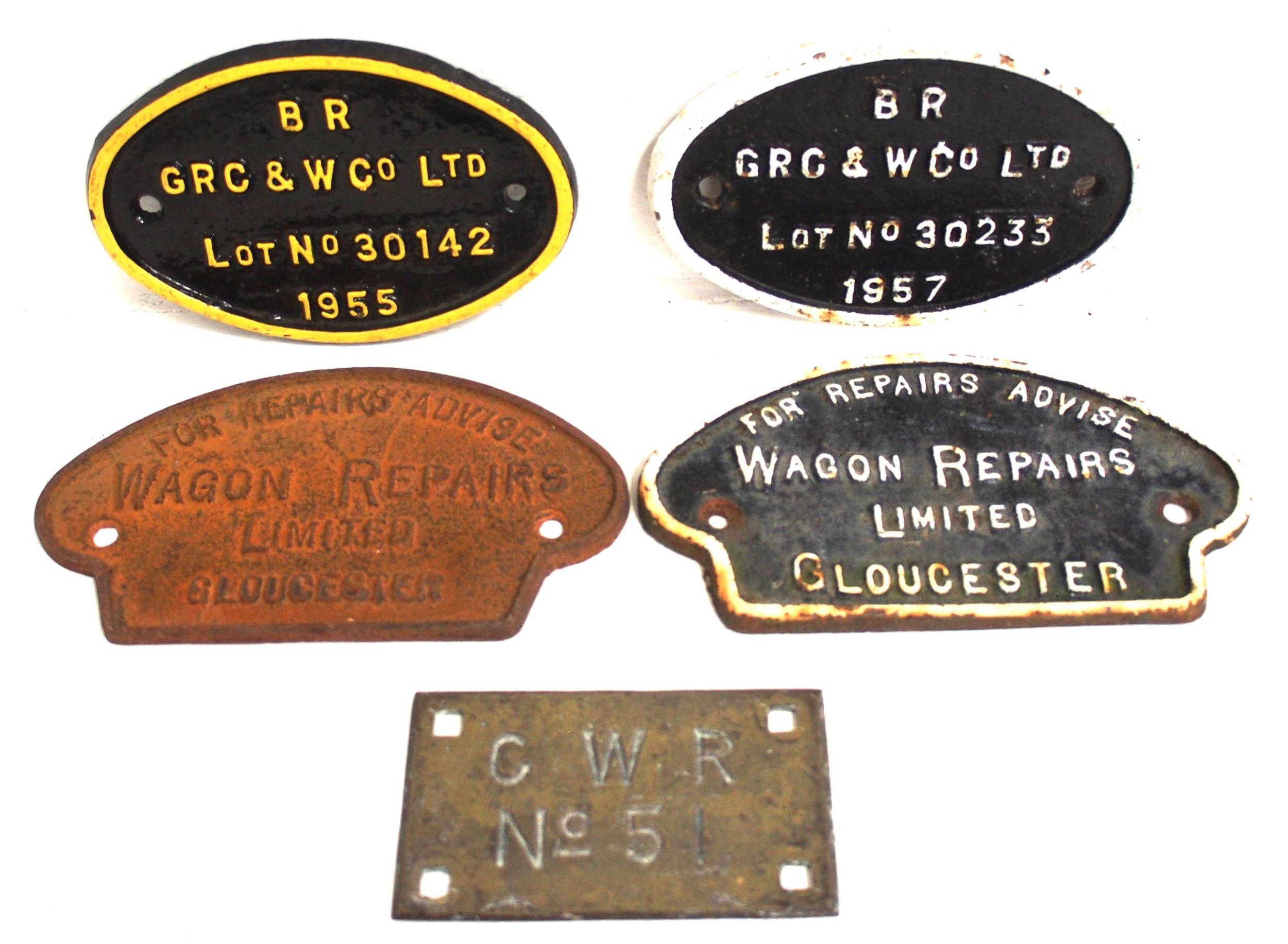 Gloucester C&W wagonplates - Lot 30142 1955, Lot 30233 1957, two repairs plates & a GWR brass safe plate No 51. (5) (C3X) (Dispatch by Mailboxes/Collect from Banbury Depot)