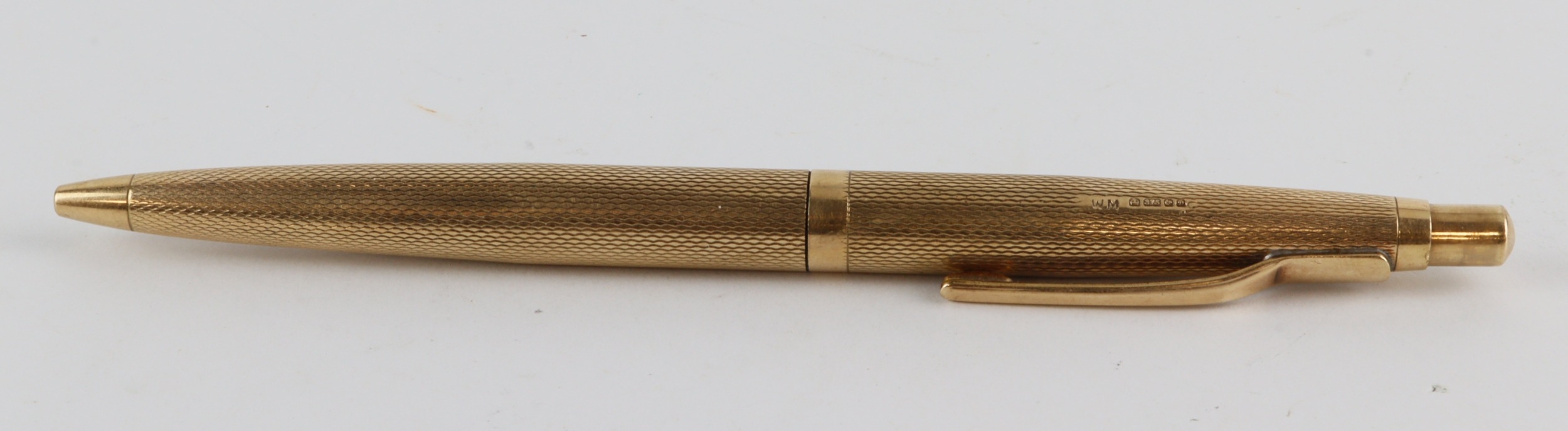 9ct Gold ballpoint pen, hallmarked 'W.M, Birmingham 1978' (William Manton), total weight 21g approx.