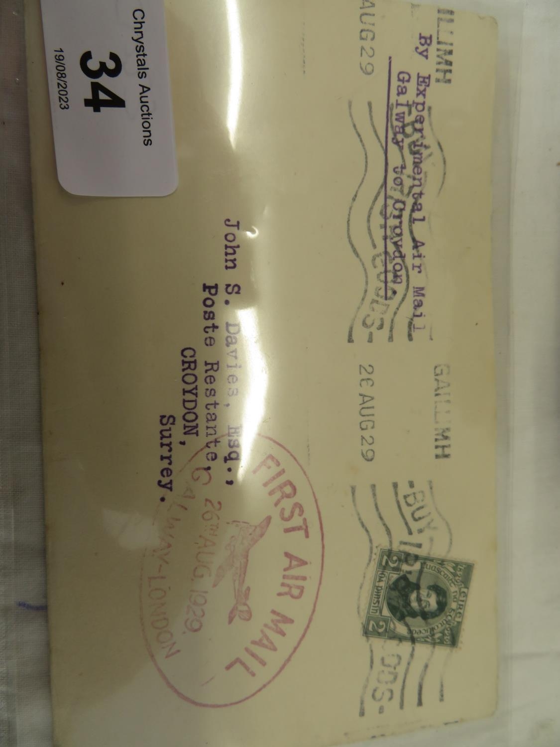 First airmail dated 26th August 1929 from Galway to Croydon