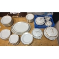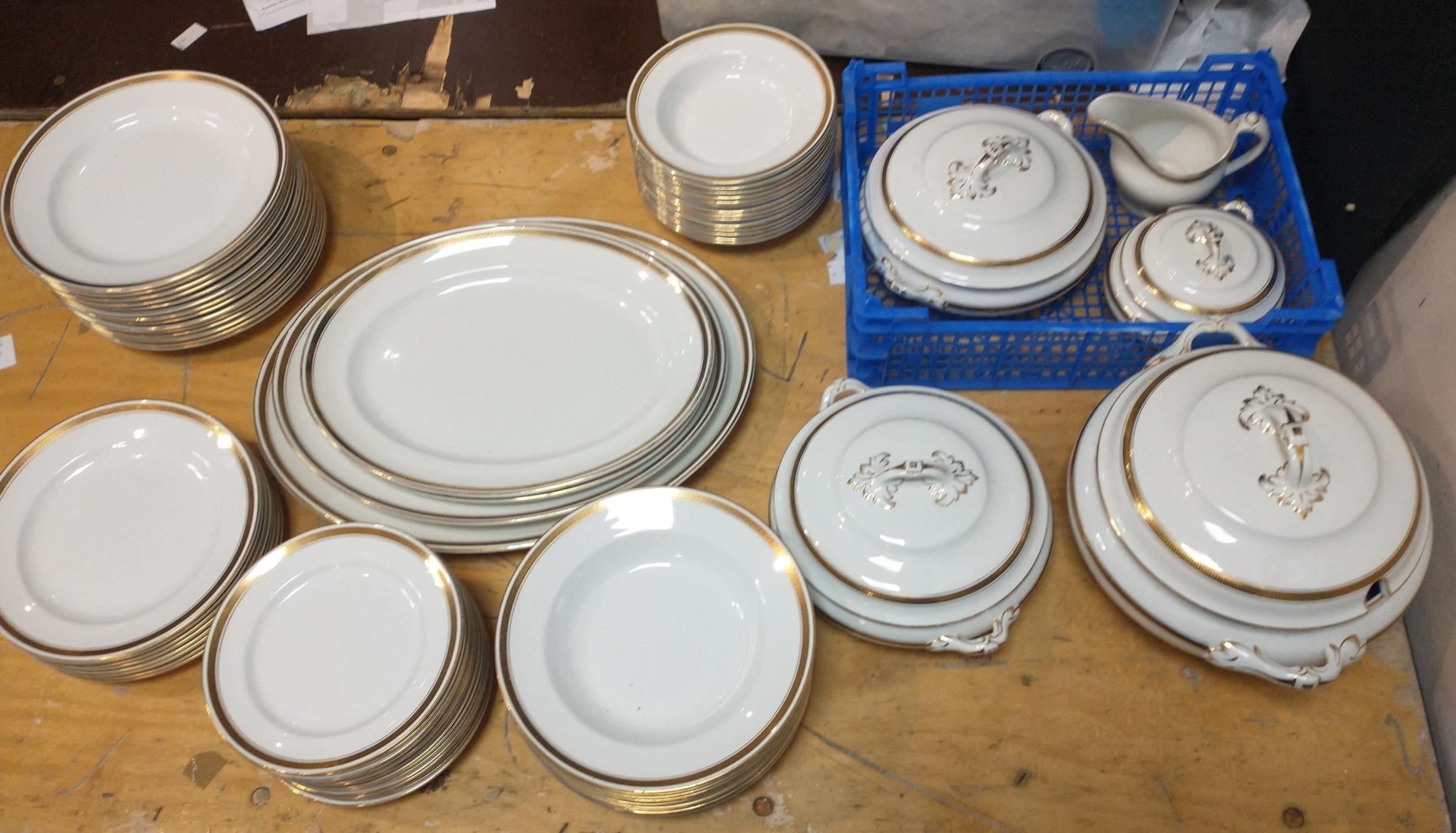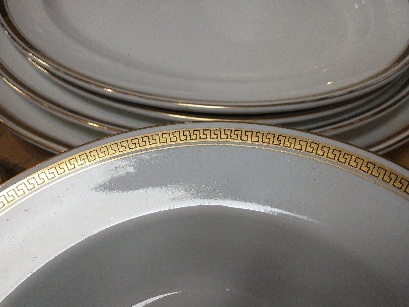 A large Greek Key design dinner service with ashets, soup tureens, gravy boat, dinner plates, side plates, dessert bowls etc