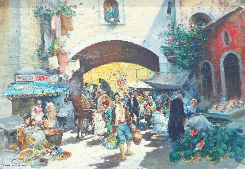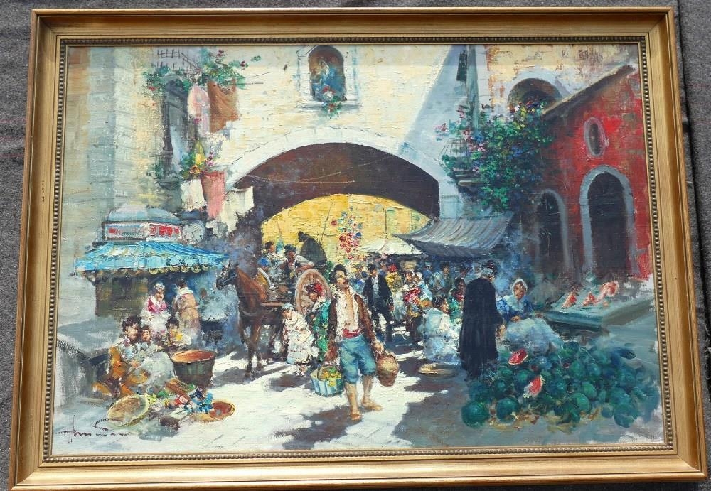 Prof. Amadeo Sica (1900-1979), Naples market scene, oil on canvas, signed lower left, 69cm x 99cm, housed in gilt frame †