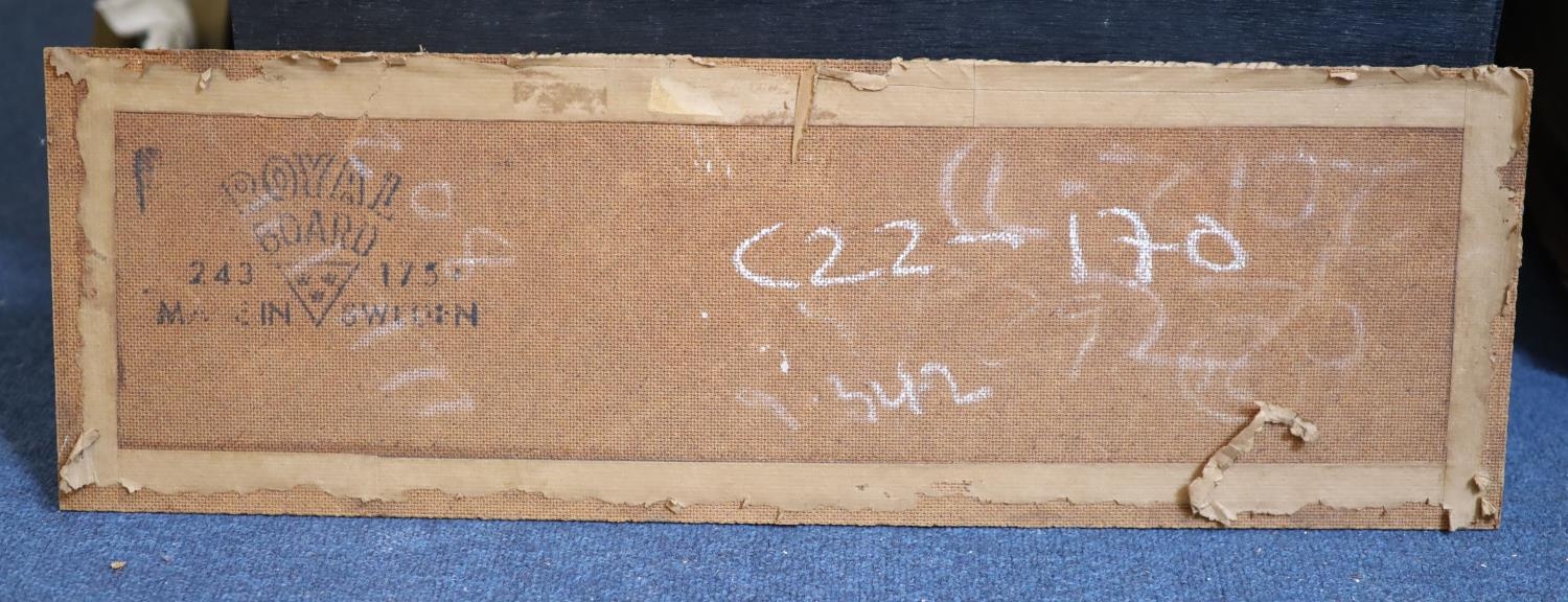 Oil on hardboard in slightly neglected condition, with light surface dirt and scuff marks, painted in thinned down oil and signed lower right,not framed