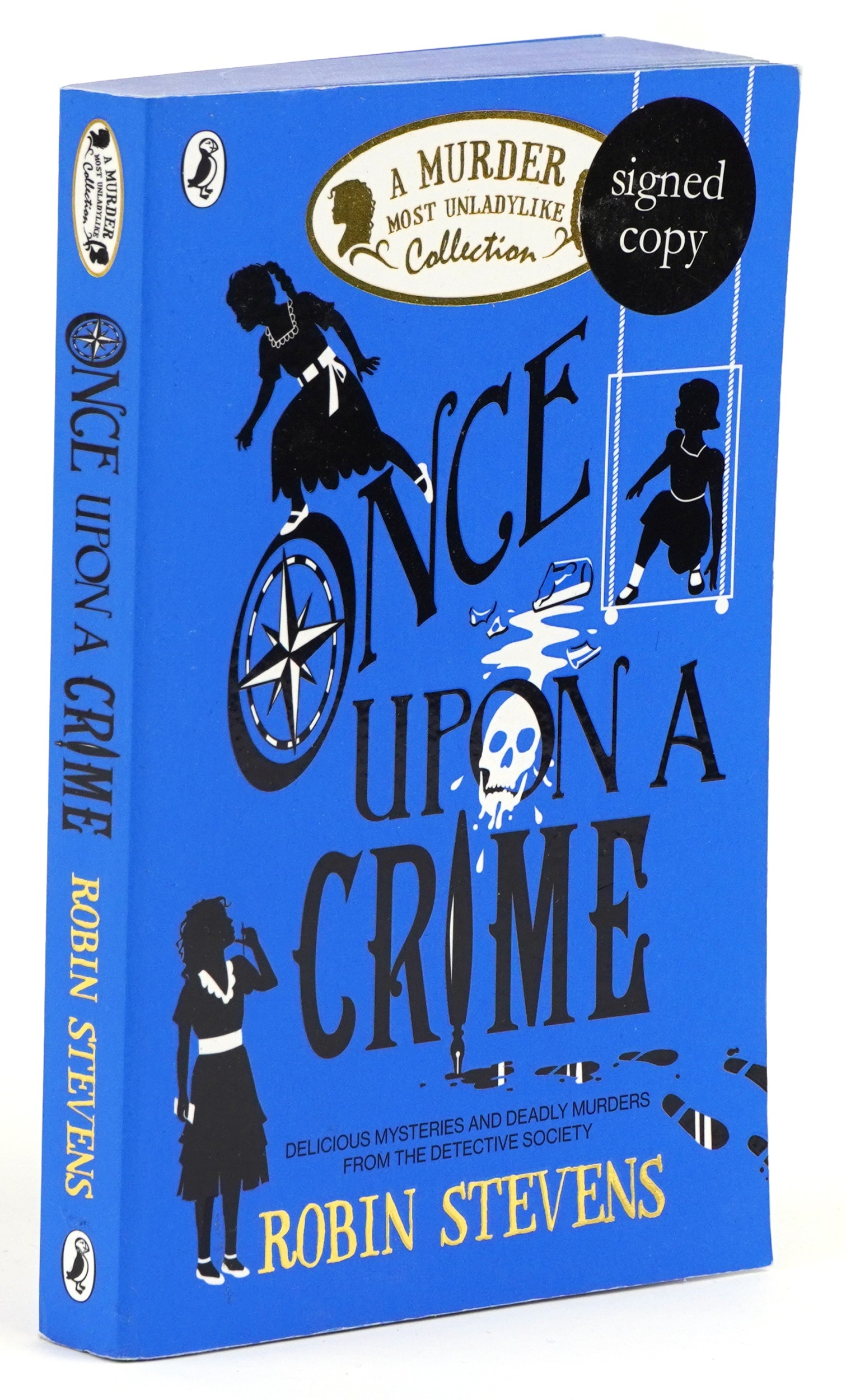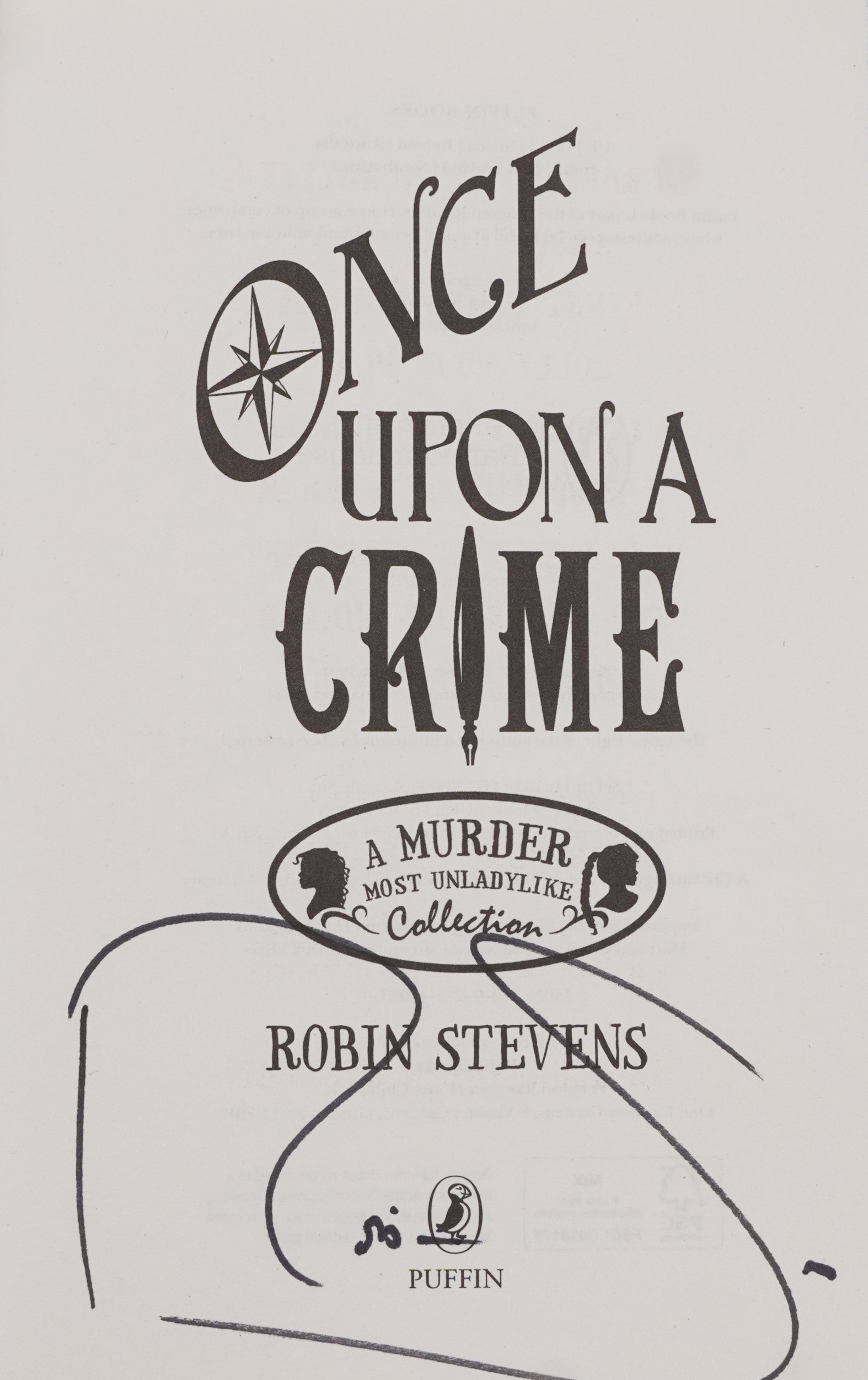 Once Upon a Crime by Robins Stevens, a signed paperback edition, published in 2021, 13cm wide.