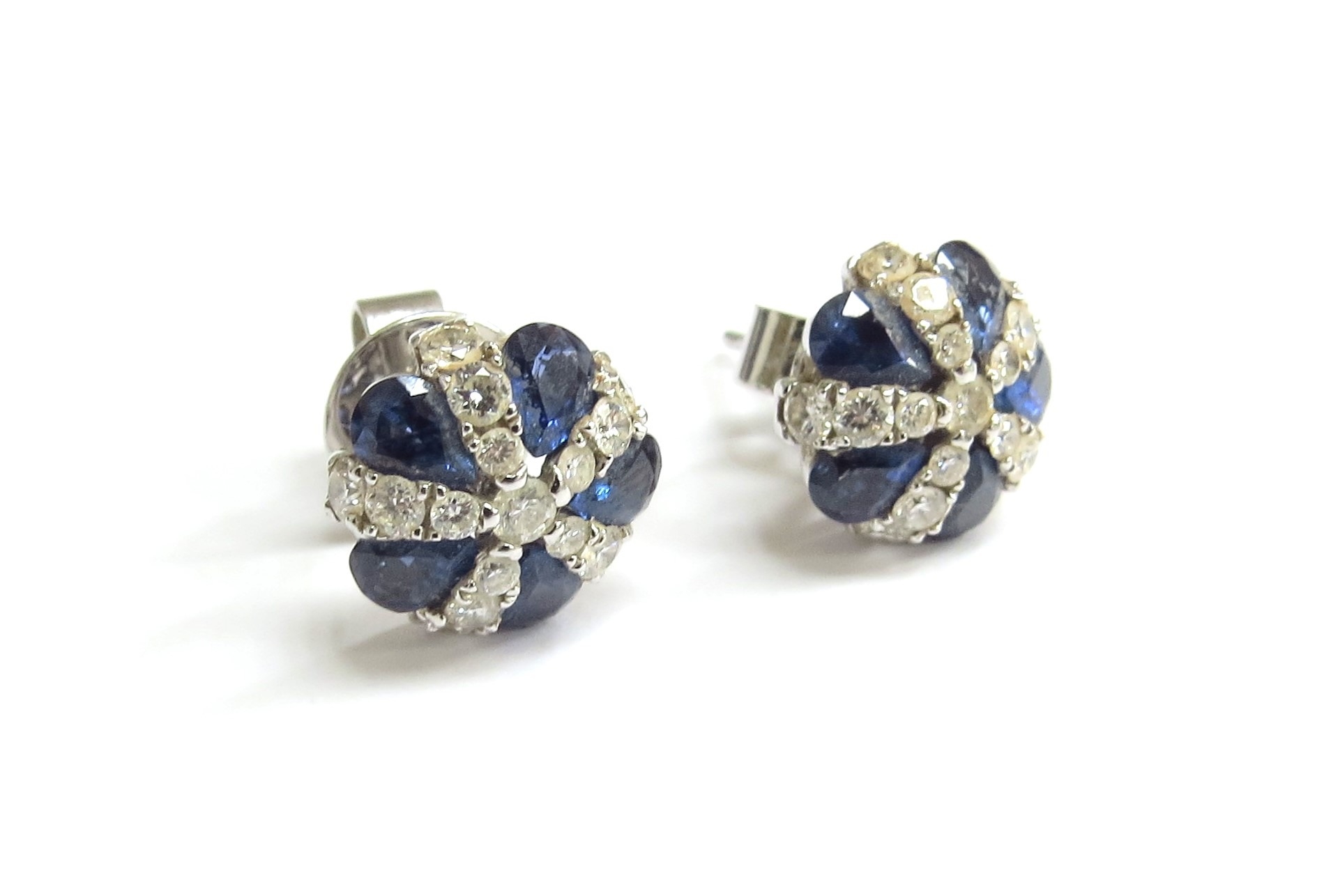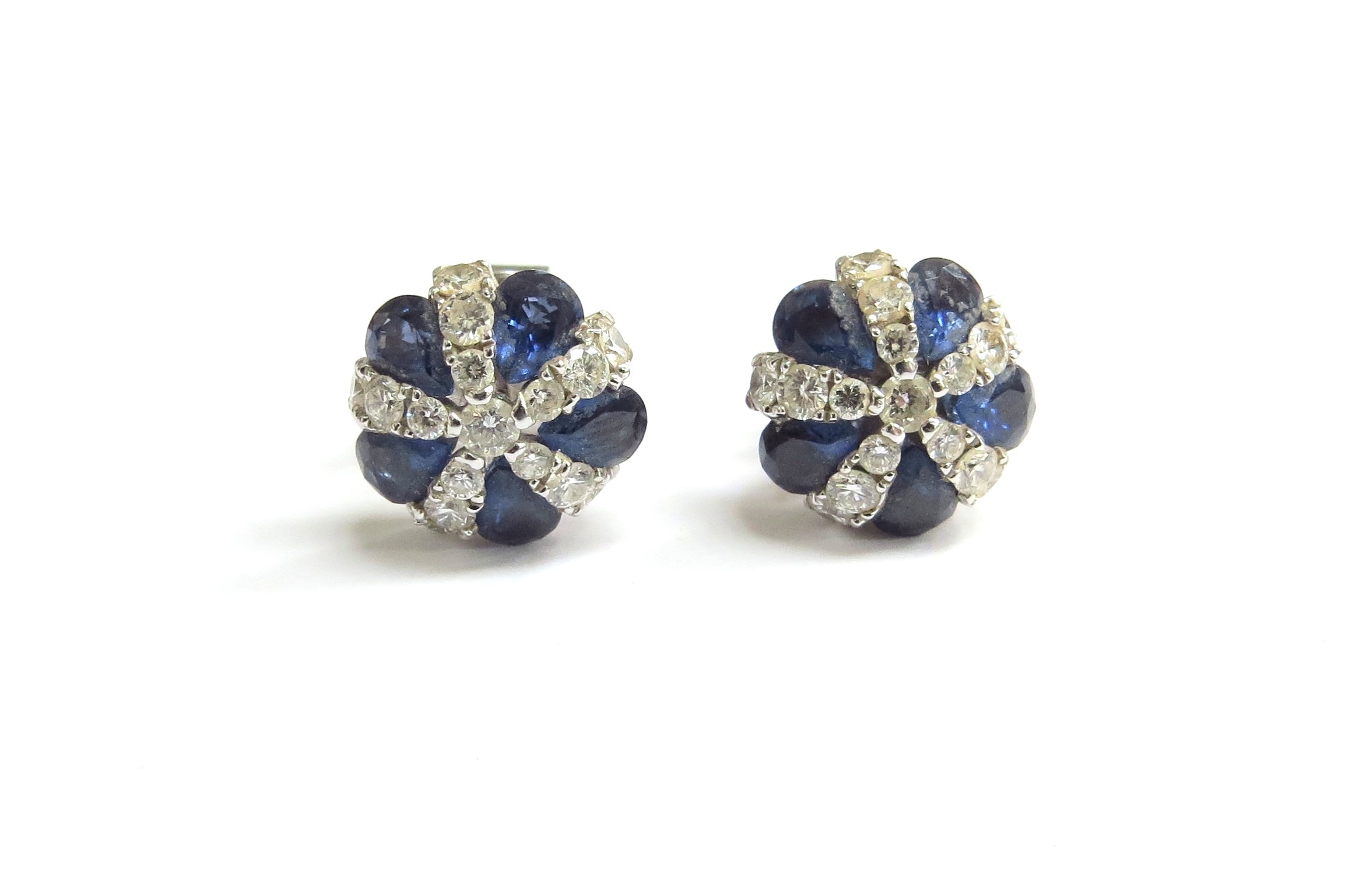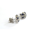 A pair of 18ct white gold sapphire and diamond cluster earrings, 5.3g