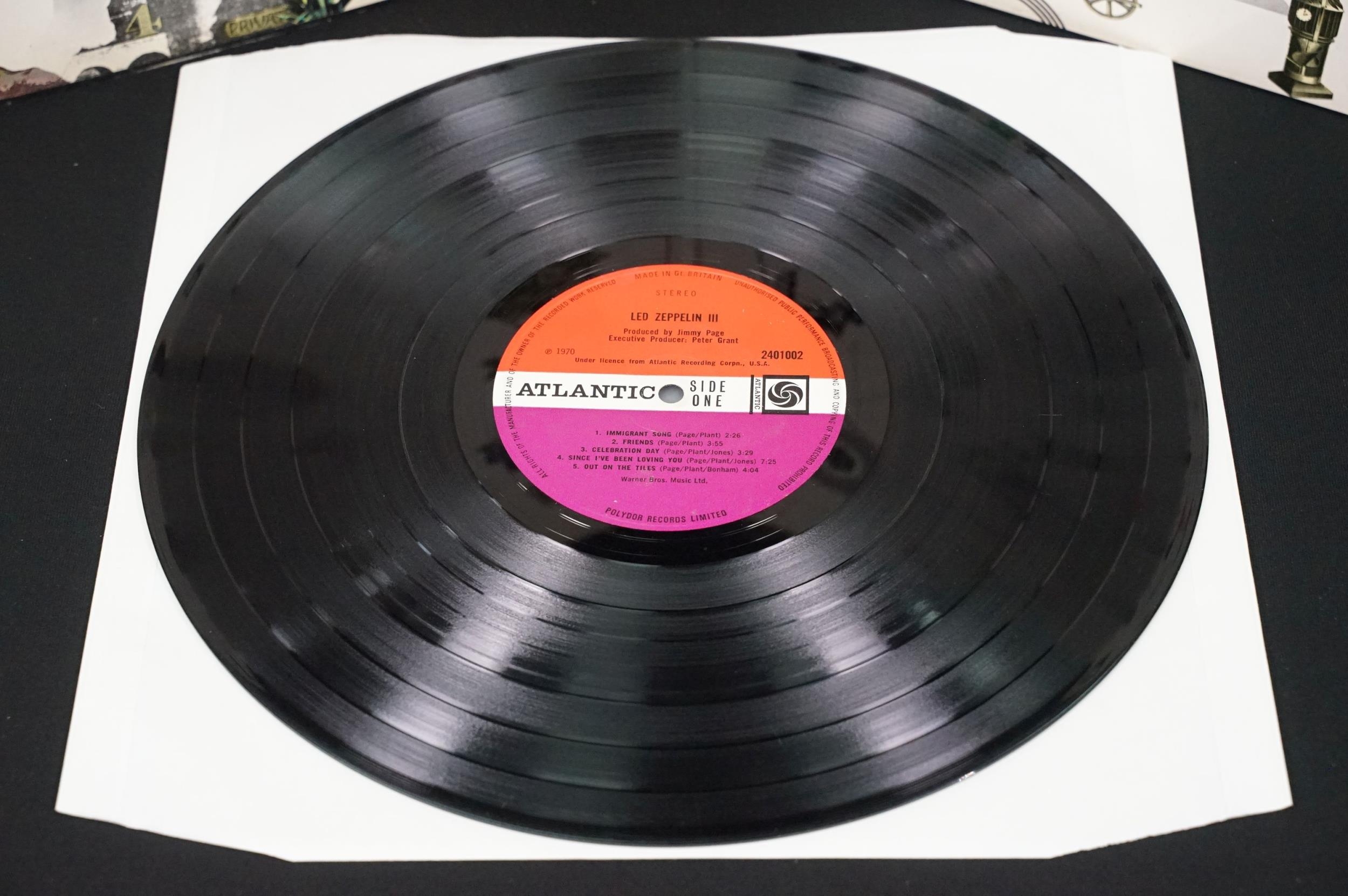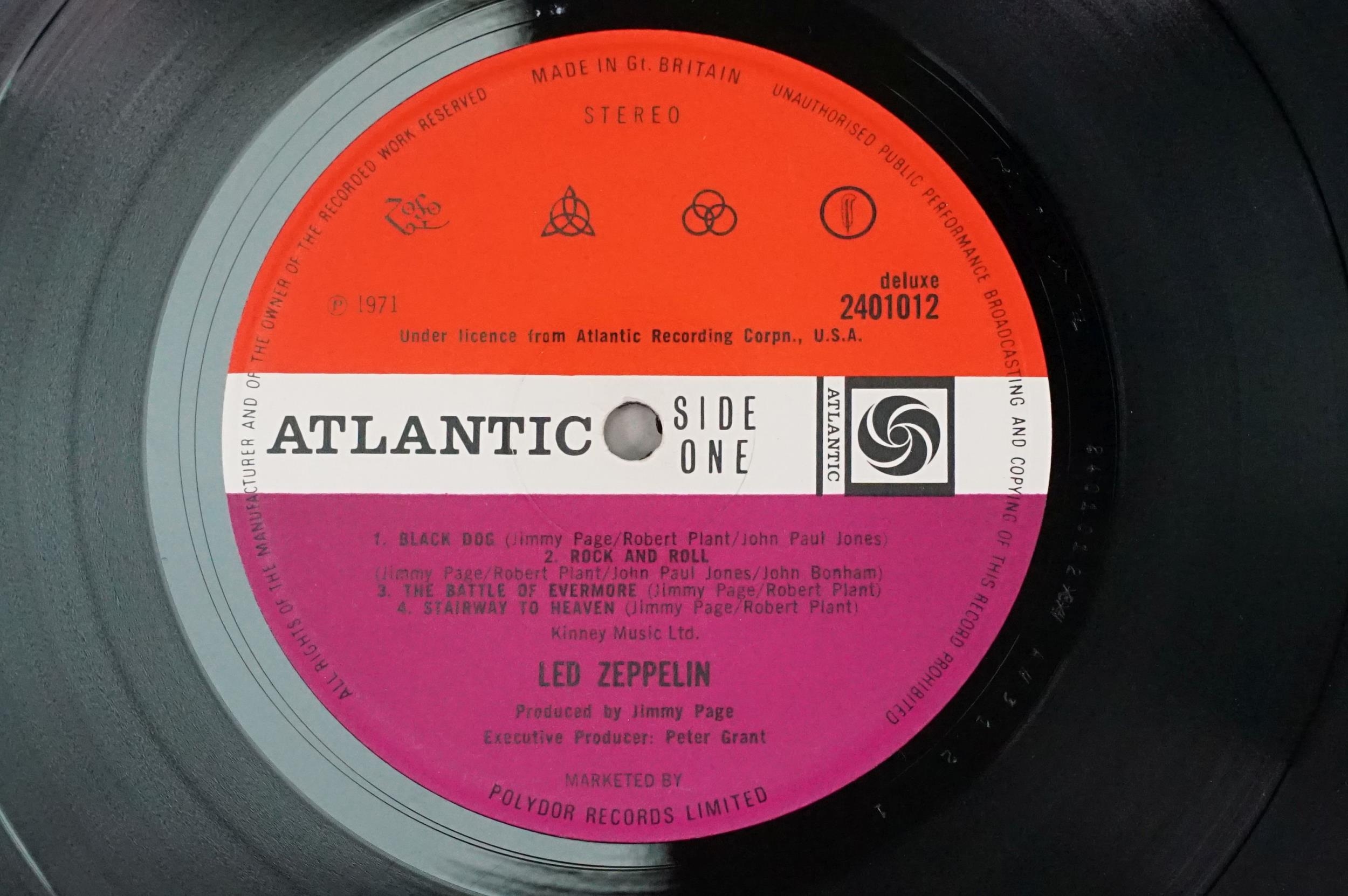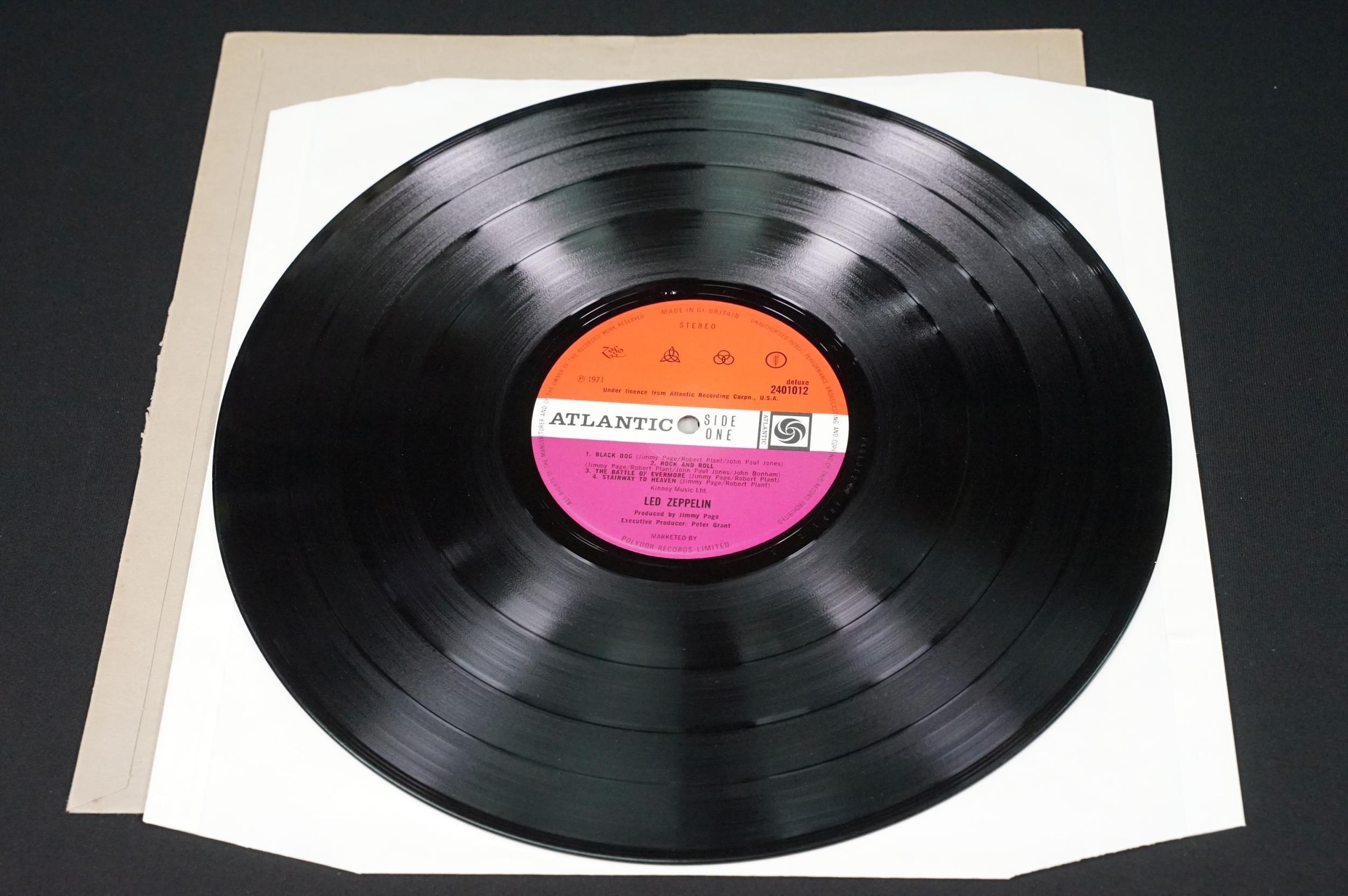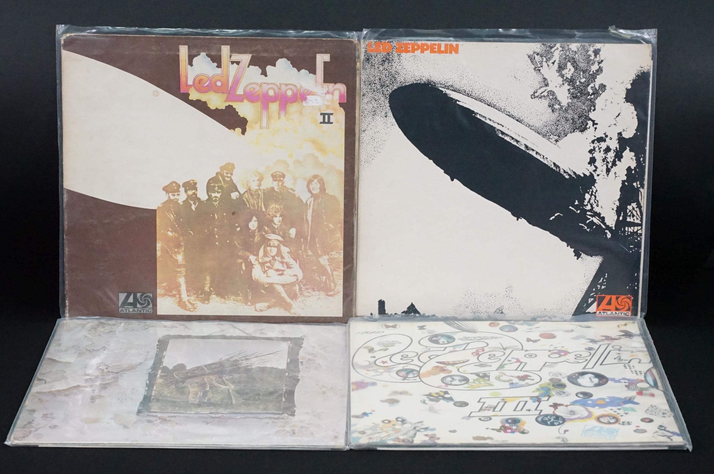 Vinyl - 4 original pressing Led Zeppelin LPs (plum labels) to include Self Titled (grey strip to bottom of sleeve), II (Lemon Song credit and Thankyou), III (working wheel, Peter Grant Credit), IV (Peter Grant credit) Vg overall