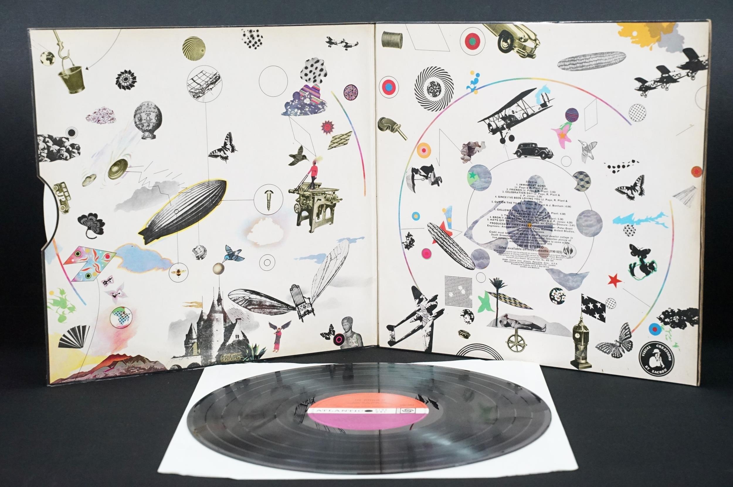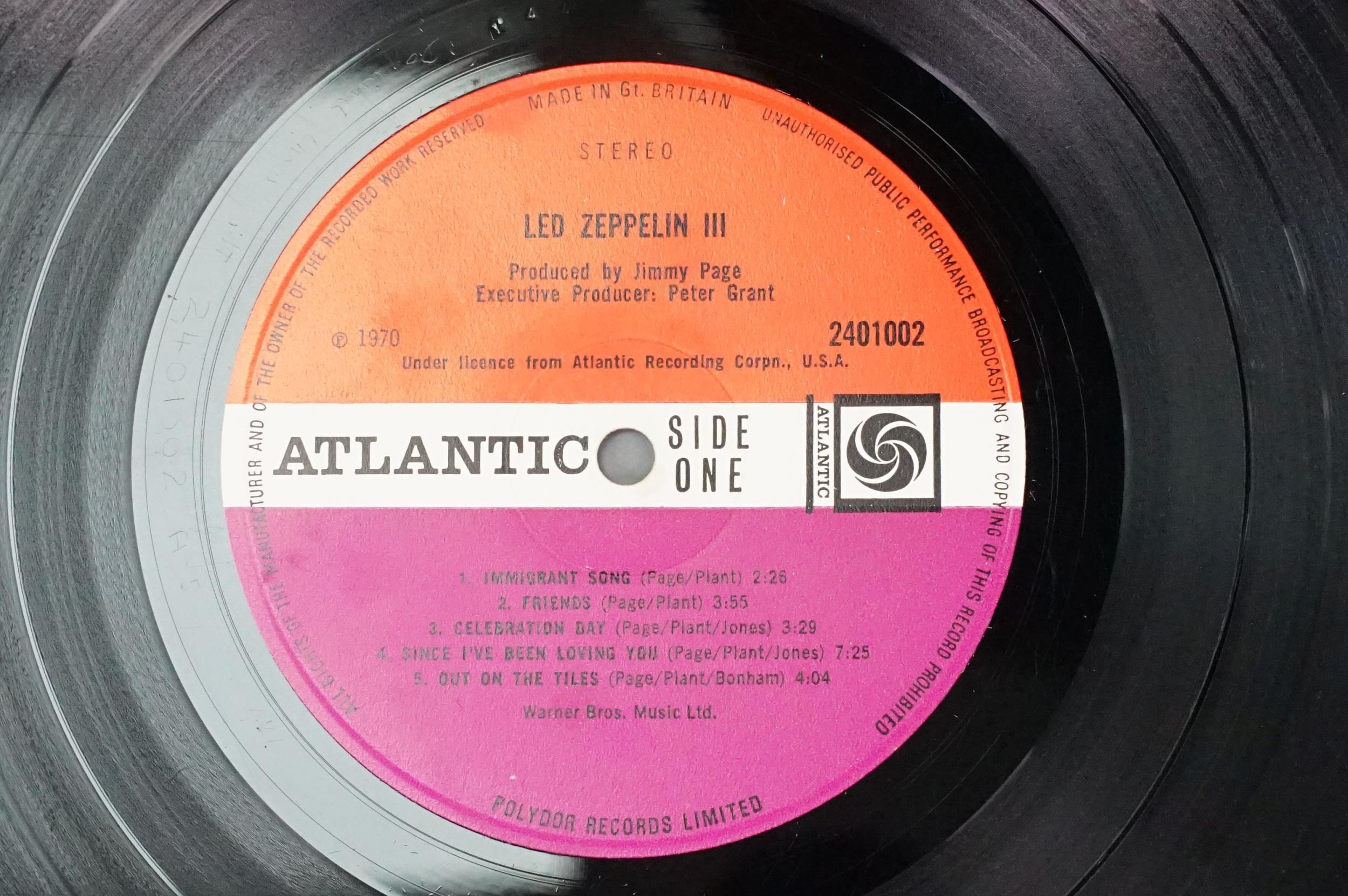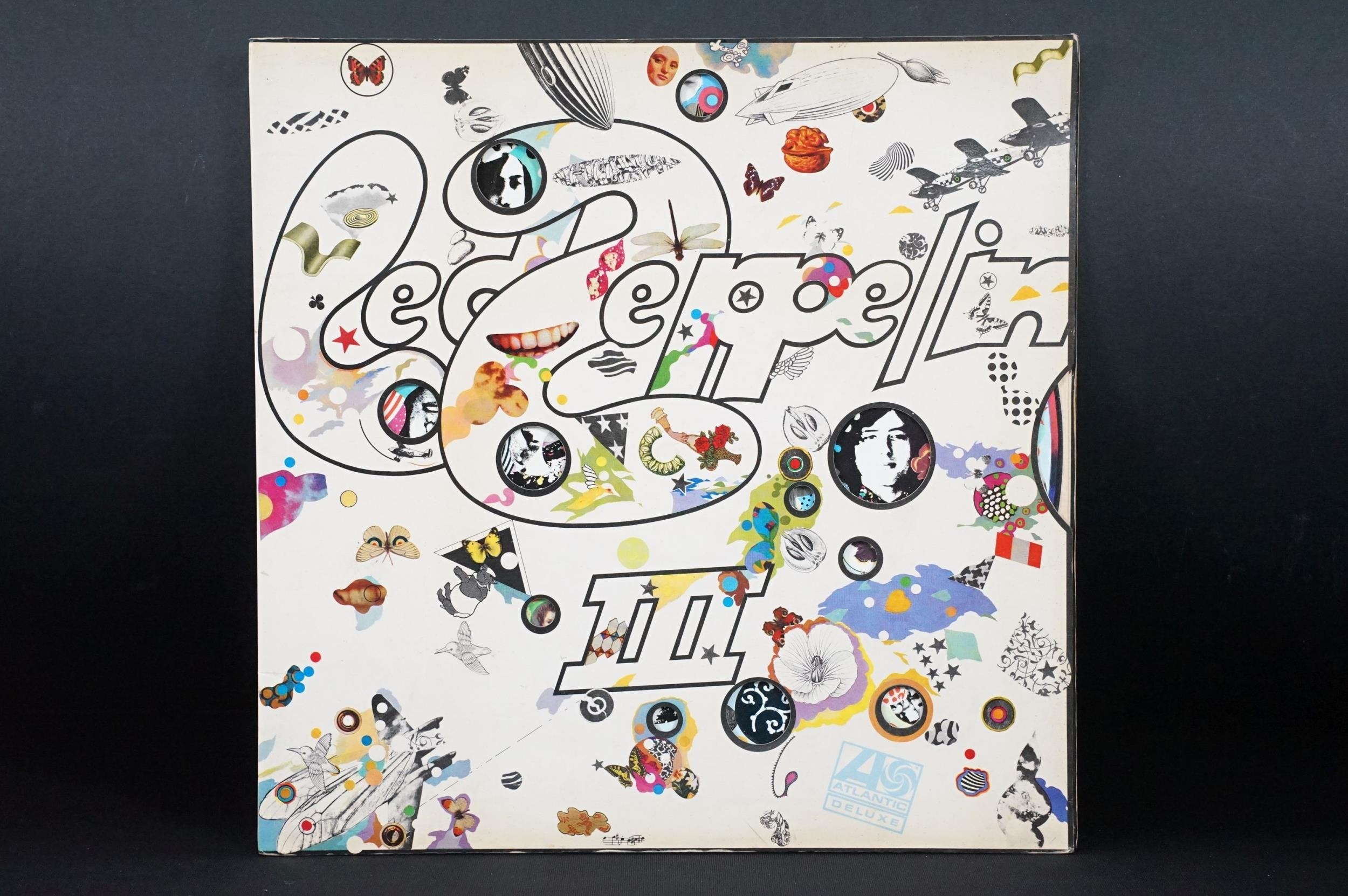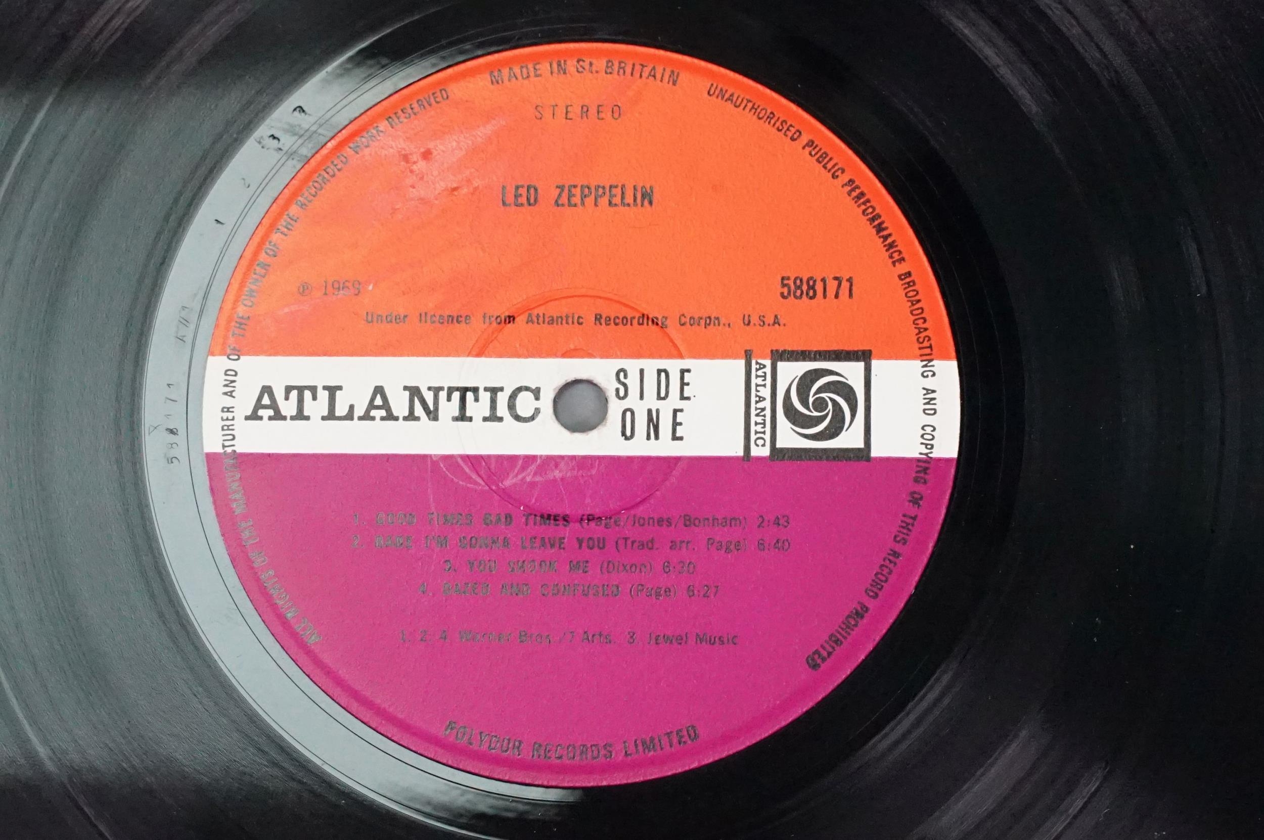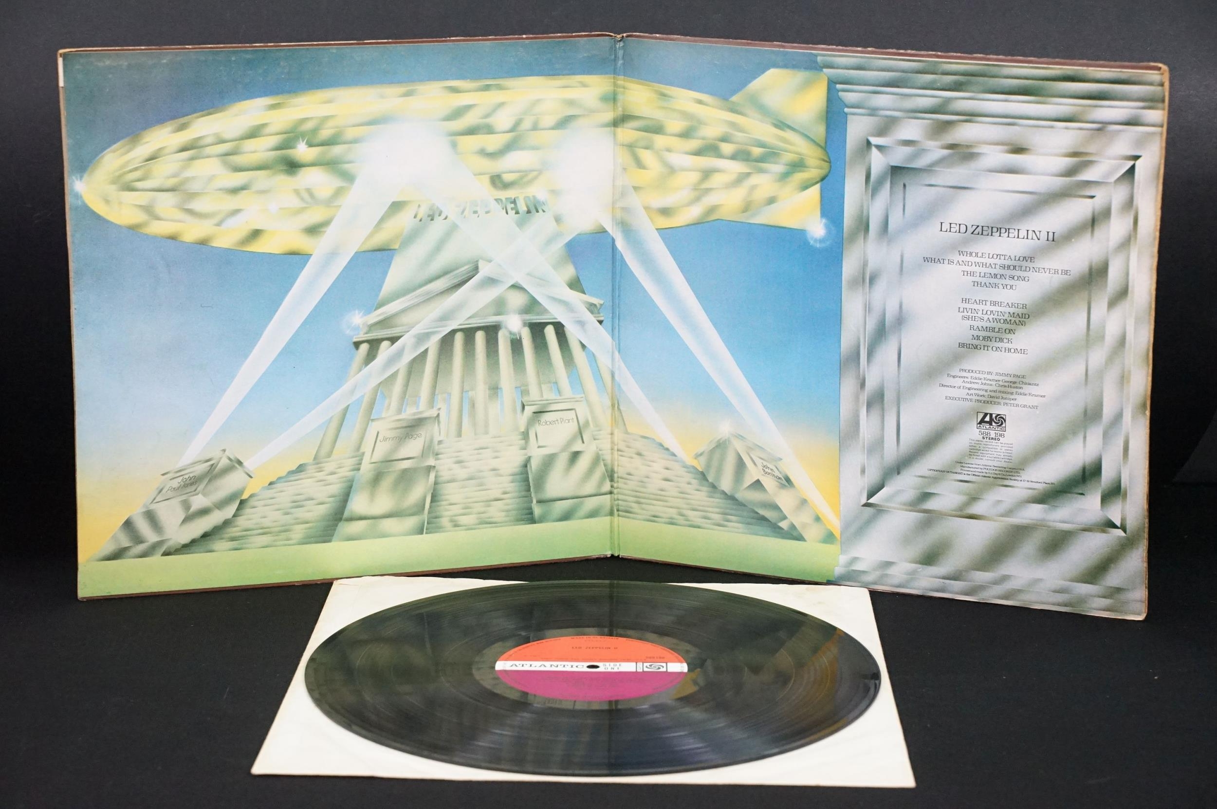 Vinyl - 4 original pressing Led Zeppelin LPs (plum labels) to include Self Titled (grey strip to bottom of sleeve), II (Lemon Song credit and Thankyou), III (working wheel, Peter Grant Credit), IV (Peter Grant credit) Vg overall