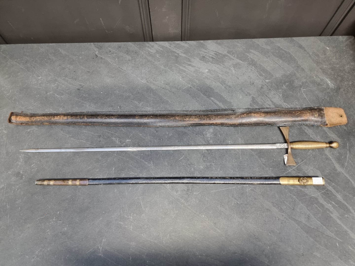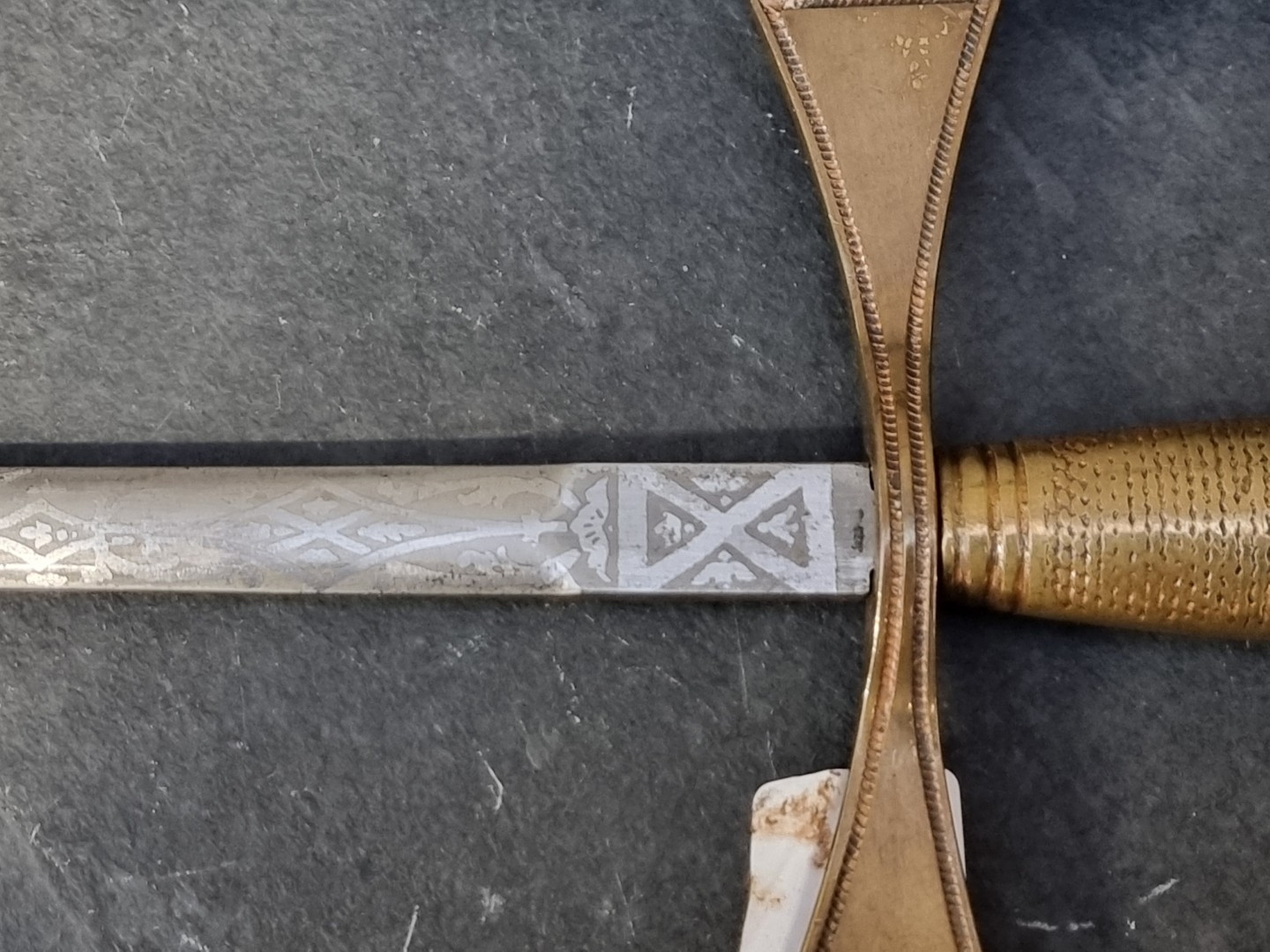 A Knights Templars style Preceptor sword and scabbard, by John Arnott & Co, Belfast, with 71.5cm partly etched blade.