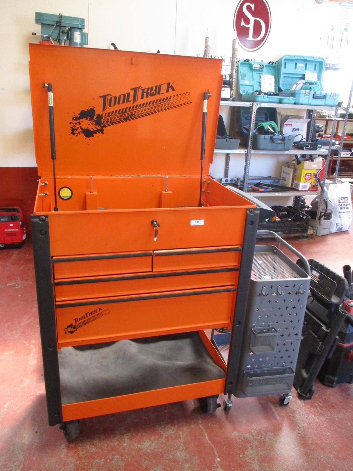 A mechanic's Tool Truck tool trolley together with a three tier wheeled tool stand