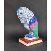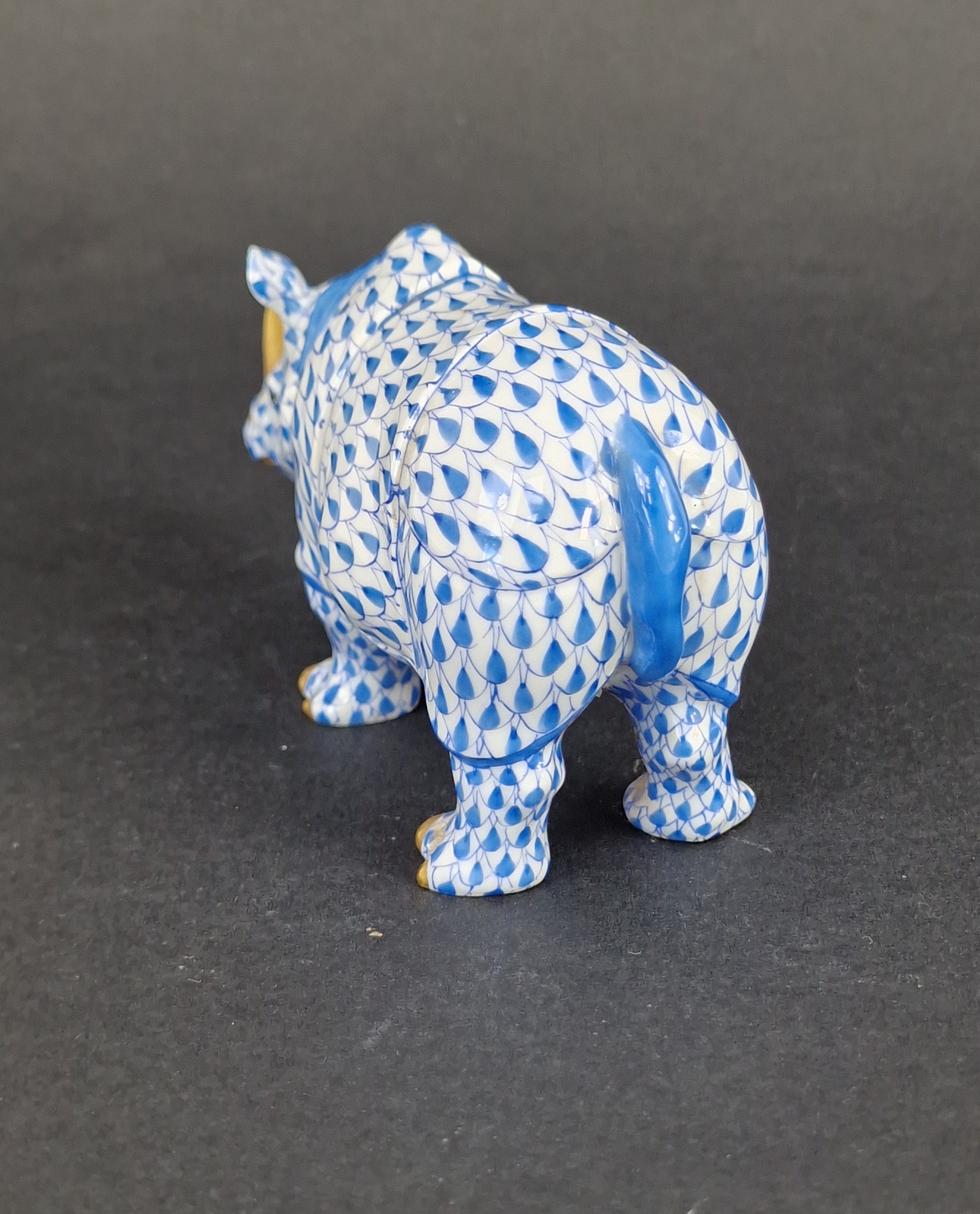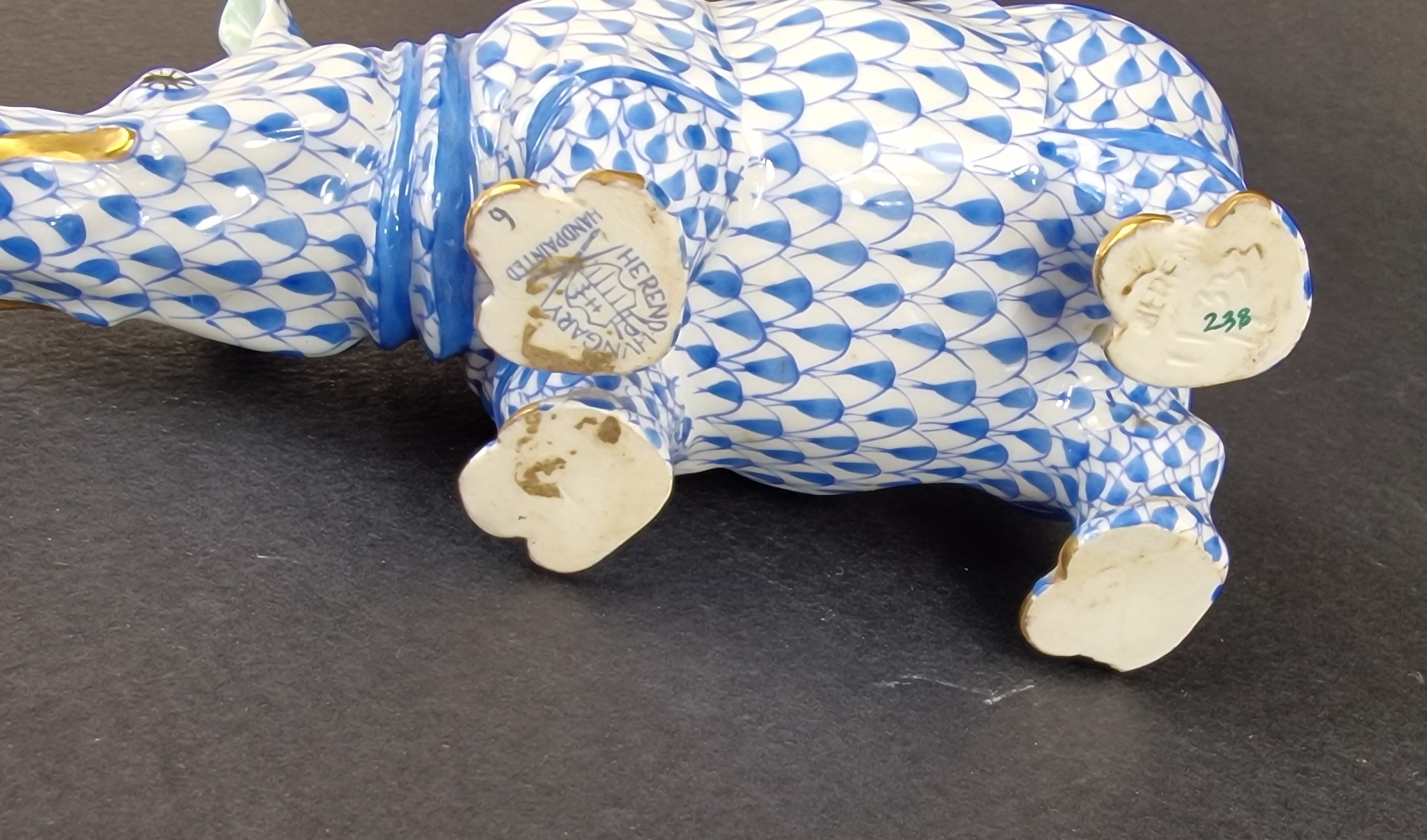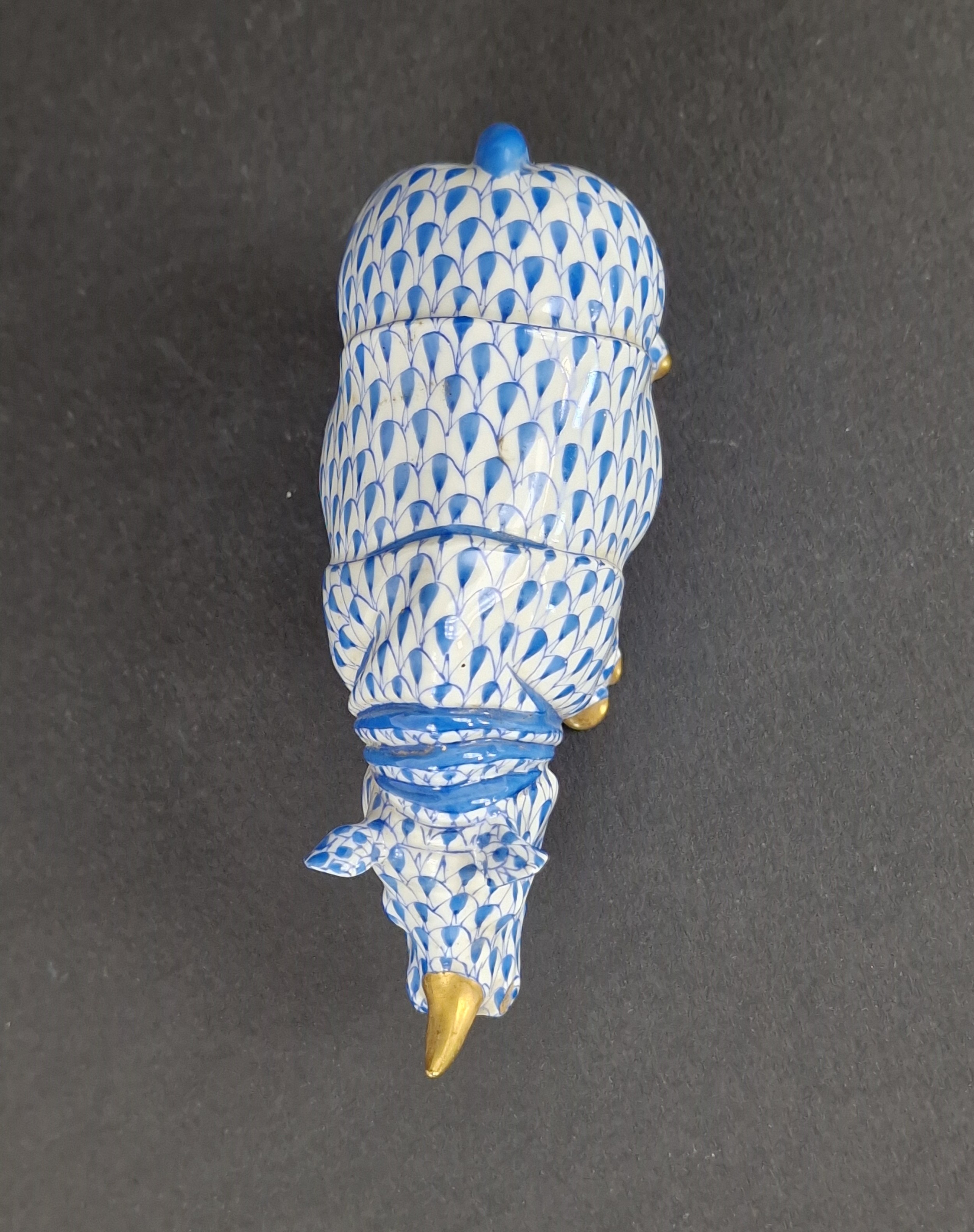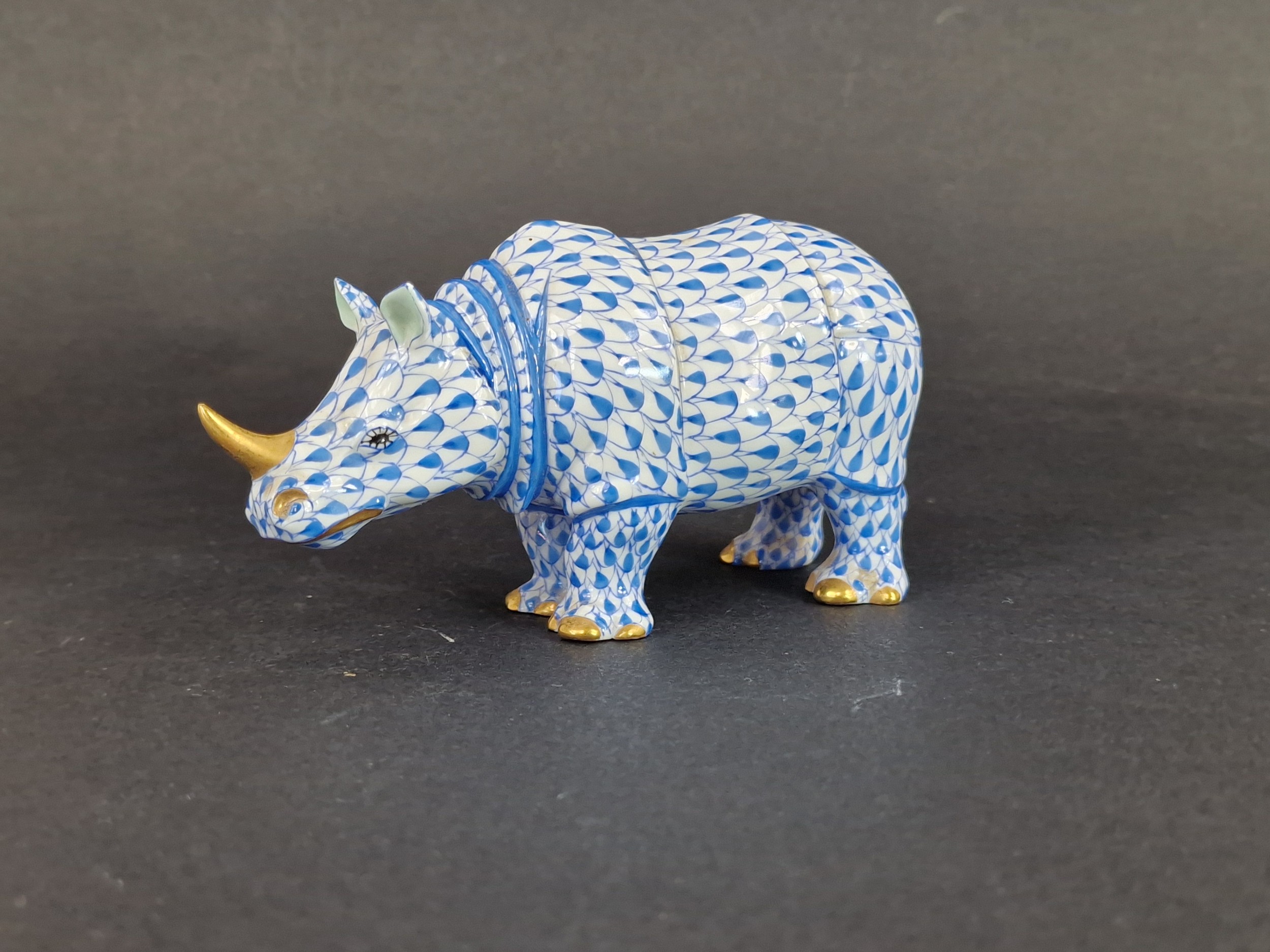 Herend Porcelain Rhino - Hand Painted in Blue Fishnet pattern with gilt embellishments 13cm long