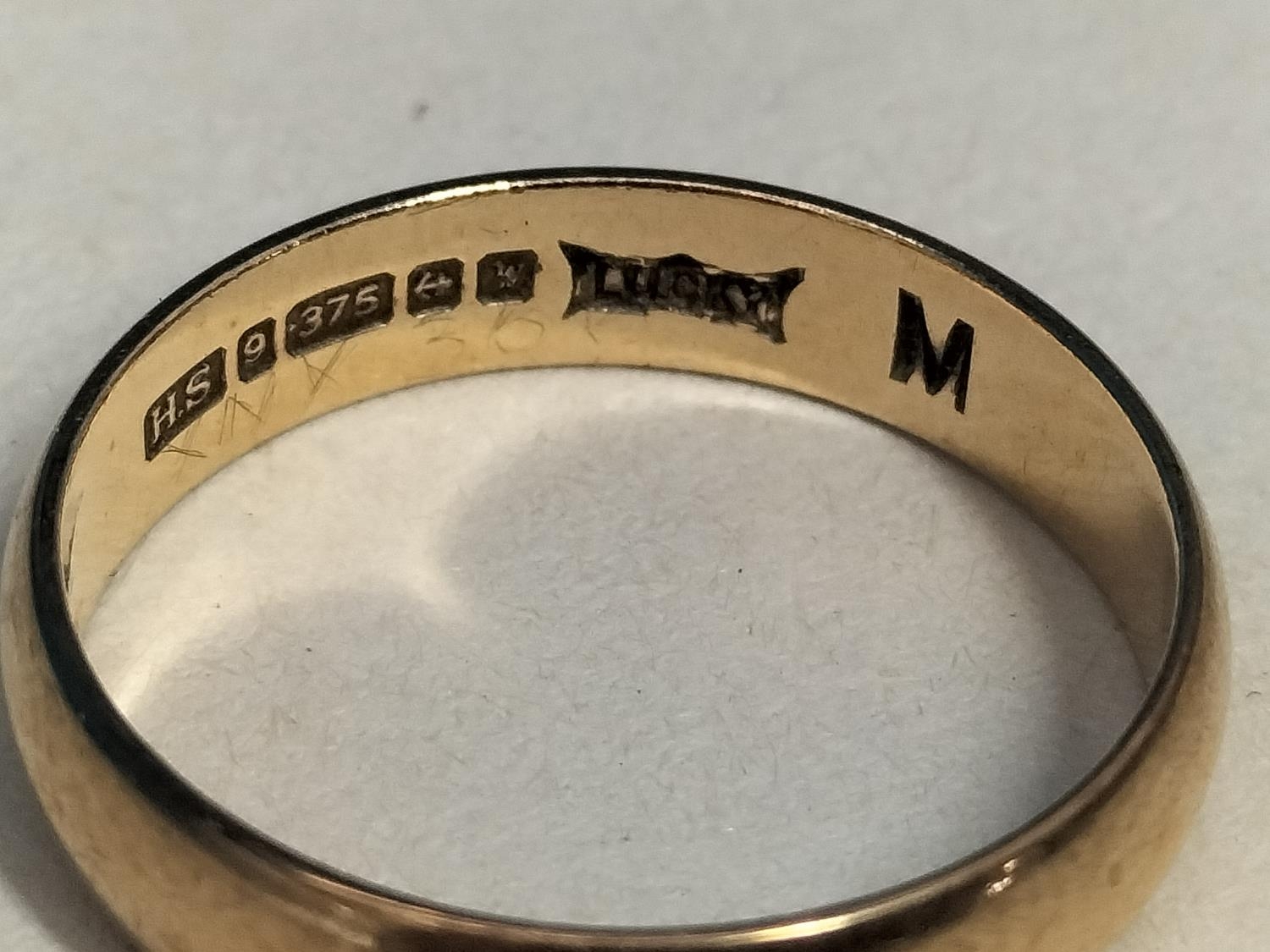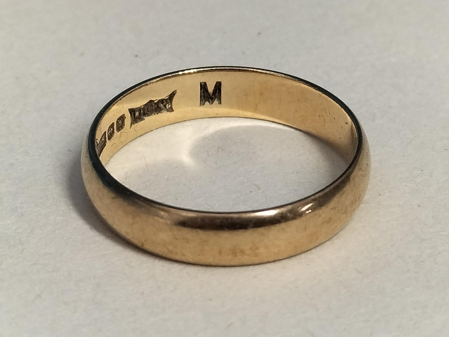 9ct Gold 375 Band Ring Size M. Weight 2.1 Grams.